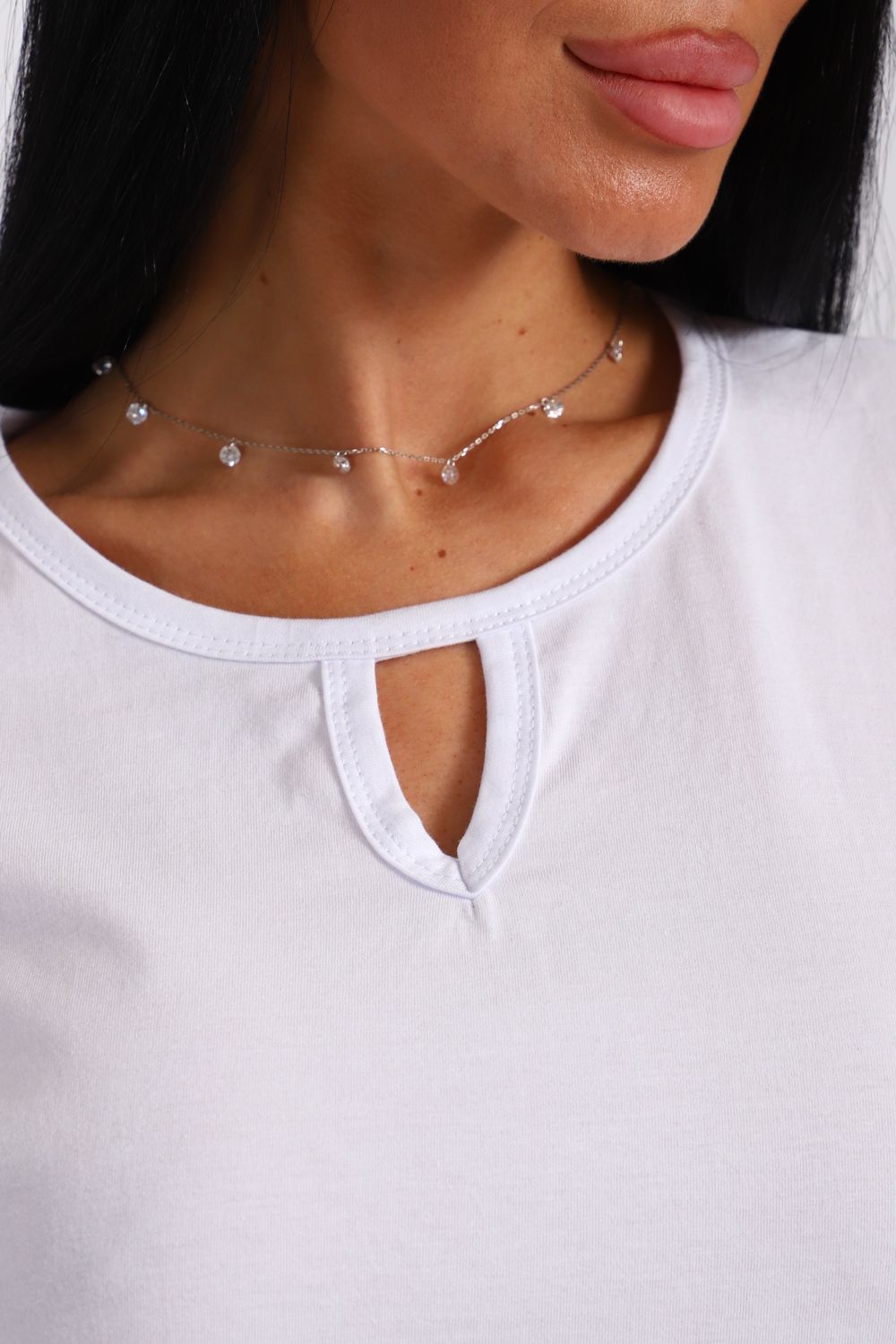 Легкая и удобная женская хлопковая футболка. Округлая горловина, небольшой декоративный вырез.