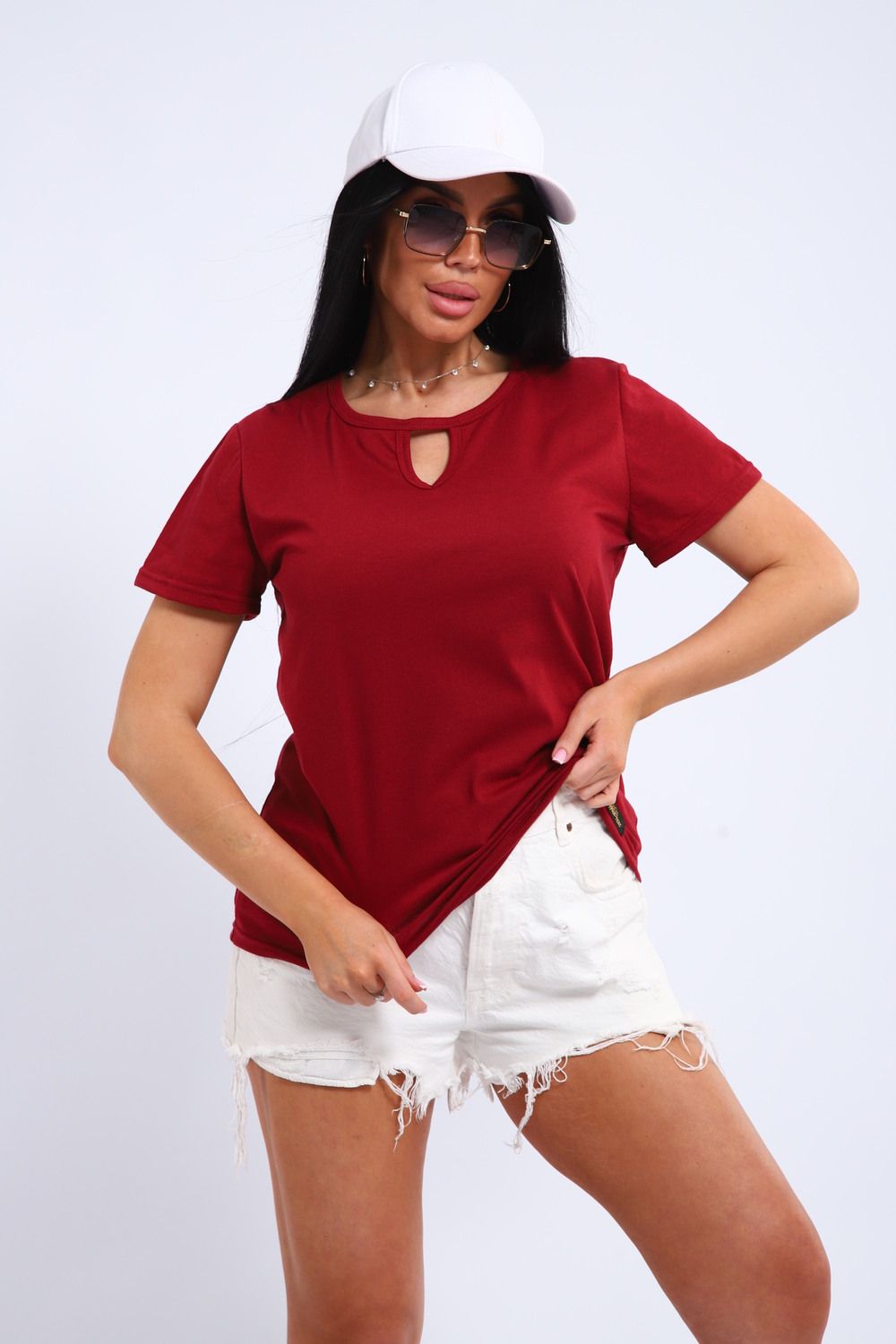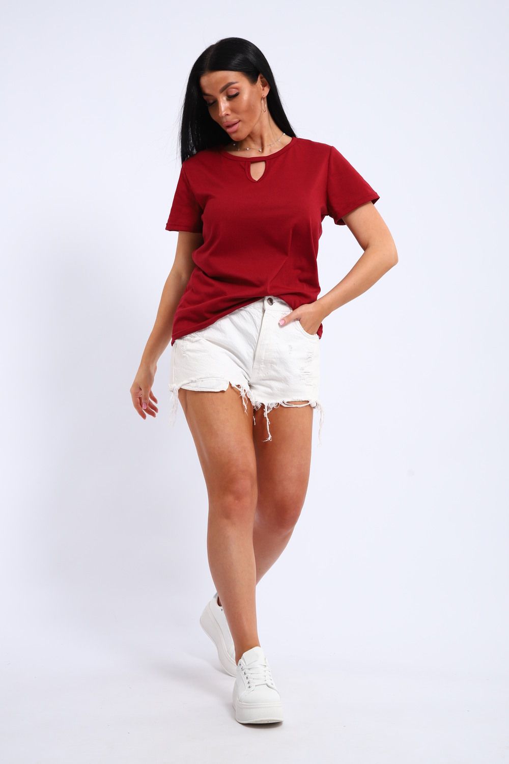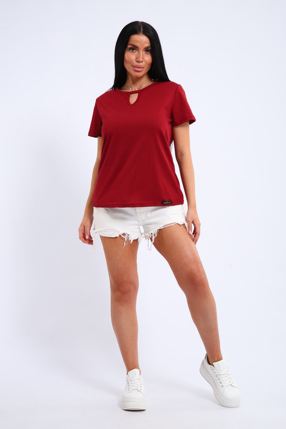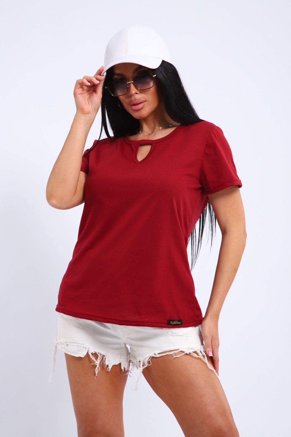 Легкая и удобная женская хлопковая футболка. Округлая горловина, небольшой декоративный вырез.