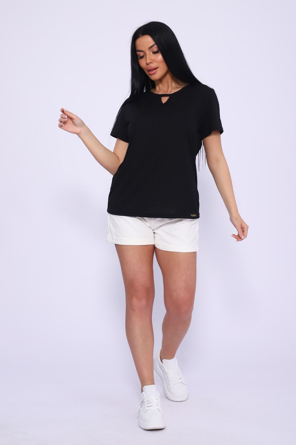 Легкая и удобная женская хлопковая футболка. Округлая горловина, небольшой декоративный вырез.