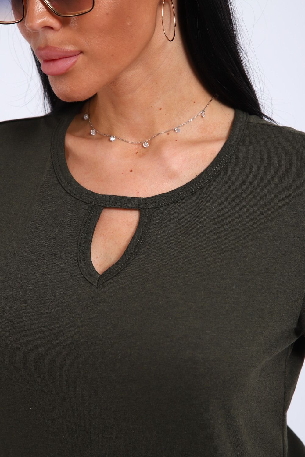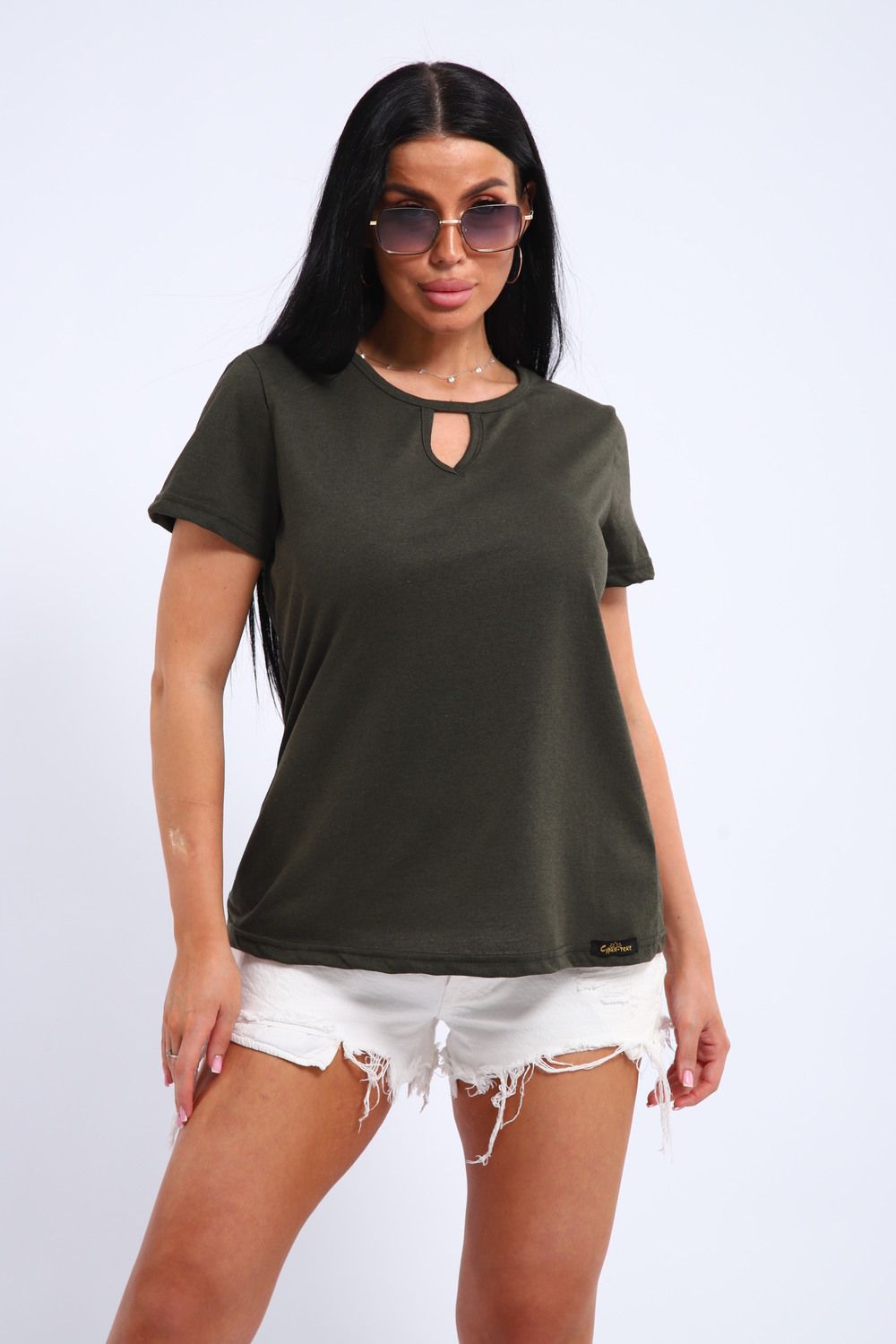 Легкая и удобная женская хлопковая футболка. Округлая горловина, небольшой декоративный вырез.