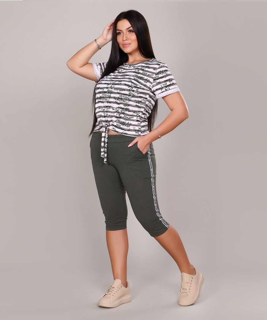 Кулирная гладь из хлопка обеспечивает комфорт и воздухопроницаемость, что особенно важно во время физической активности или прогуливаясь в жаркую погоду. Укороченная футболка с декоративным узлом добавляет стиль и оригинальность, а бриджи с карманами и эластичным поясом обеспечивают свободу движений и практичность. Такой комплект станет отличным выбором для активного образа жизни!