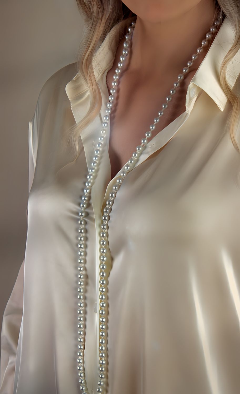 Наши бусы в стиле сотуар длиной 120 см — это идеальный выбор для тех, кто ценит элегантность и шик. Изготовленные из искусственного жемчуга, бусы имеют перламутровый блеск, который не уступает натуральному. Эти бусы стали главным трендом сезона в бижутерии и идеально подойдут как для вечернего образа, так и для повседневного стиля. Пусеты в комплекте гармонично дополнят ваш образ, придавая ему завершённость и шик. Они лёгкие и удобные в носке, что делает их идеальным решением на каждый день.