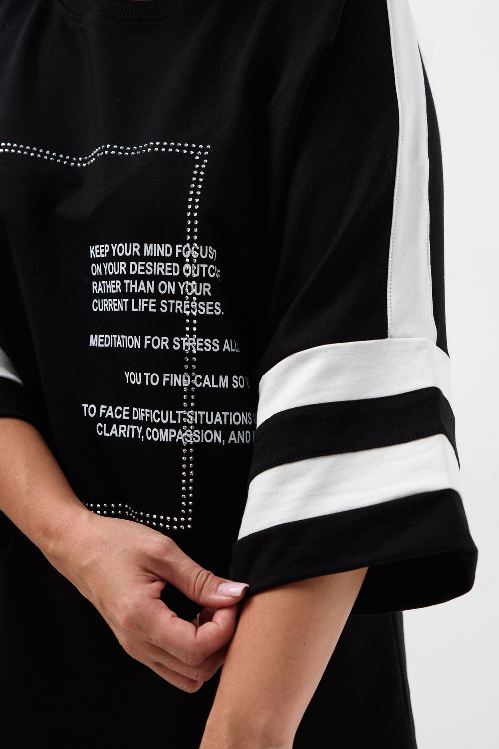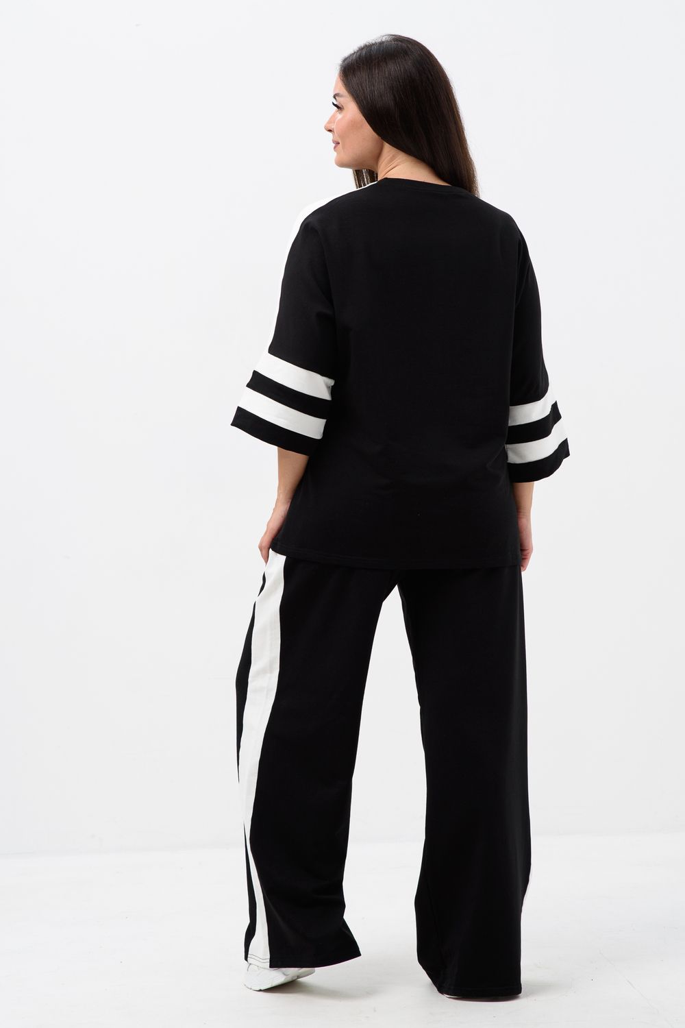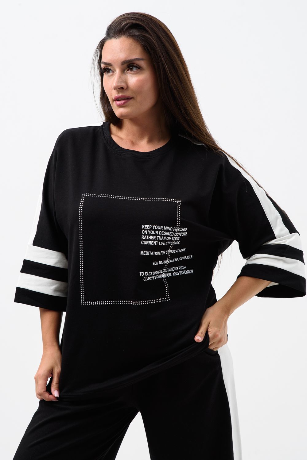 Стильный и модный костюм из футера двунитки - идеальный выбор для вашего гардероба. Этот костюм состоит из кофты с принтом и стразами, прямых брюк. Легкий и свободный крой делает его идеальным для повседневного использования. Вы будете выглядеть стильно и молодежно, независимо от вашего возраста. Футер - это тонкий трикотажный материал, который отлично подходит для демисезонного периода. Он приятен к телу, не сковывает движения и обеспечивает комфорт в течение всего дня. Этот комплект подойдет как для отдыха на природе, так и для дома.
