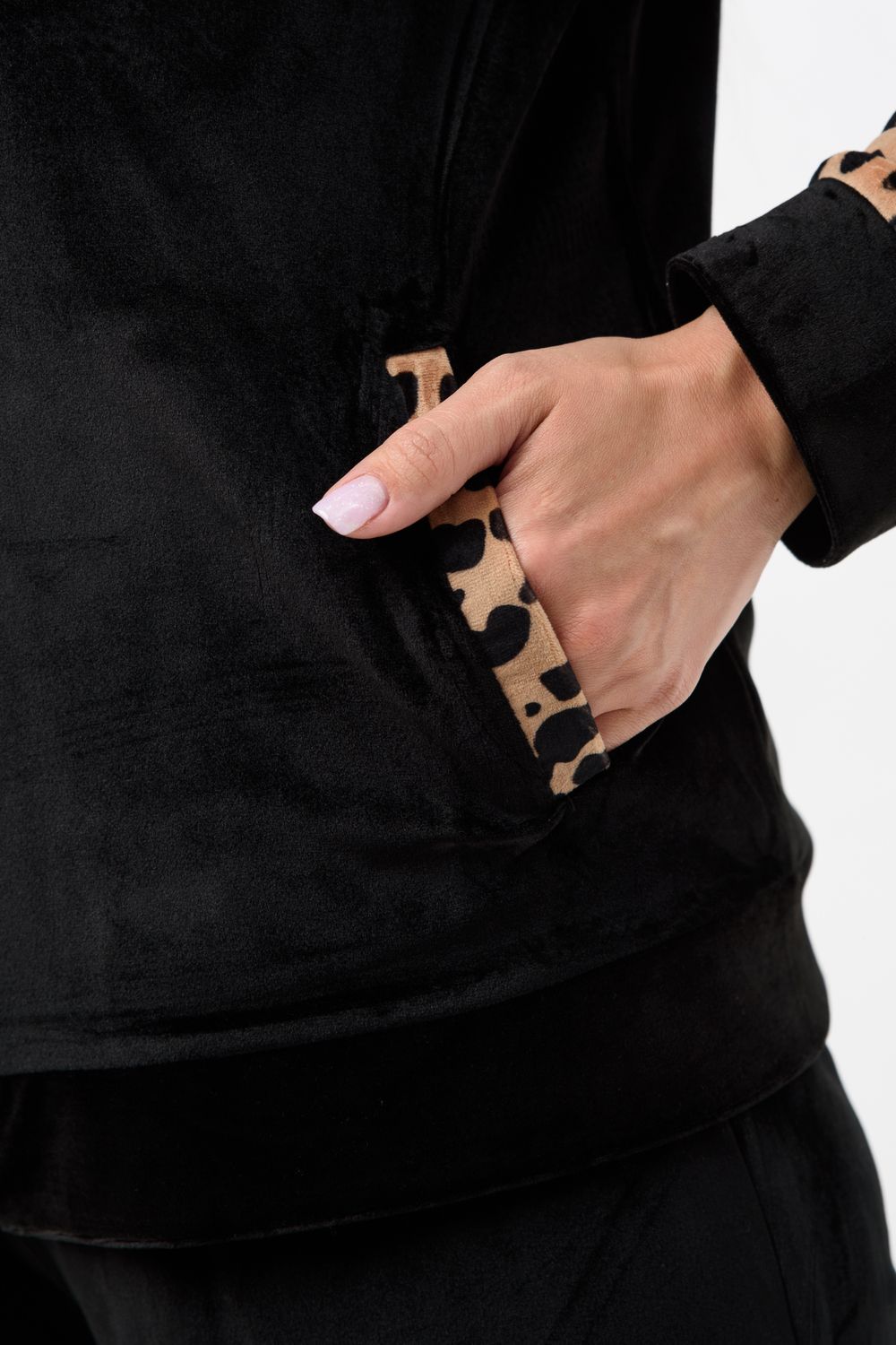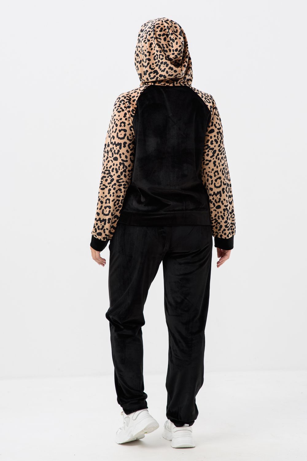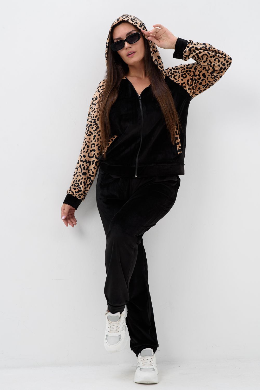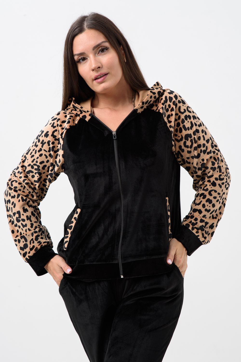 Женский костюм выполнен из мягкой и приятной ткани, кофта на молнии с длинным рукавом на манжете и капюшоном, чтобы укрыться от прохладной погоды, также имеются карманы, брюки на манжете, пояс на резинке, с карманами. Двойка хорошо подойдет как домашний костюм, в нем уютно и комфортно, также подойдет и для прогулки, в нем не холодно и не сковывает движения, можно дополнить жилеткой и головным убором, прекрасный выбор для вашего гардероба.