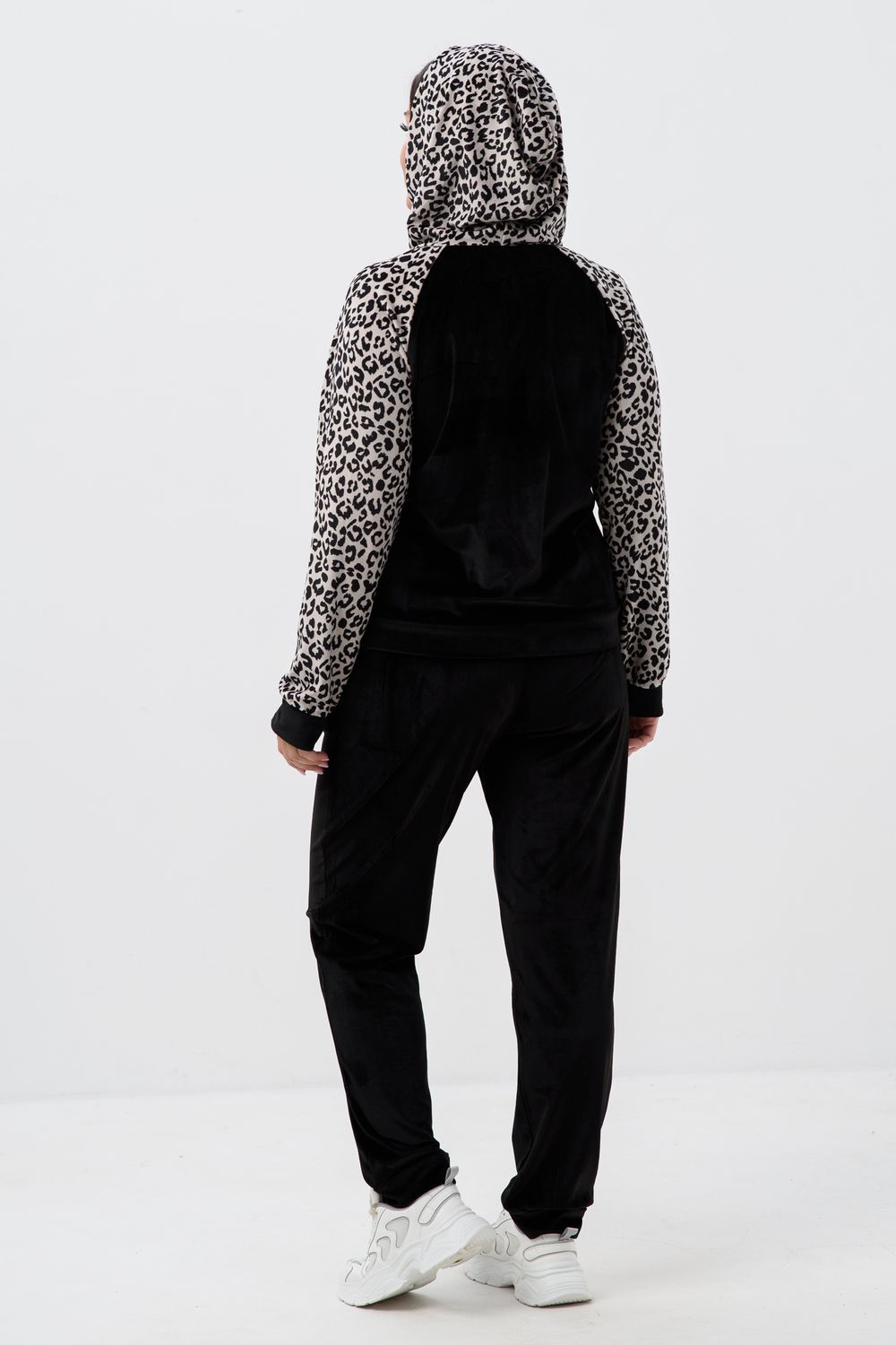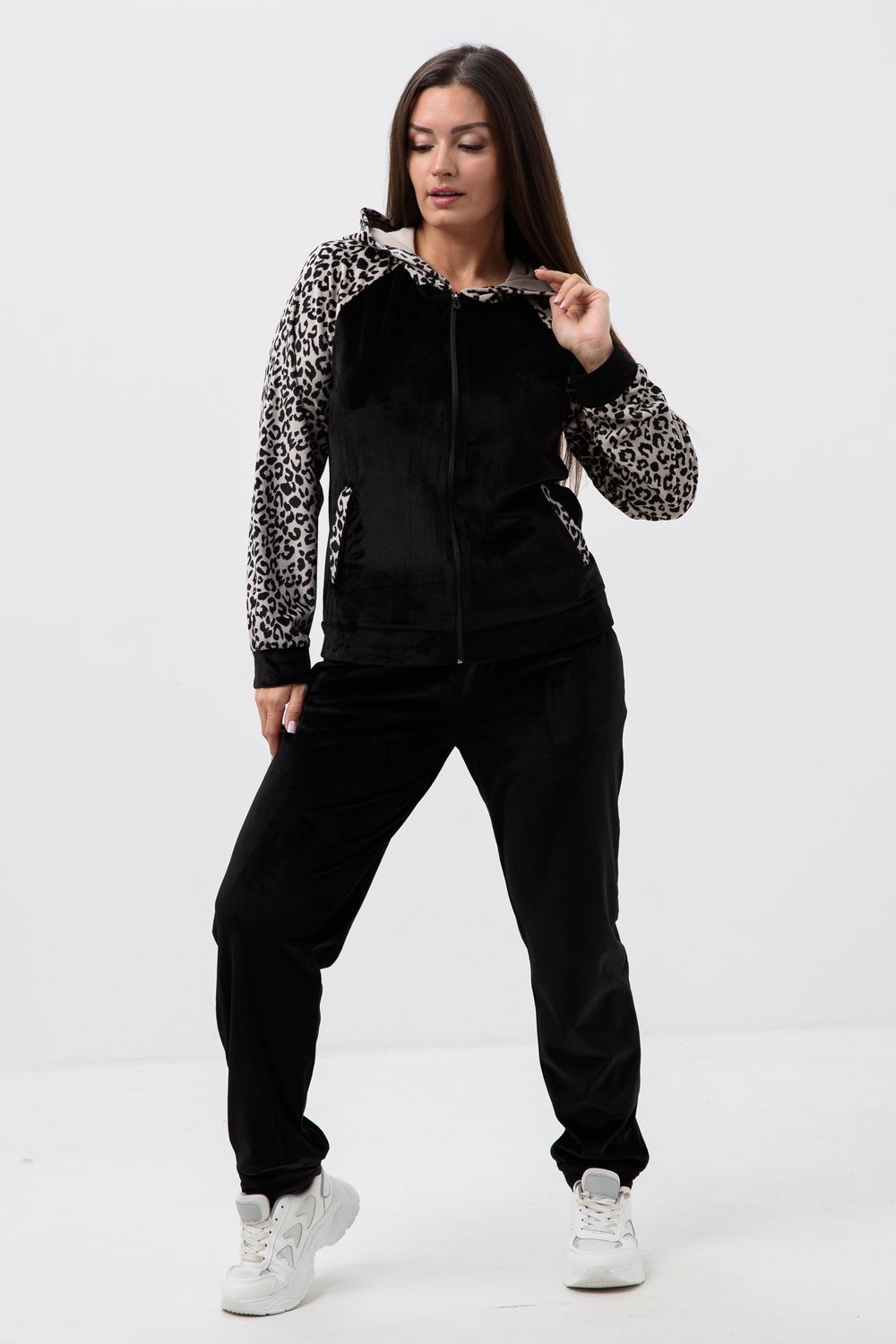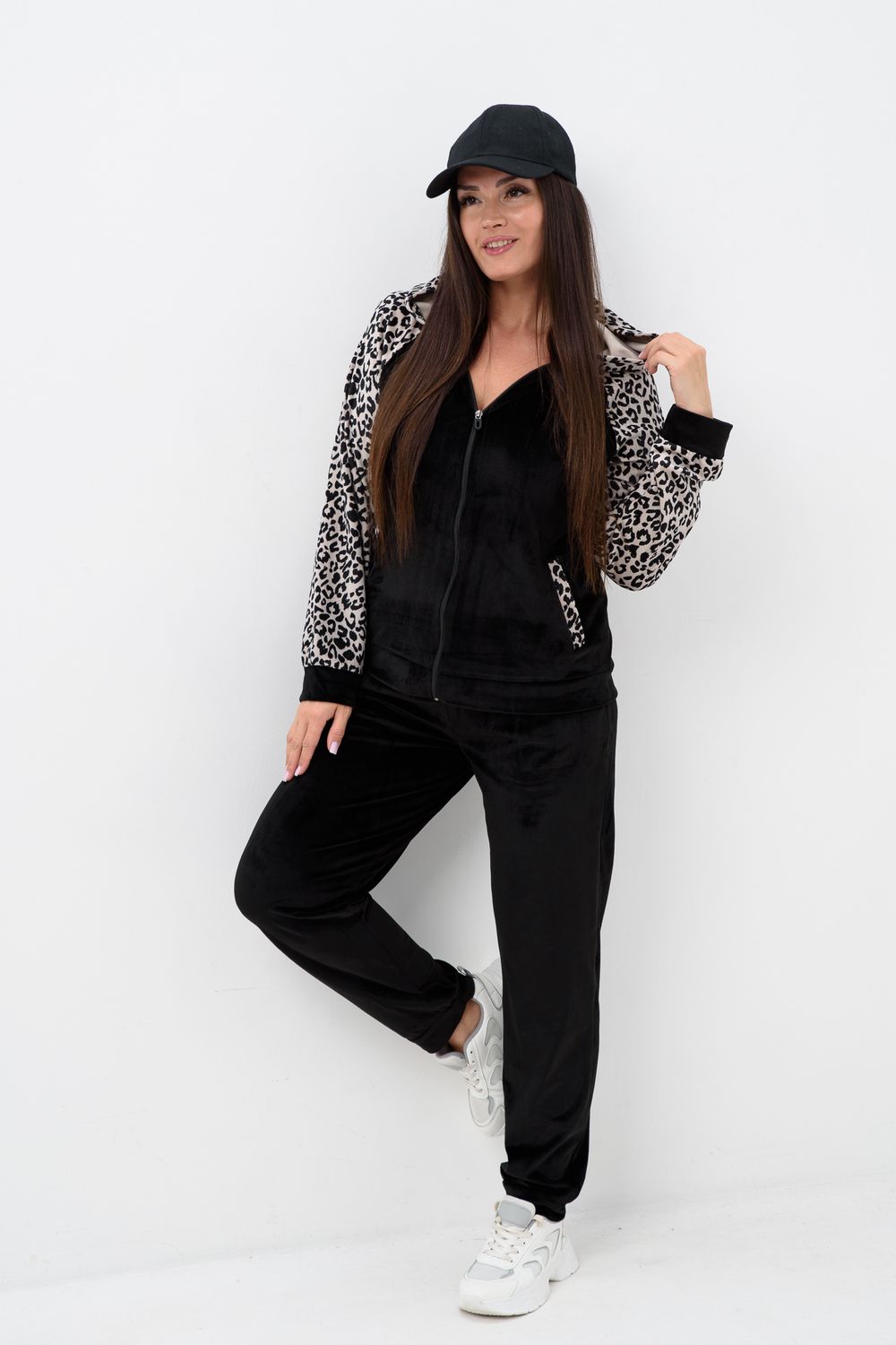 Женский костюм выполнен из мягкой и приятной ткани, кофта на молнии с длинным рукавом на манжете и капюшоном, чтобы укрыться от прохладной погоды, также имеются карманы, брюки на манжете, пояс на резинке, с карманами. Двойка хорошо подойдет как домашний костюм, в нем уютно и комфортно, также подойдет и для прогулки, в нем не холодно и не сковывает движения, можно дополнить жилеткой и головным убором, прекрасный выбор для вашего гардероба.