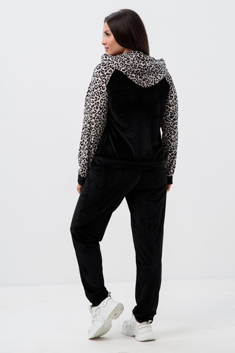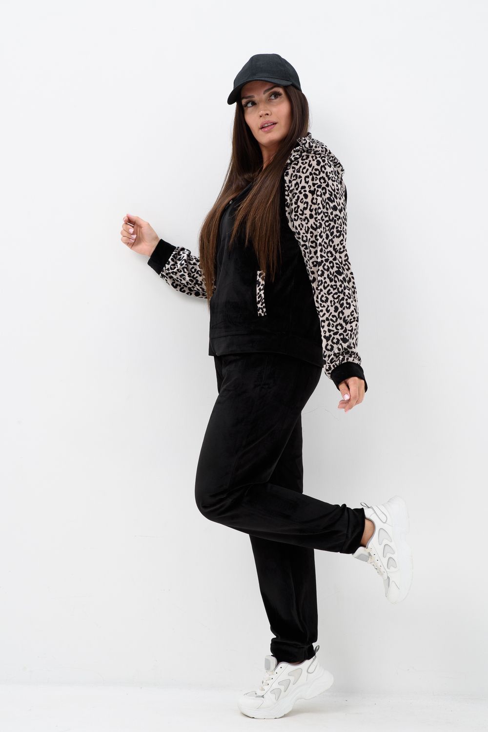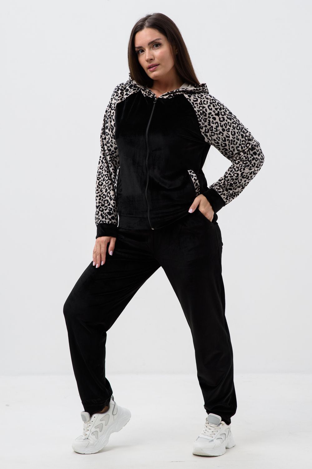 Женский костюм выполнен из мягкой и приятной ткани, кофта на молнии с длинным рукавом на манжете и капюшоном, чтобы укрыться от прохладной погоды, также имеются карманы, брюки на манжете, пояс на резинке, с карманами. Двойка хорошо подойдет как домашний костюм, в нем уютно и комфортно, также подойдет и для прогулки, в нем не холодно и не сковывает движения, можно дополнить жилеткой и головным убором, прекрасный выбор для вашего гардероба.
