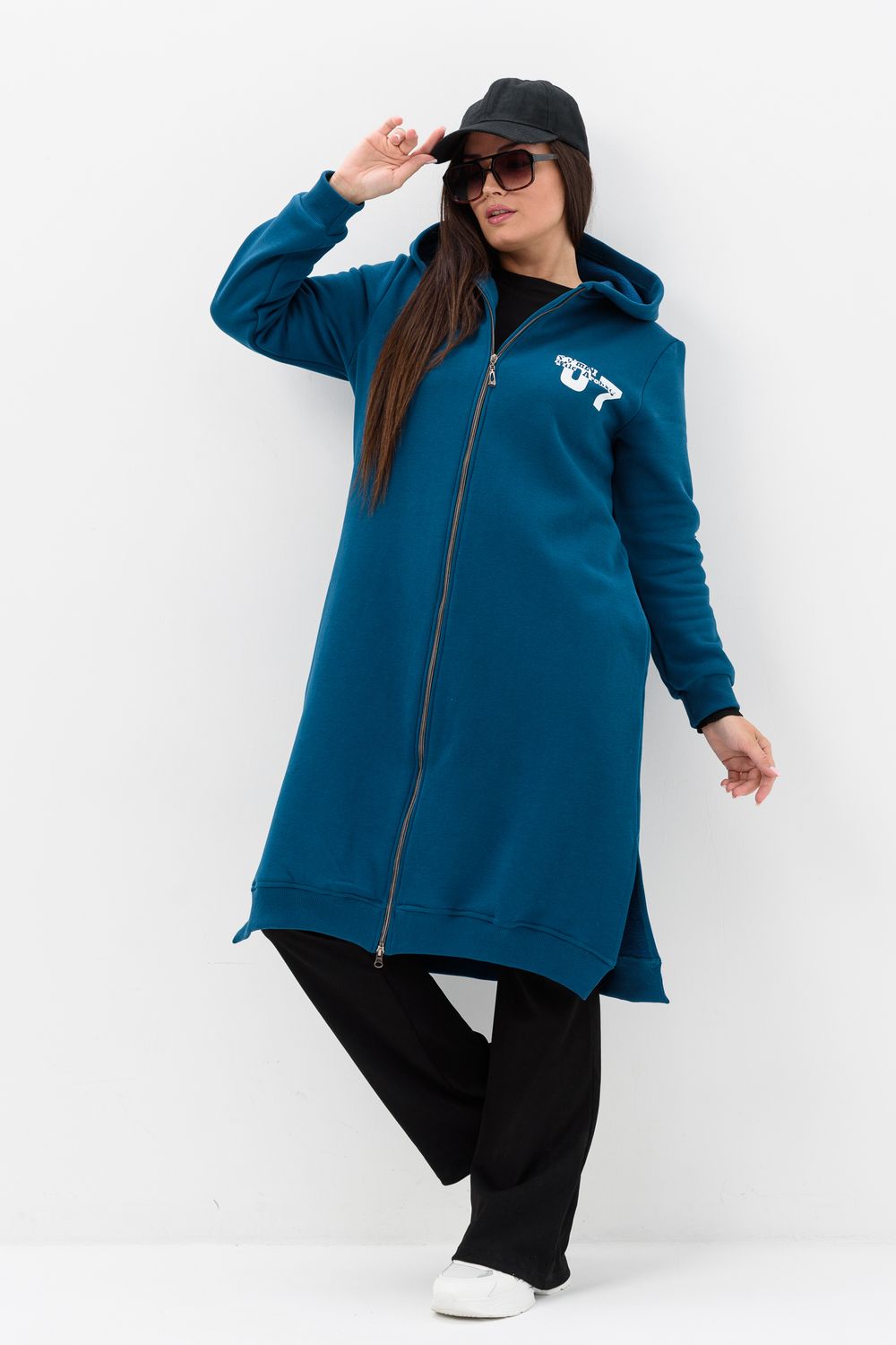 Кардиган женский на молнии - это идеальный выбор для холодной погоды, выполнен из футера на флисе, что обеспечивает комфорт и тепло. Удлиненный силуэт с разрезами делает его не только функциональным, но и стильным элементом вашего гардероба, наличие капюшона защищает от ветра, длинный рукав на манжете обеспечивает дополнительную защиту от холода. Благодаря этому, кардиган идеально подходит для прогулок на свежем воздухе в прохладную погоду на каждый день.