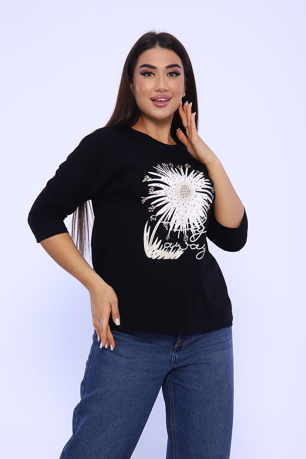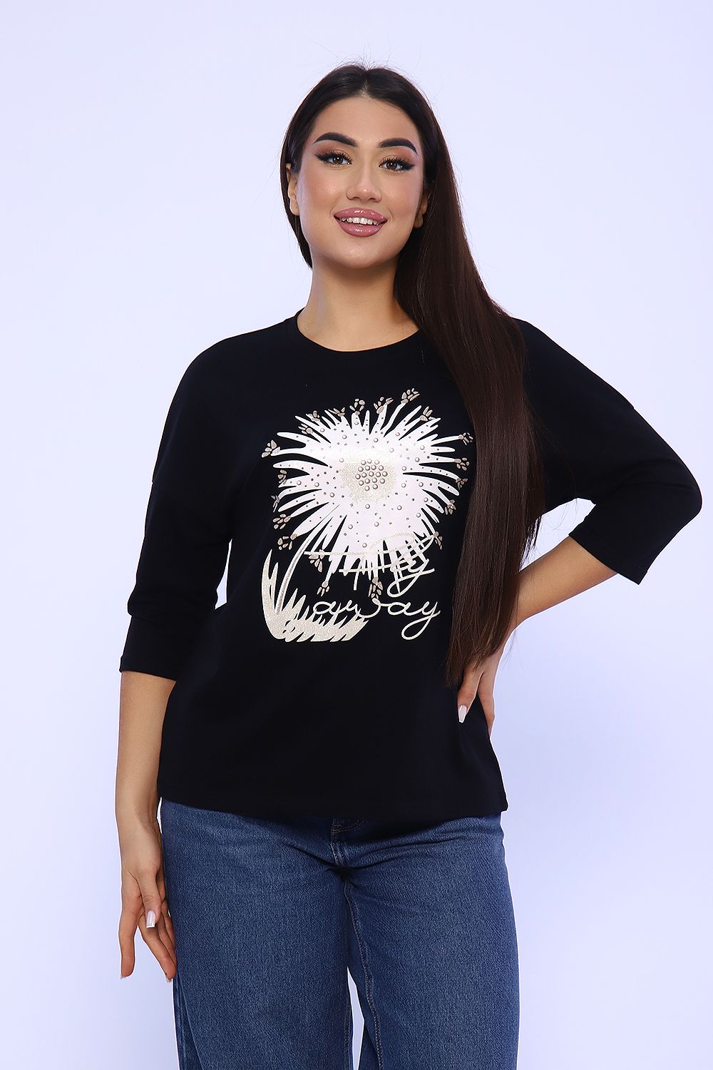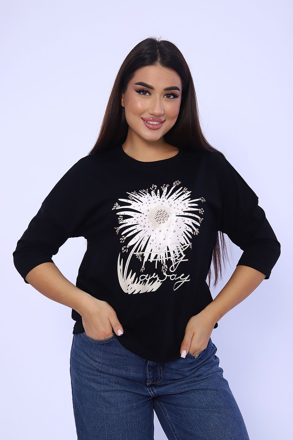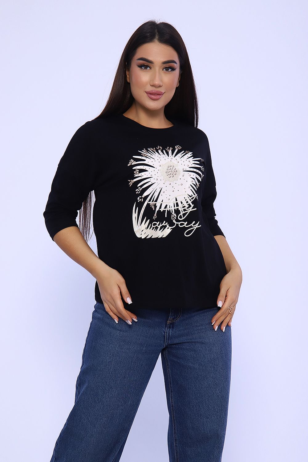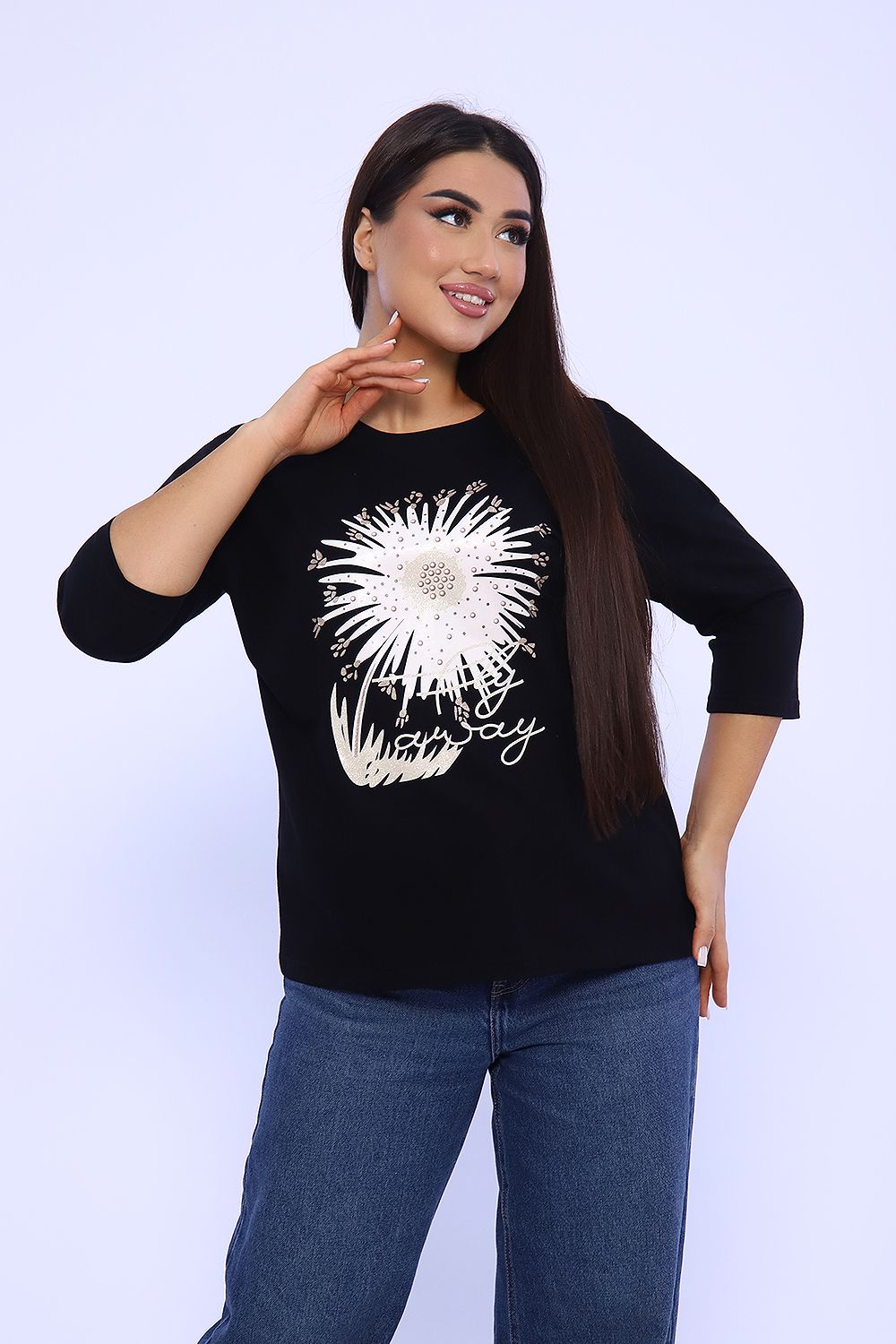 Женский лонгслив - футболка с рукавом 3/4, изготовлена из гладкого трикотажного полотна с оригинальным принтом, разнообразит ваш ежедневный образ. Футболка будет хорошим дополнением к джинсам, брюкам. Рукав 3/4 очень актуален в любую погоду!