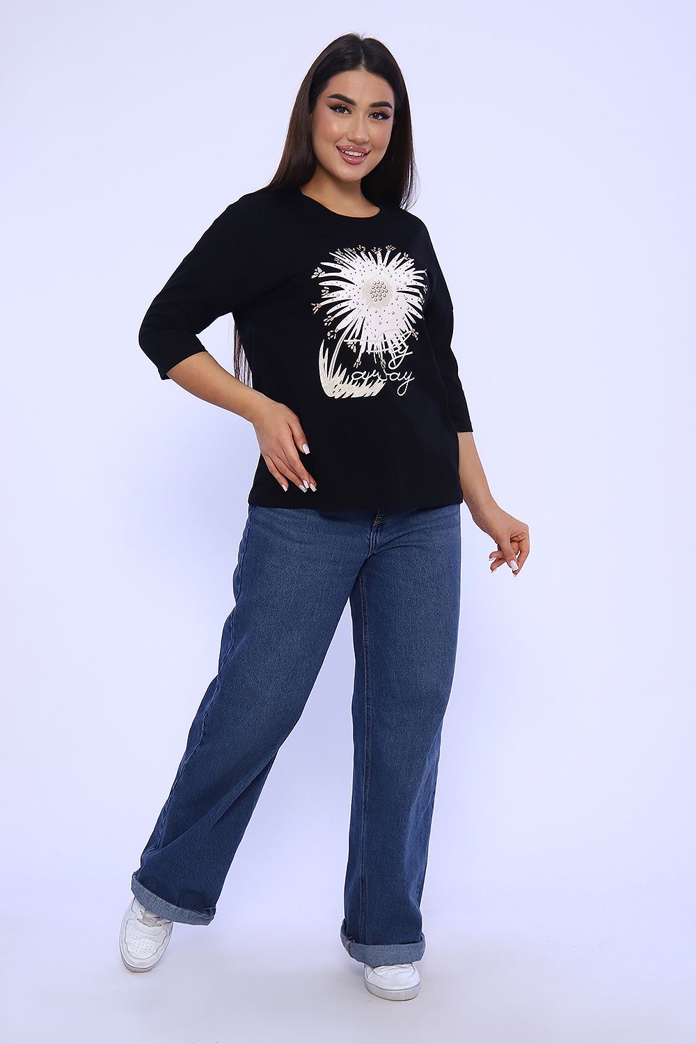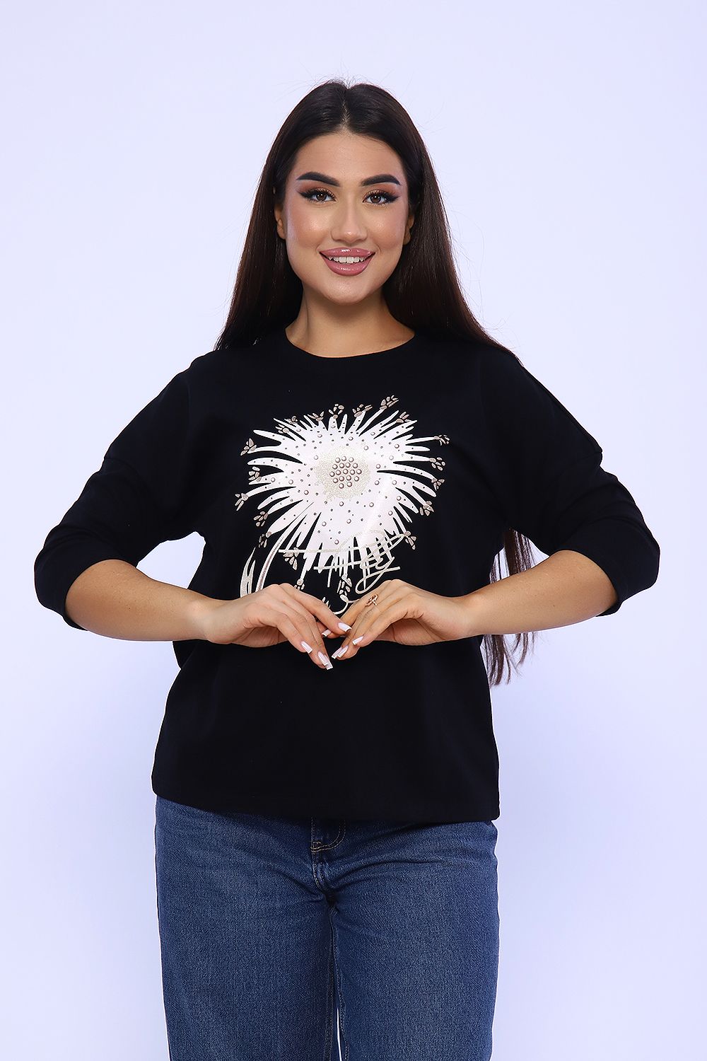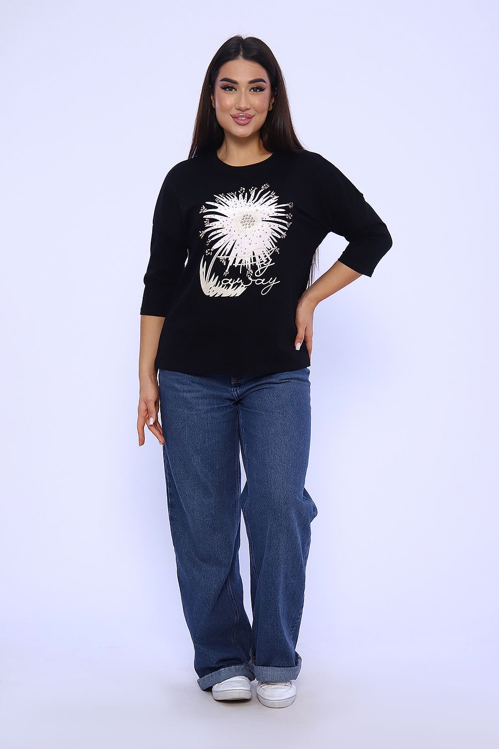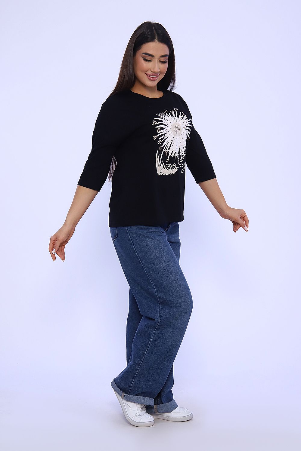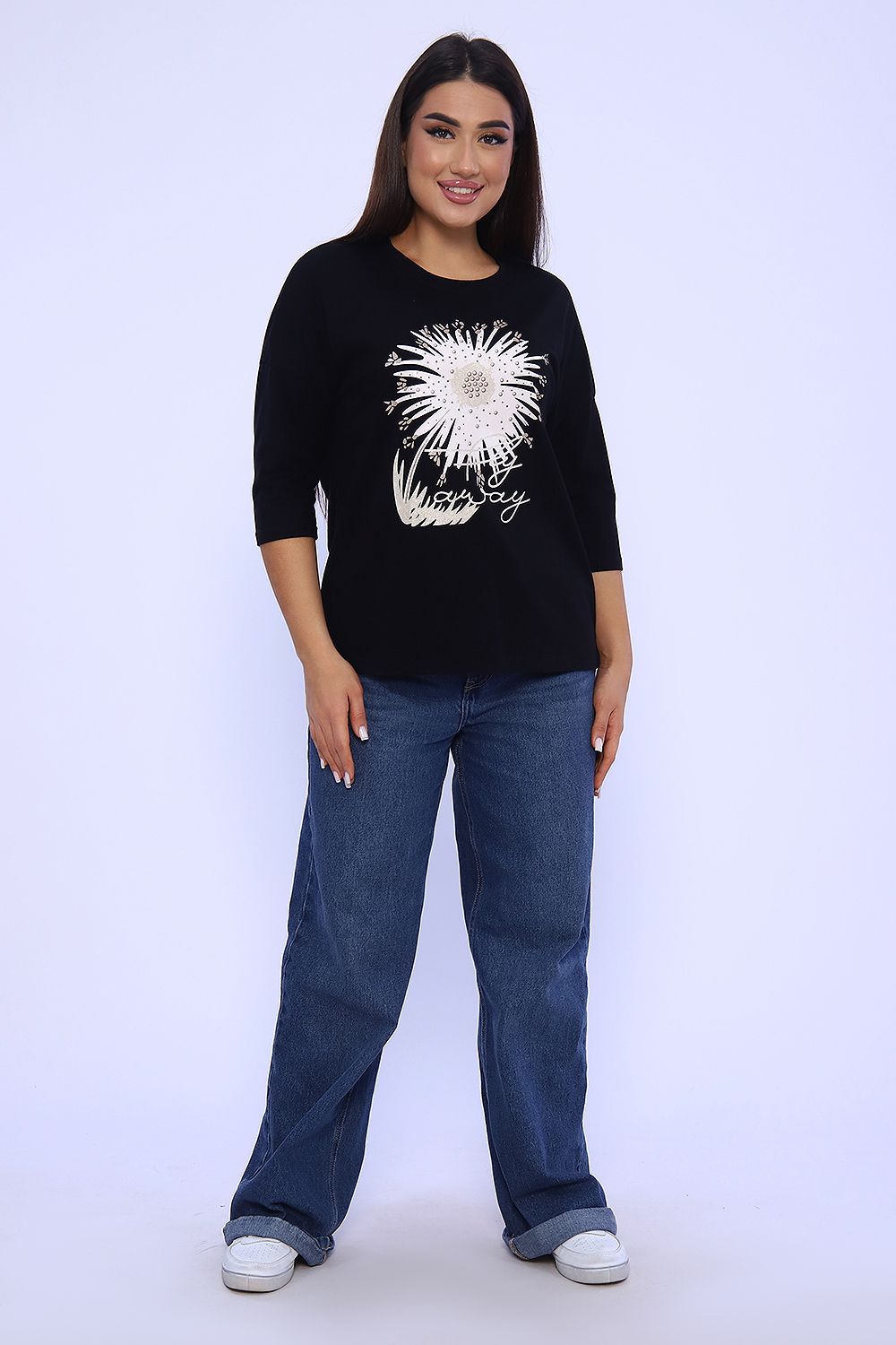 Женский лонгслив - футболка с рукавом 3/4, изготовлена из гладкого трикотажного полотна с оригинальным принтом, разнообразит ваш ежедневный образ. Футболка будет хорошим дополнением к джинсам, брюкам. Рукав 3/4 очень актуален в любую погоду!