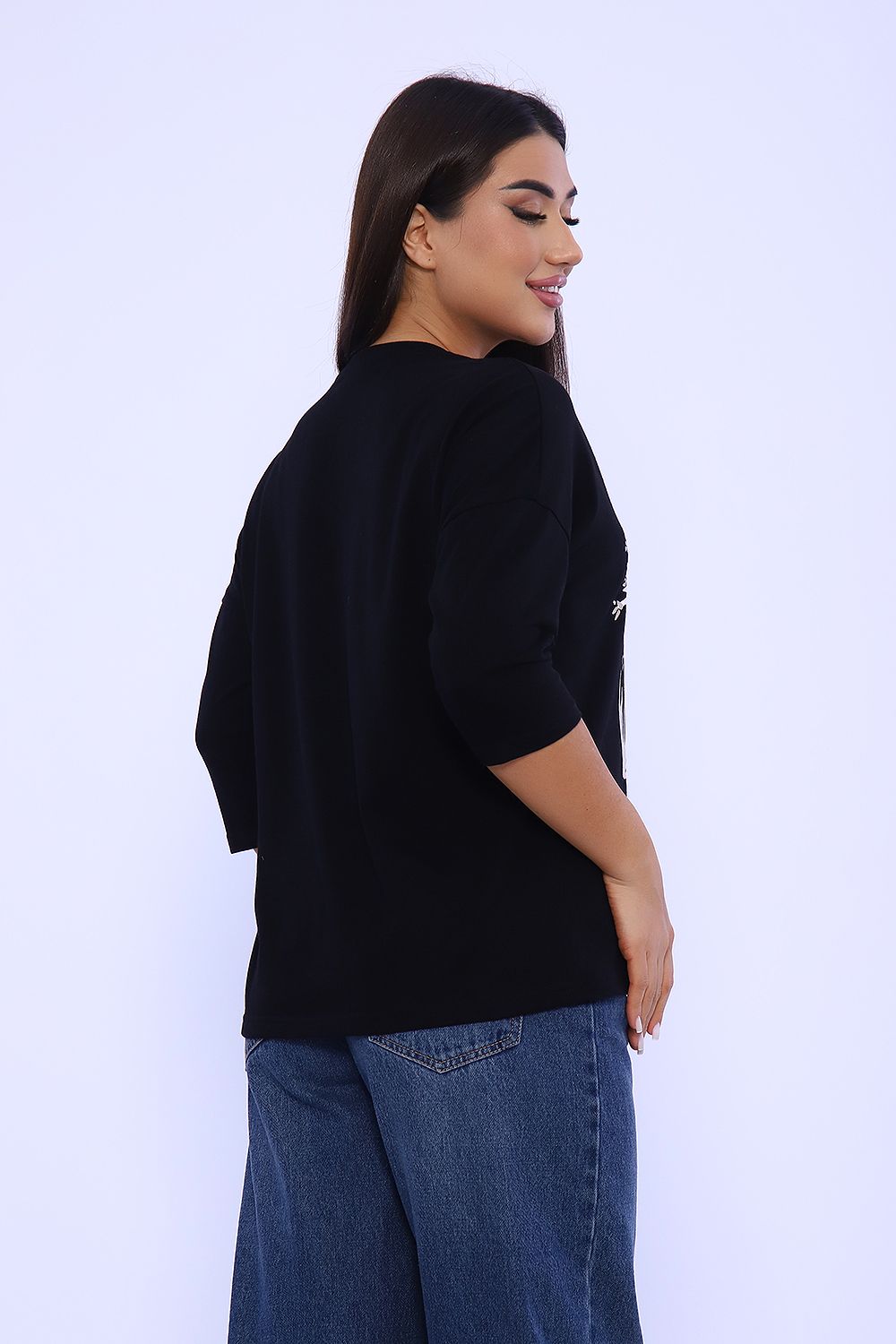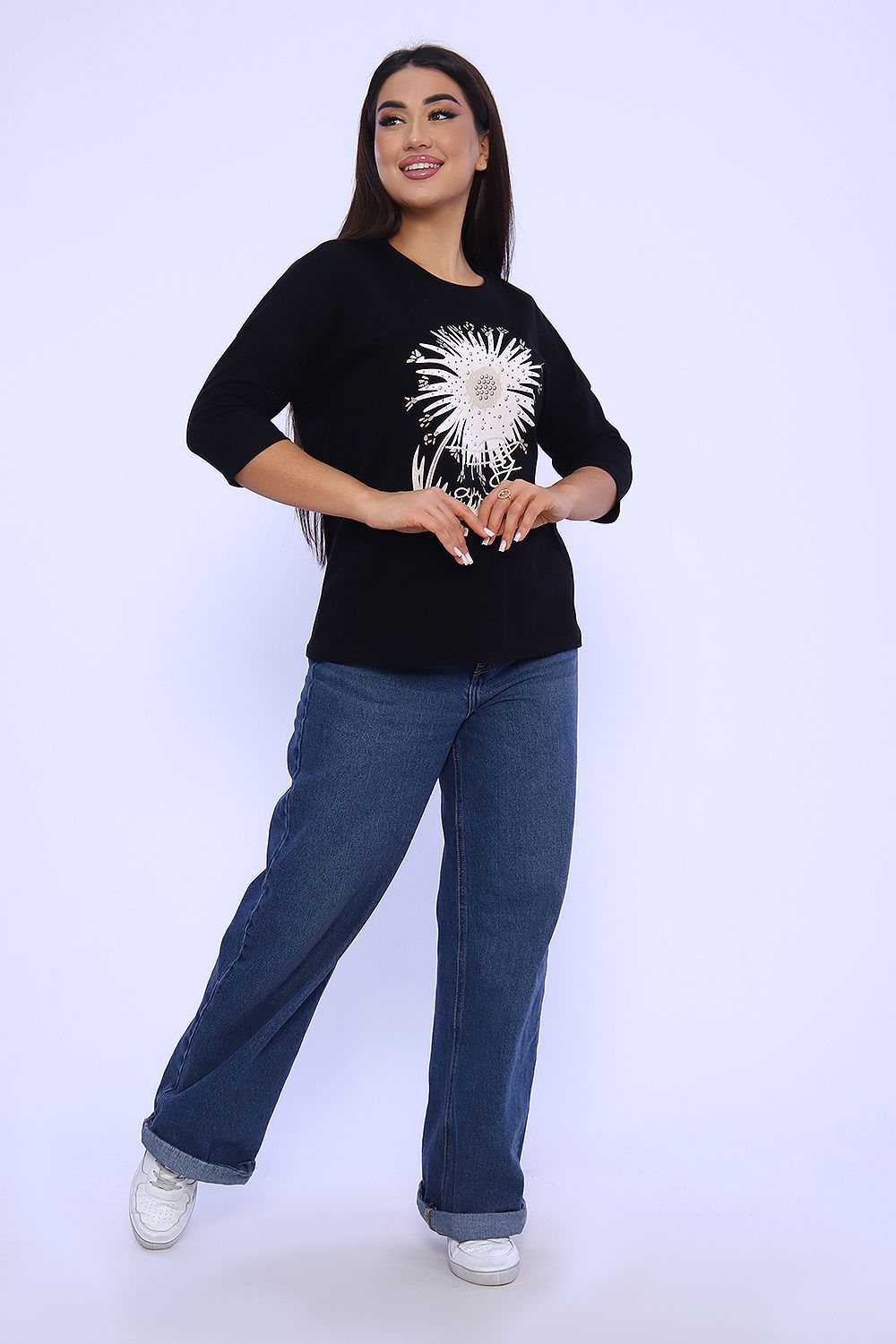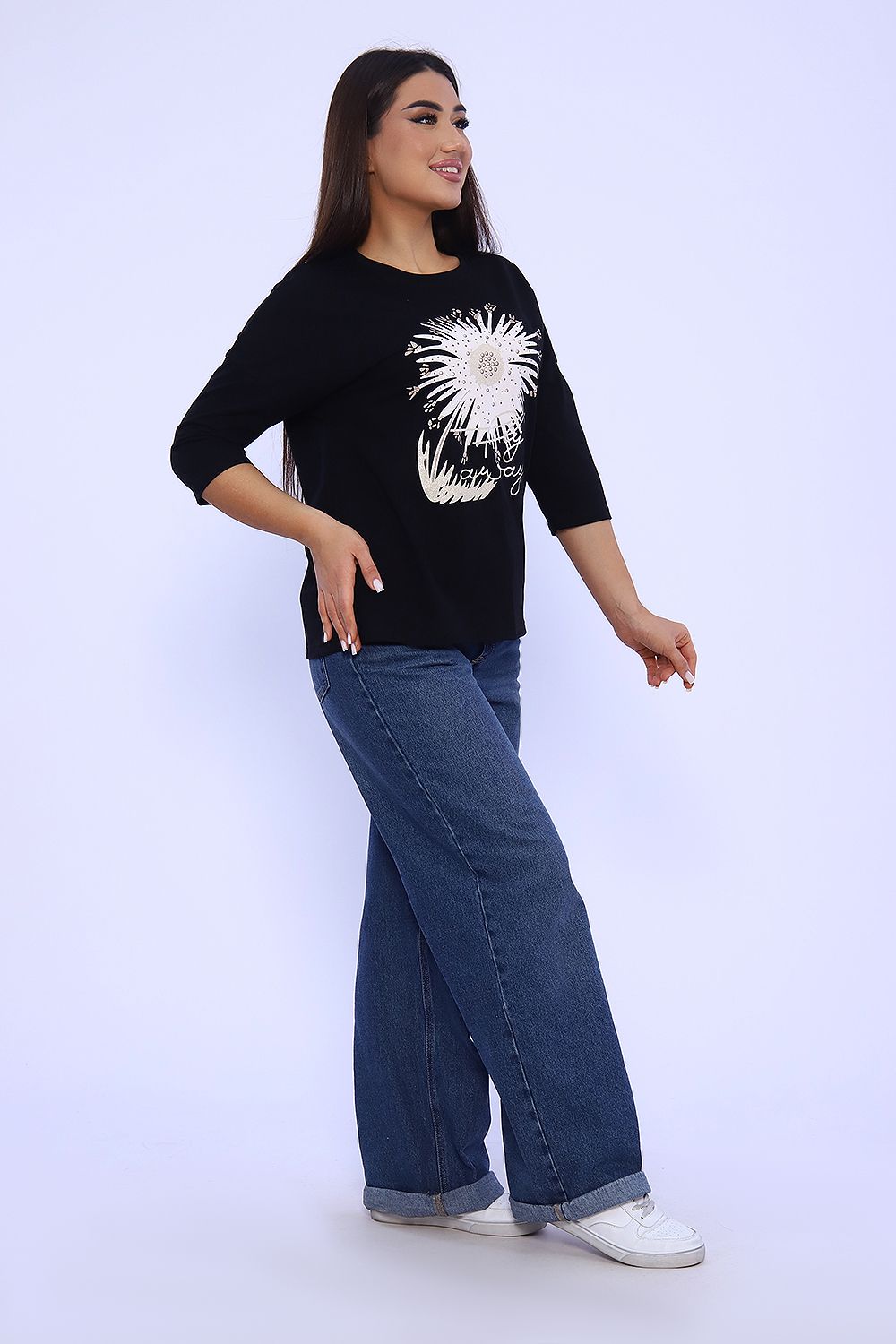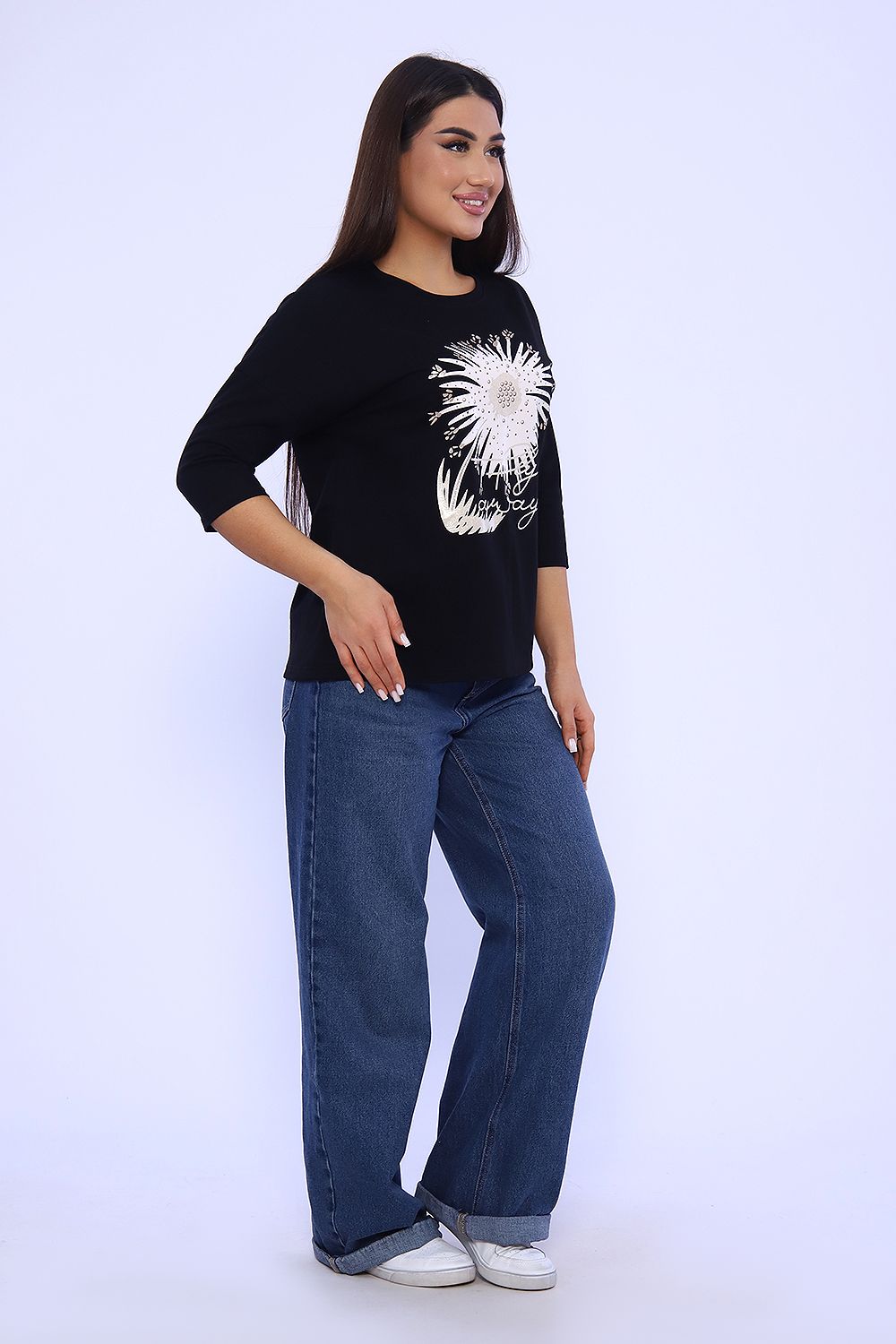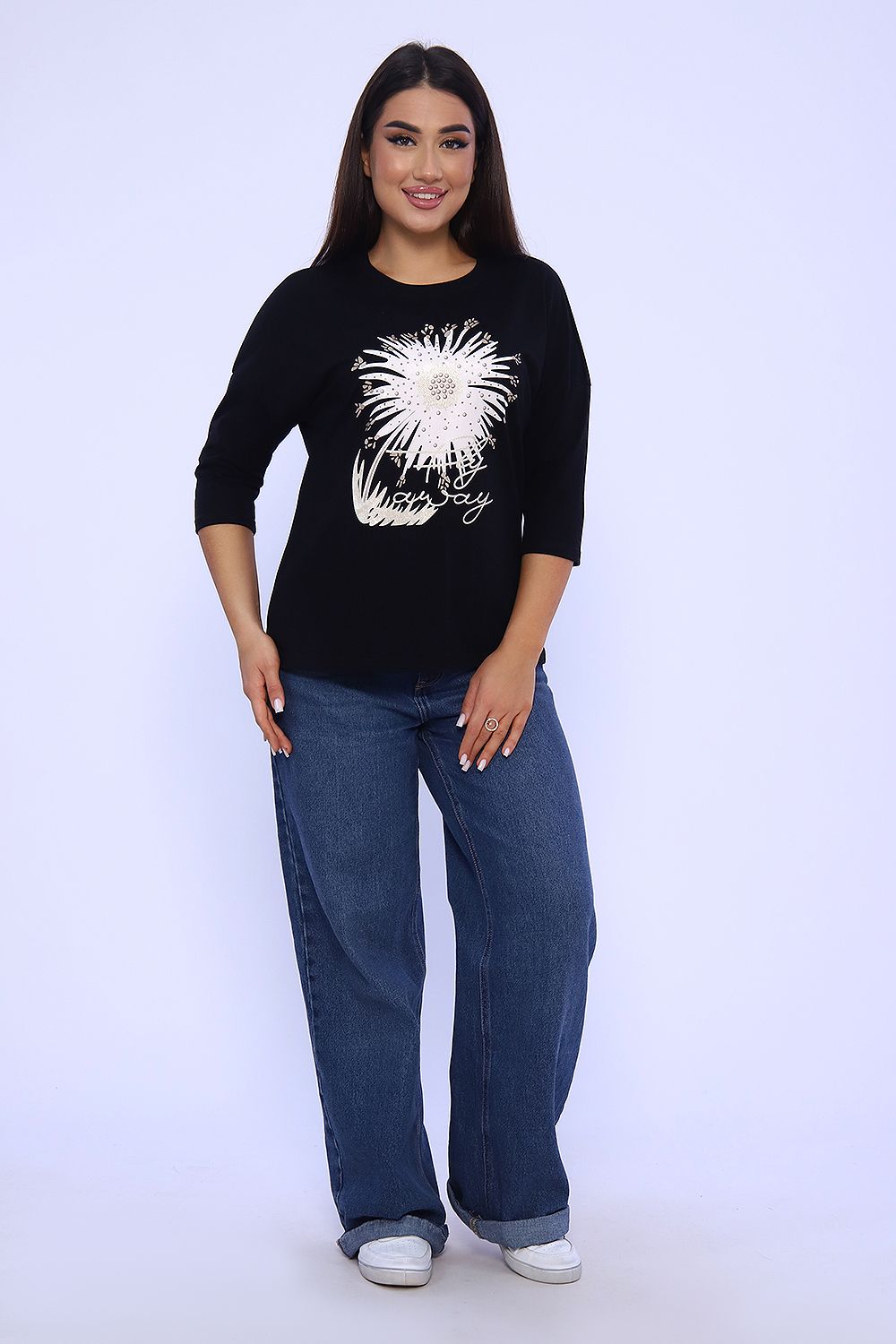 Женский лонгслив - футболка с рукавом 3/4, изготовлена из гладкого трикотажного полотна с оригинальным принтом, разнообразит ваш ежедневный образ. Футболка будет хорошим дополнением к джинсам, брюкам. Рукав 3/4 очень актуален в любую погоду!