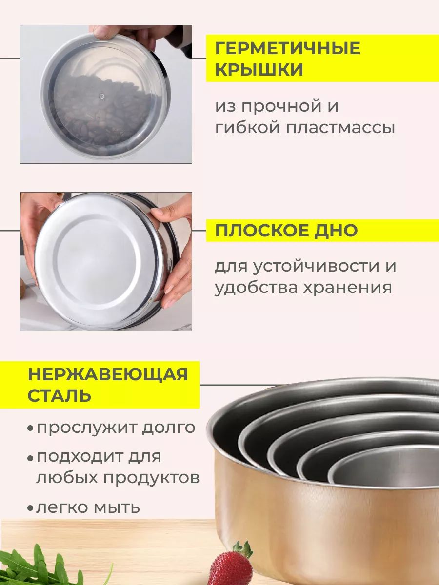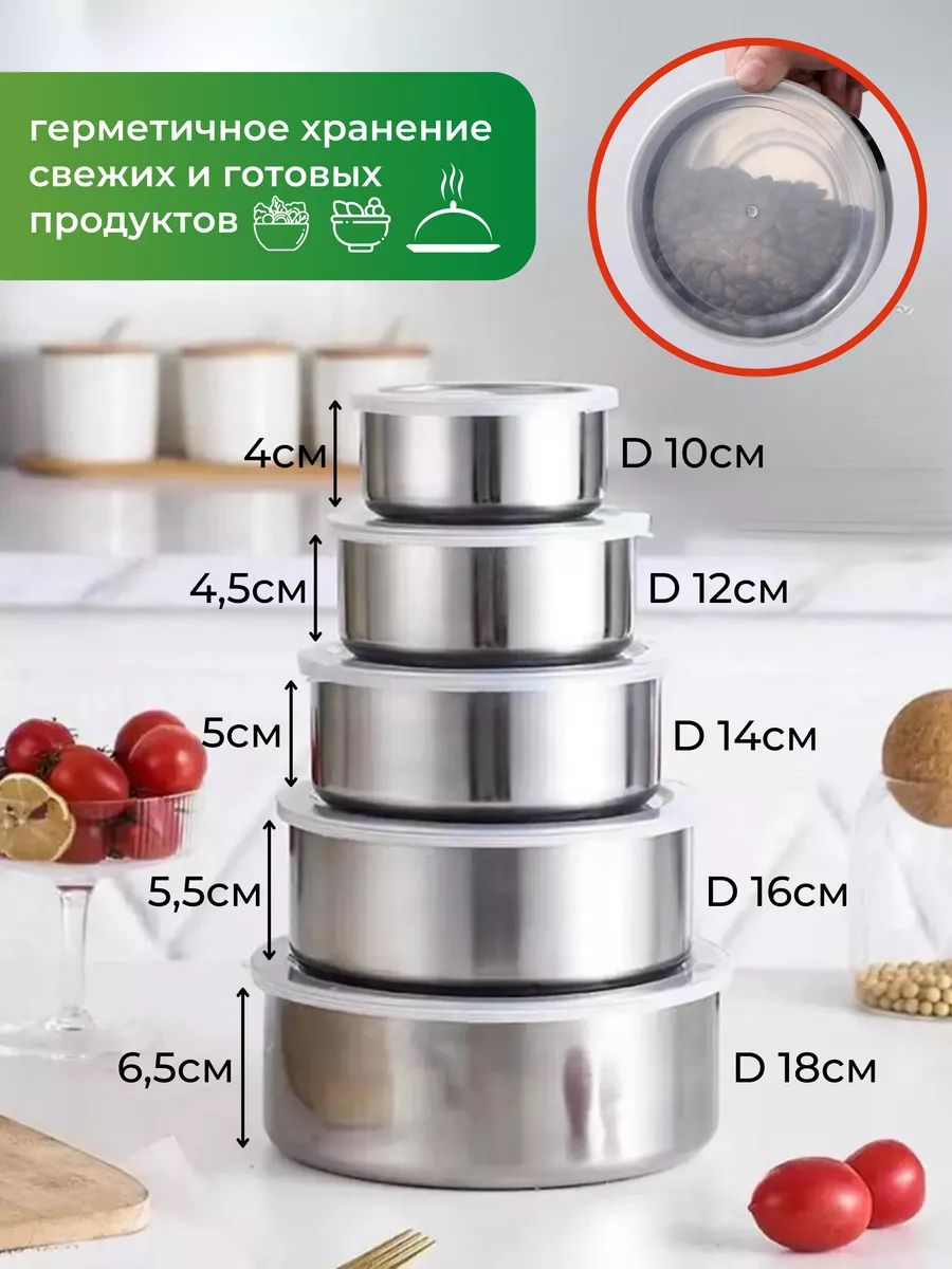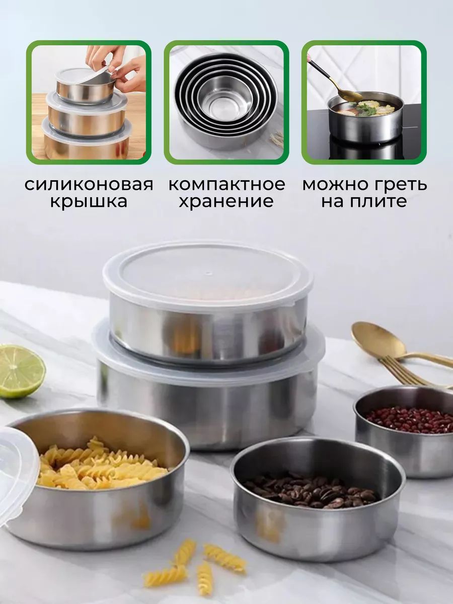 Набор облегченных мисок из нержавеющей стали, толщина стенок 0,5 мм лучший вариант практичного и компактного хранения на кухне. Салатники с крышками можно использовать для хранения сыпучих продуктов, или готовых блюд. Контейнеры для еды из высококачественной пищевой нержавеющей стали. Емкость стальная станет отличной походной туристической тарелкой в походах и на рыбалке. Контейнеры железные станут незаменимыми помощниками на каждой кухне и просто необходимы любой хозяйке для летних заготовок.