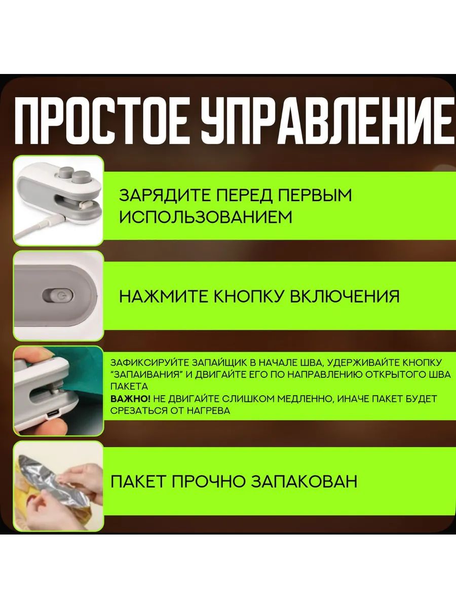 Запайщик пакетов - это удобное и портативное устройство, которое сочетает в себе функции запаивания и отрезания. Благодаря своей компактности, вы сможете легко брать его с собой в поездки или использовать в домашних условиях. Одним из главных преимуществ запайщика пакетов является его беспроводная работа. Вы больше не будете ограничены проводами и сможете свободно перемещаться по помещению при работе с устройством. Аппарат для запаивания пакетов выручит в сложной ситуации. Ручной запайщик с аккумулятором подойдет для запаивания пленки от 100 до 250 мкм. С нашим беспроводным мини упаковщиком сможете легко запечатать упаковку, гарантируя долгосрочное хранение продуктов без потери качества Этот гаджет для кухни станет помощником в сохранении свежести товаров. Этот мини запайщик пакетов действительно универсальный и полезный инструмент для вашего дома и не только. Кроме того, его удобная конструкция и простое использование делают его идеальным для всех возрастных групп. Даже дети могут легко освоить этот мини запайщик пакетов и использовать его для упаковки своих лакомств или игрушек.