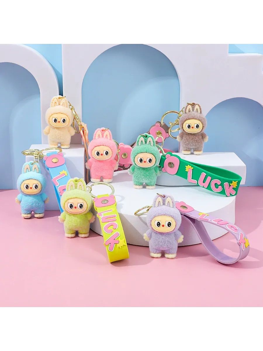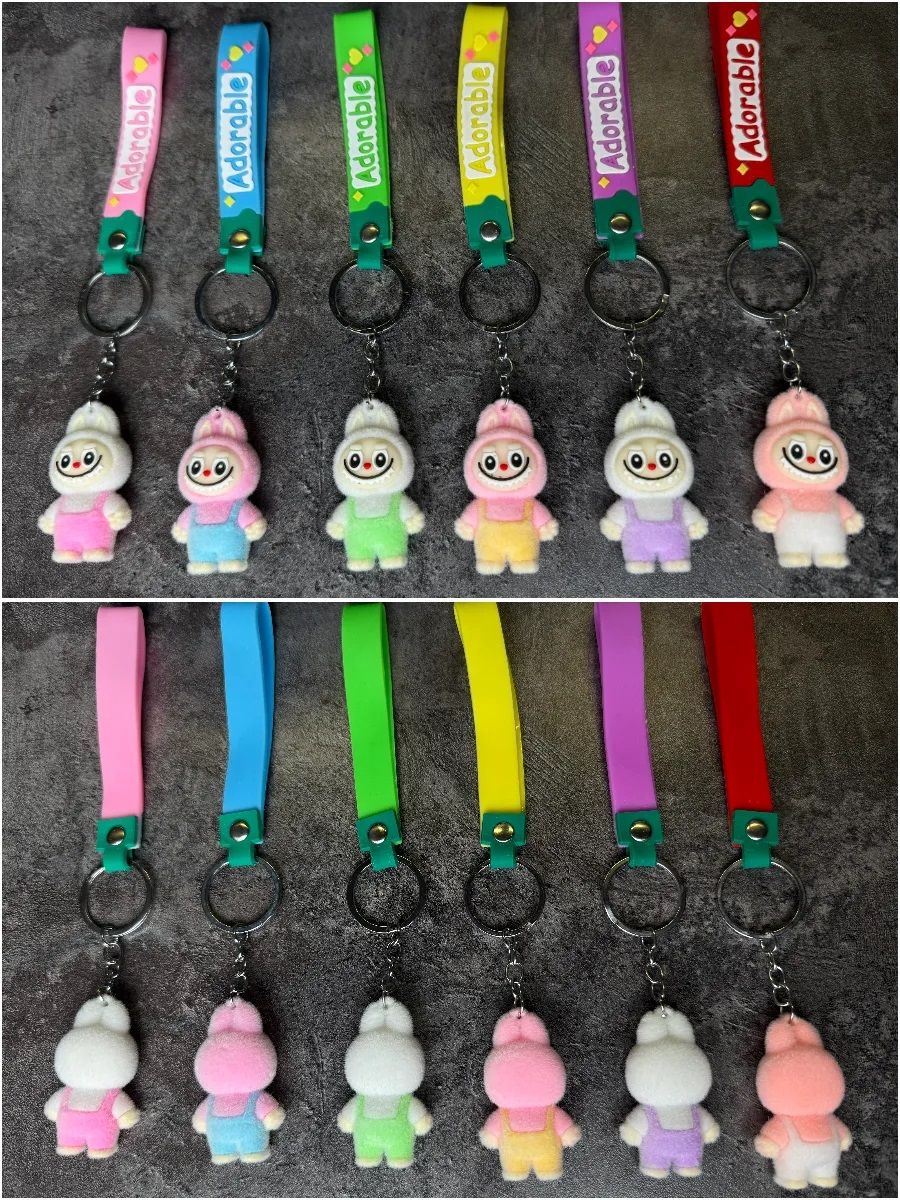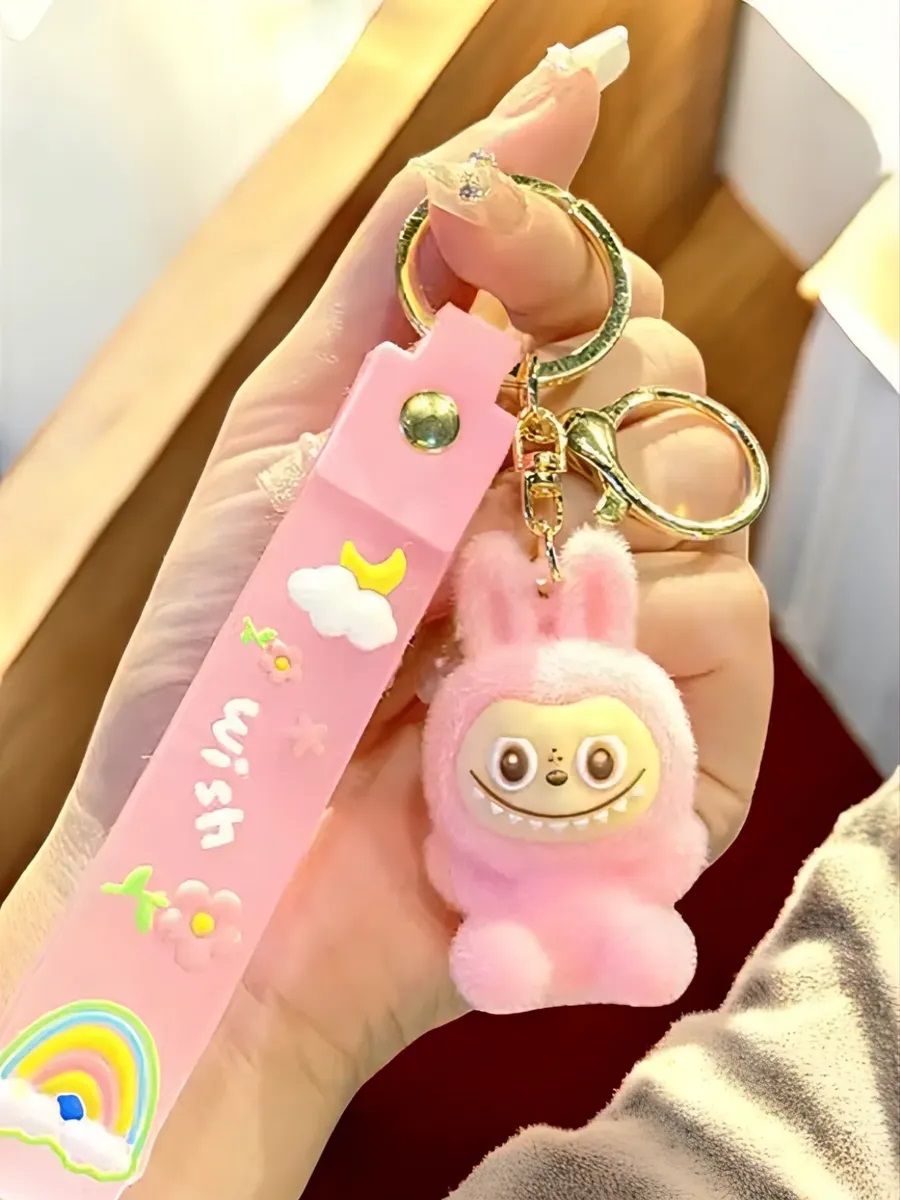 Брелоки Labubu с пушистым покрытием, с силиконовым браслетом. Цвет сюрприз. Эти милые аксессуары – не просто украшение, а способ выразить свою любовь к трендовым прикольным игрушкам Лабубу в разной одежде и образах. Размер игрушки 5.3 на 3.1 см. Устойчив к износу, приятен на ощупь и не вызывает аллергии. Качественная и яркая детализация радуют глаза, не мягкие. Изделие можно прикрепить на ключи квартиры, рюкзак, сумку шоппер, повесить на самокат, велосипед или использовать в качестве декоративного элемента на телефон чехол, ранец или пенал.