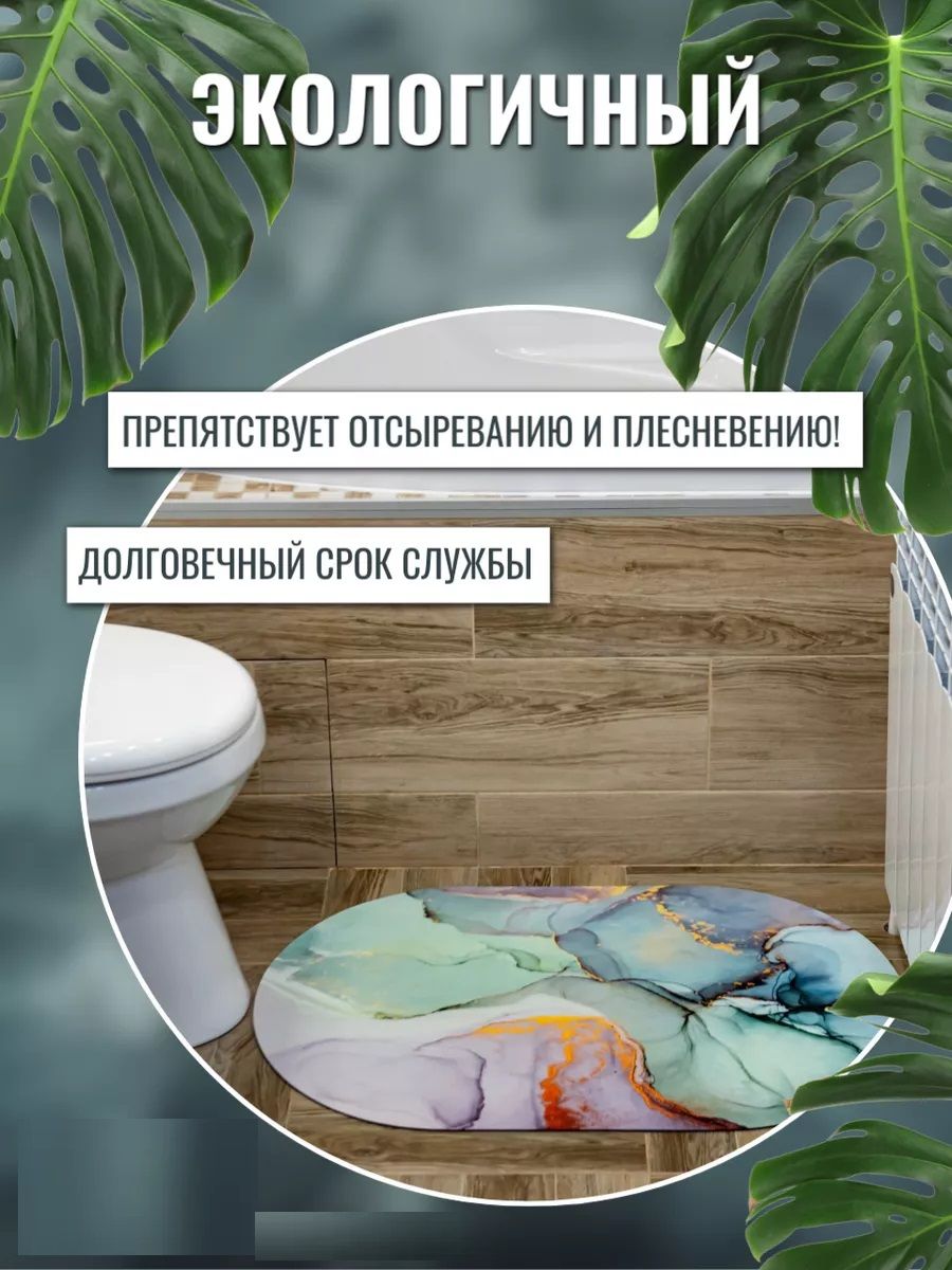 Коврик для ванной "Мраморный" - это идеальное сочетание стиля и практичности. Изготовленный из высококачественной кожи наппа, спонжа и диатомита, он быстро впитывает влагу, оставляя пол сухим и чистым. Нескользящая поверхность коврика обеспечивает безопасность, а износостойкий материал гарантирует его долгий срок службы. Овальная форма и стильный мраморный рисунок сделают ваш интерьер ванной комнаты еще более элегантным.