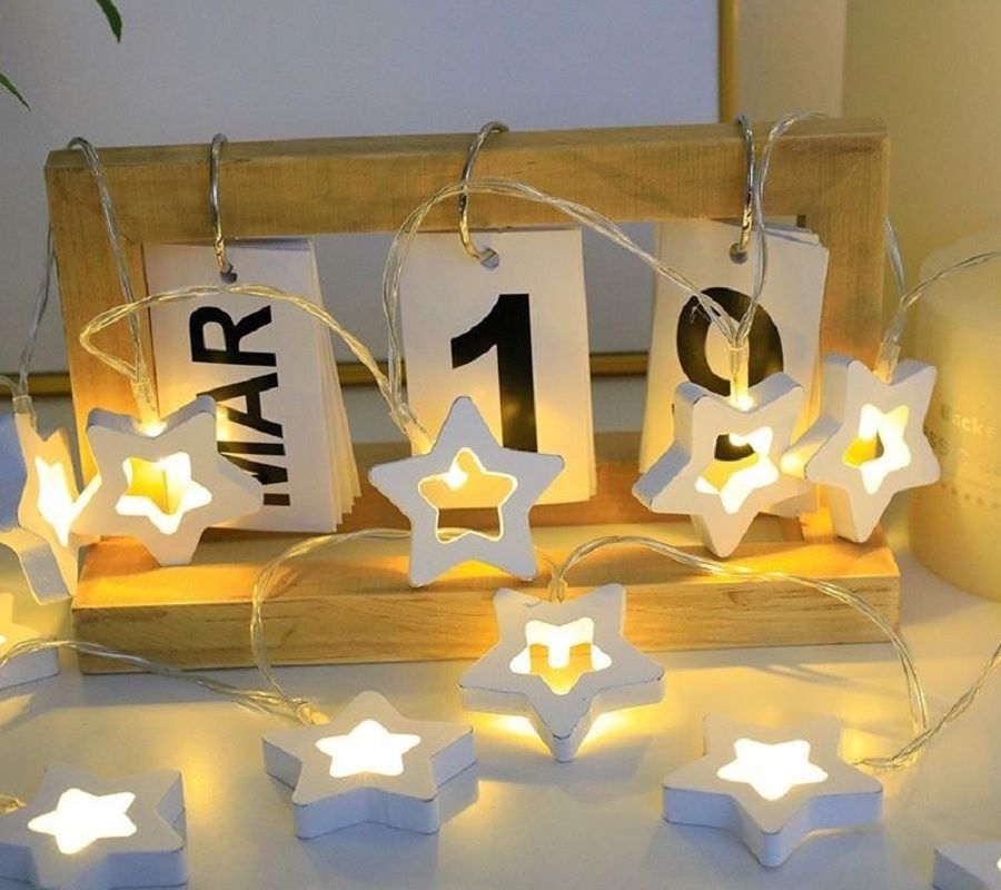 Гирлянда светодиодная деревянные звездочки и елочки — это отличный способ украсить любое праздничное мероприятие или создать атмосферу уюта и волшебства в интерьере. Цвет свечения гирлянды на елку – теплый белый. Гирлянда абсолютно безопасна (малое напряжение, фигурки не нагреваются, сделана из качественных материалов), поэтому может использоваться не только для оформления квартиры, загородного дома, офиса, фотозоны, но и для украшения класса или группы в детском саду. Прозрачный и пластичный провод гирлянды позволяет оплетать ей цветы, предметы интерьера, новогоднюю елку или рождественские декорации из еловых веток. Длинна 5м.