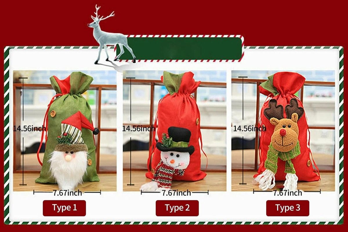 Новогодний мешок для подарков изготовлен из нетканого материала и выглядит как рождественский подарок. Эти рождественские украшения придадут вам самый особый рождественский вкус.