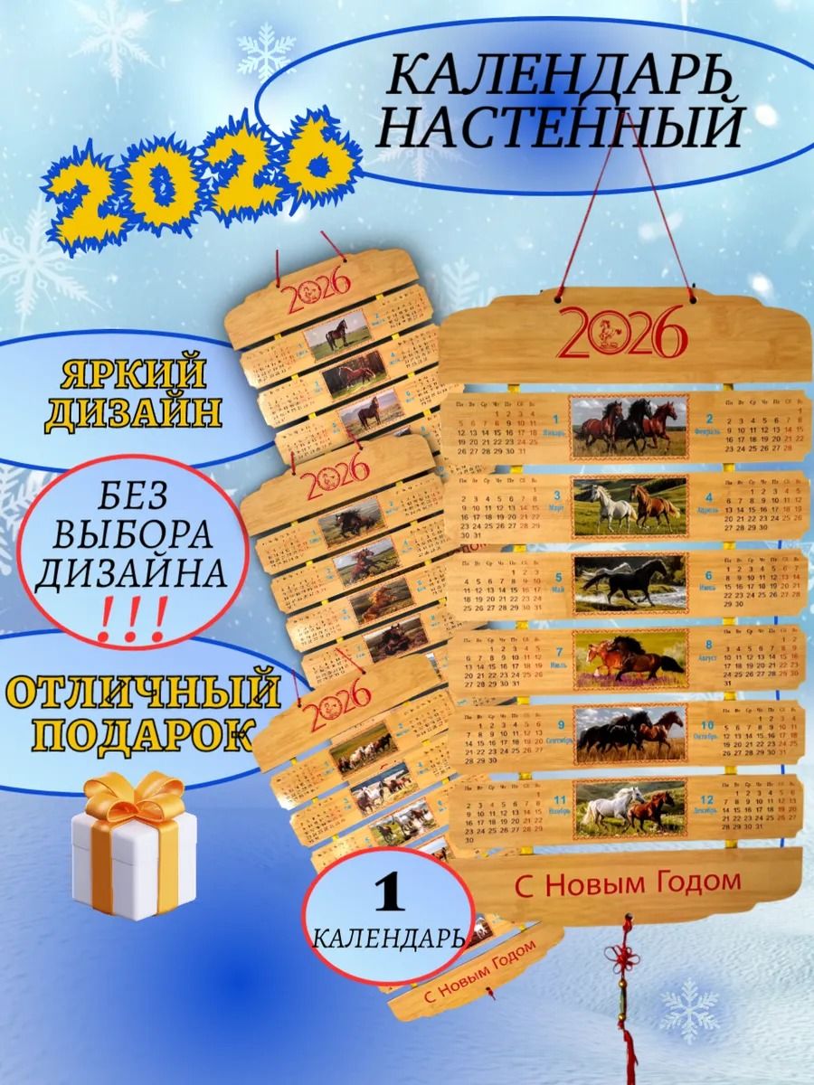 Бамбуковый настенный календарь на 2026 символ этого года Лошадь - станет прекрасным подарком для тех, кто хочет привлечь счастье и удачу в дом. Настенный календарь 2026 год - это отличный подарок на новый год. Красочный календарь на 2026 год - это и украшение офиса, квартиры или дачи, и просто замечательный предмет декора. По восточному календарю символом Нового года 2026 будет Лошадь, поэтому календарь настенный выполнен в ярком современном дизайне. Календарь вешается на стену с помощью ленточки, а сверху и снизу у него деревянный каркас. Календарь Лошадь станет прекрасным дополнением к любому интерьеру.