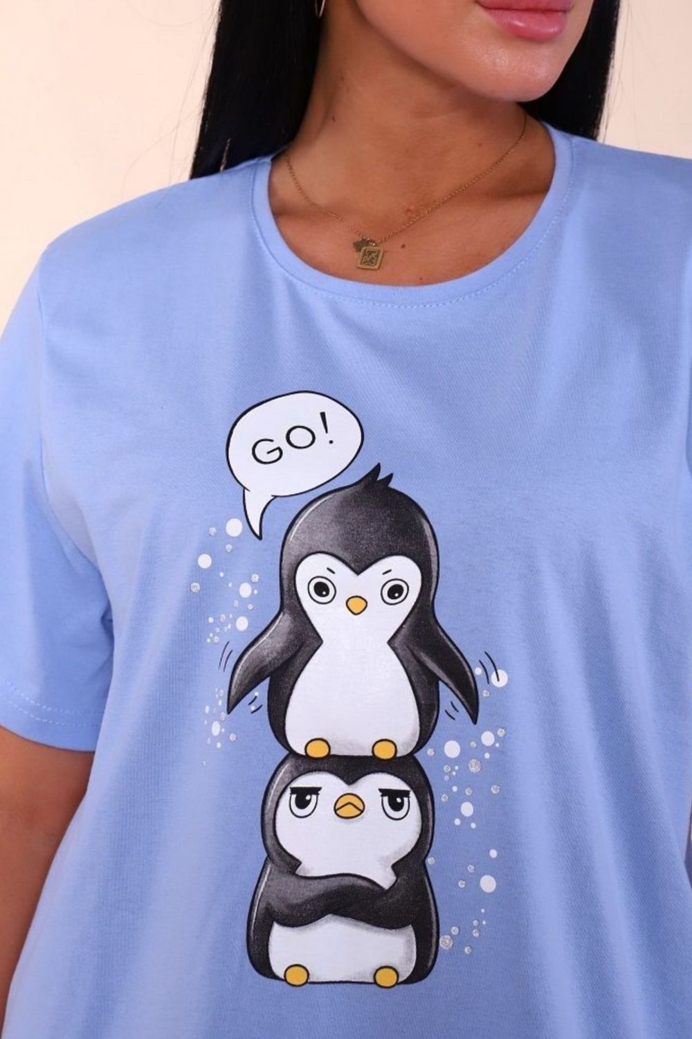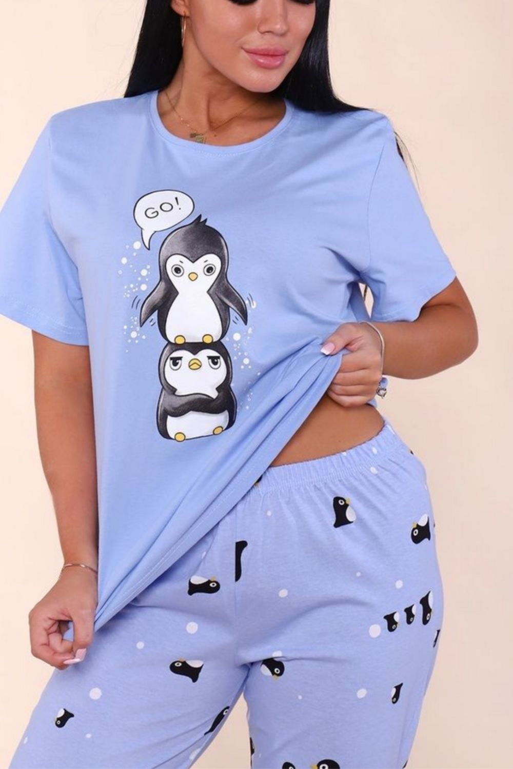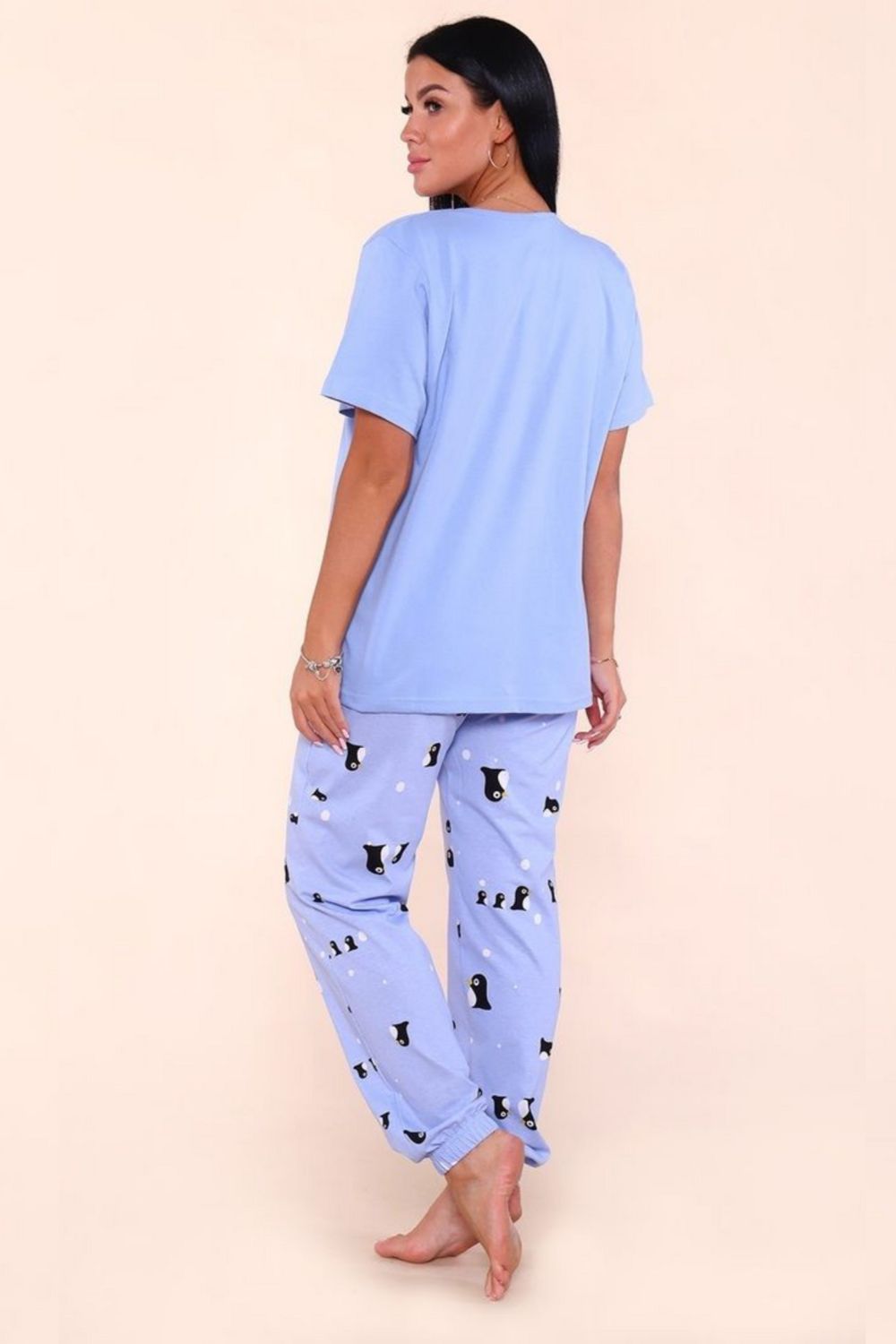Одной из ключевых особенностей модели является оригинальный анималистический принт с изображением пингвинов, который придаёт комплекту уникальность и выразительность. Свободный силуэт обеспечивает максимальный комфорт и свободу движений, что делает его идеальным для домашнего использования.