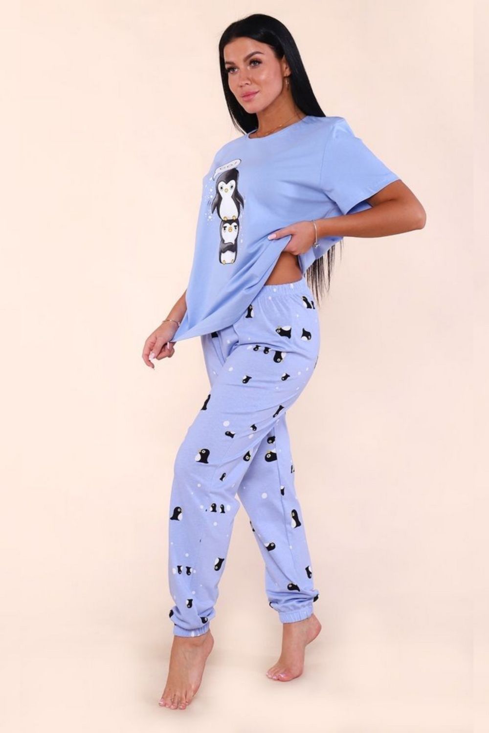Футболка с коротким рукавом и удлинённой длиной позволяет легко комбинировать комплект с другими предметами одежды. Брюки на резинке удобно садятся по фигуре и легко надеваются и снимаются, что делает этот домашний костюм прекрасным выбором для уюта и расслабления.