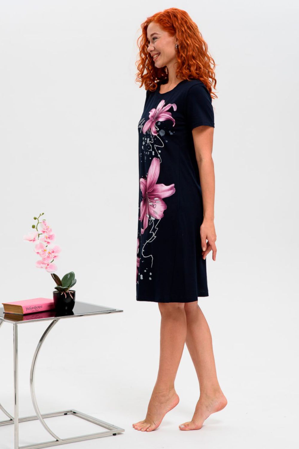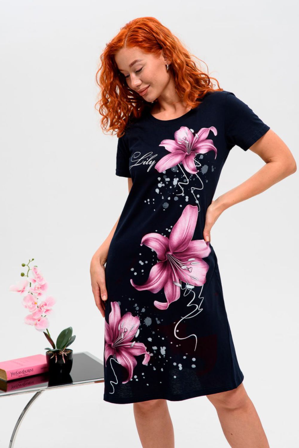 Туника удлиненная женская из 100% хлопка.Модель туники домашней полуприлегающего силуэта.имеет короткий рукав,округлый вырез горловины.Такой фасон отлично смотриться на девушках с пышными формами.Платье-туника подчеркнет вашу женственность и привлекательность.В таком платье удобно отправиться и на прогулку,и на дачу,и за покупками,а можно взять его на море в качестве летней легкой одежды.