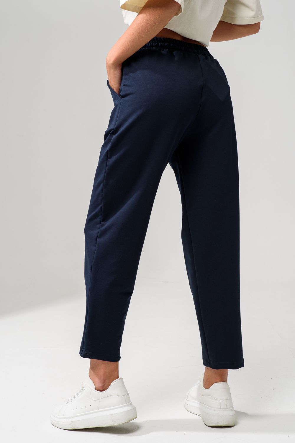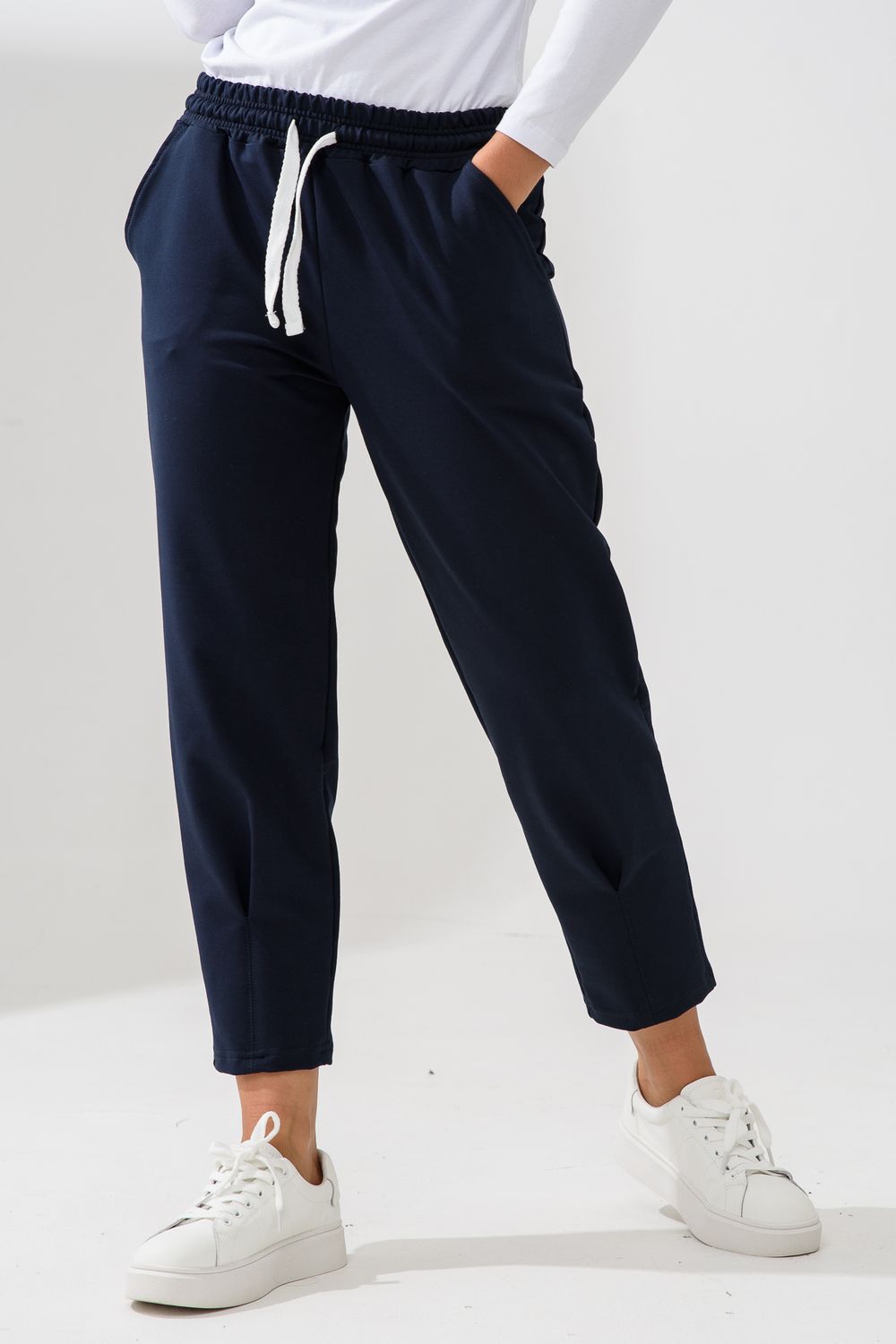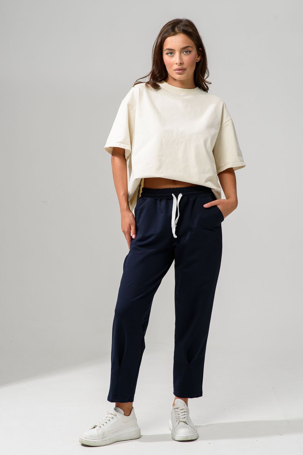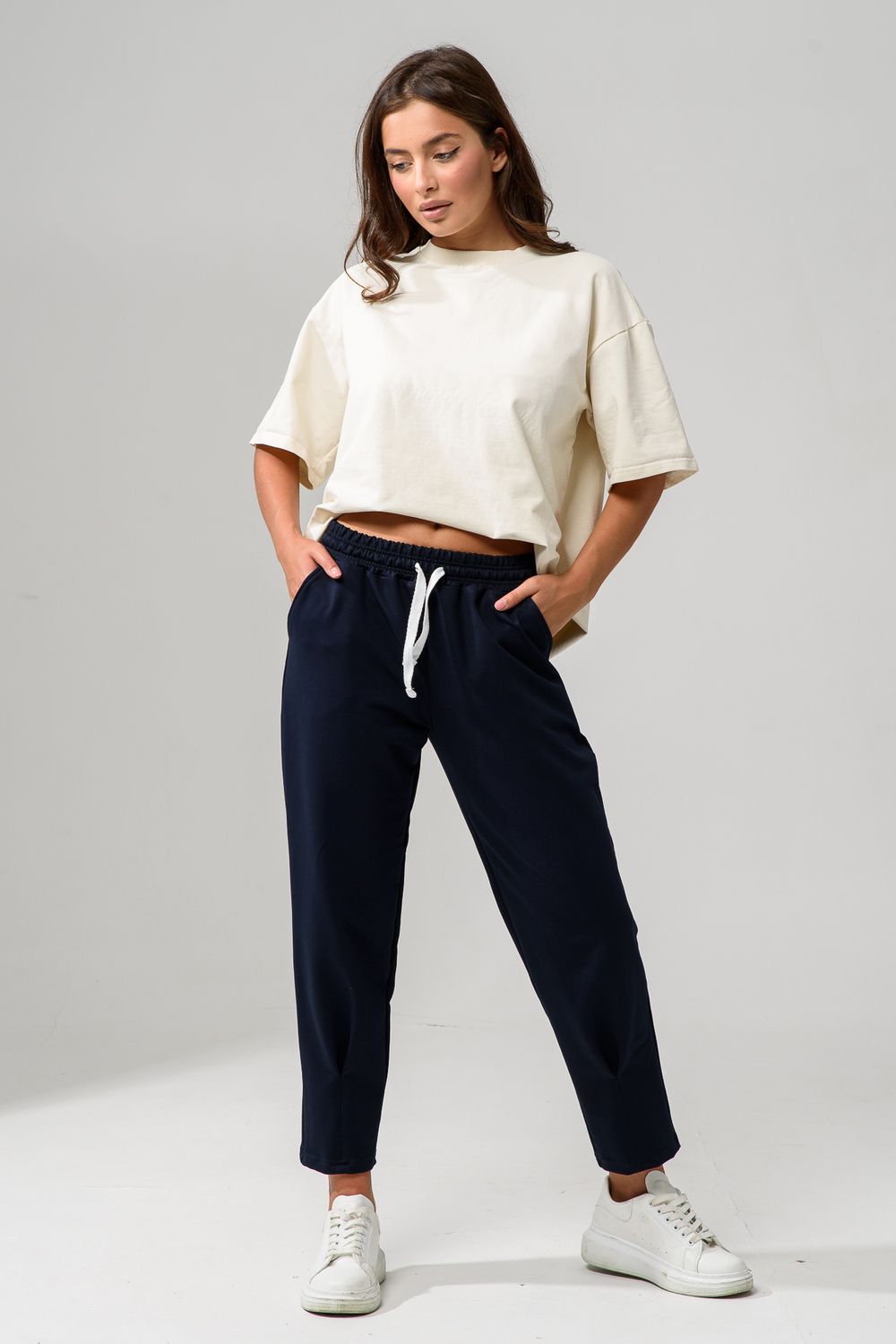 Базовые брюки-бананы это идеальный выбор для повседневного стиля. Укороченные 7/8 на подойдут как для прогулок, спорта и офиса. Брюки на резинке из высококачественного хлопкового материала имеют эластичный пояс завязками и карманы. На высокой посадке, визуально удлиняет ноги и подчеркивают женственный силуэт.