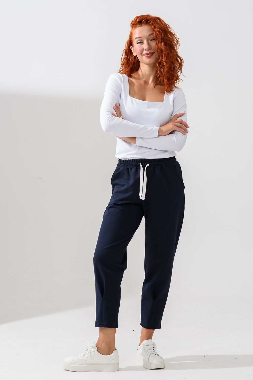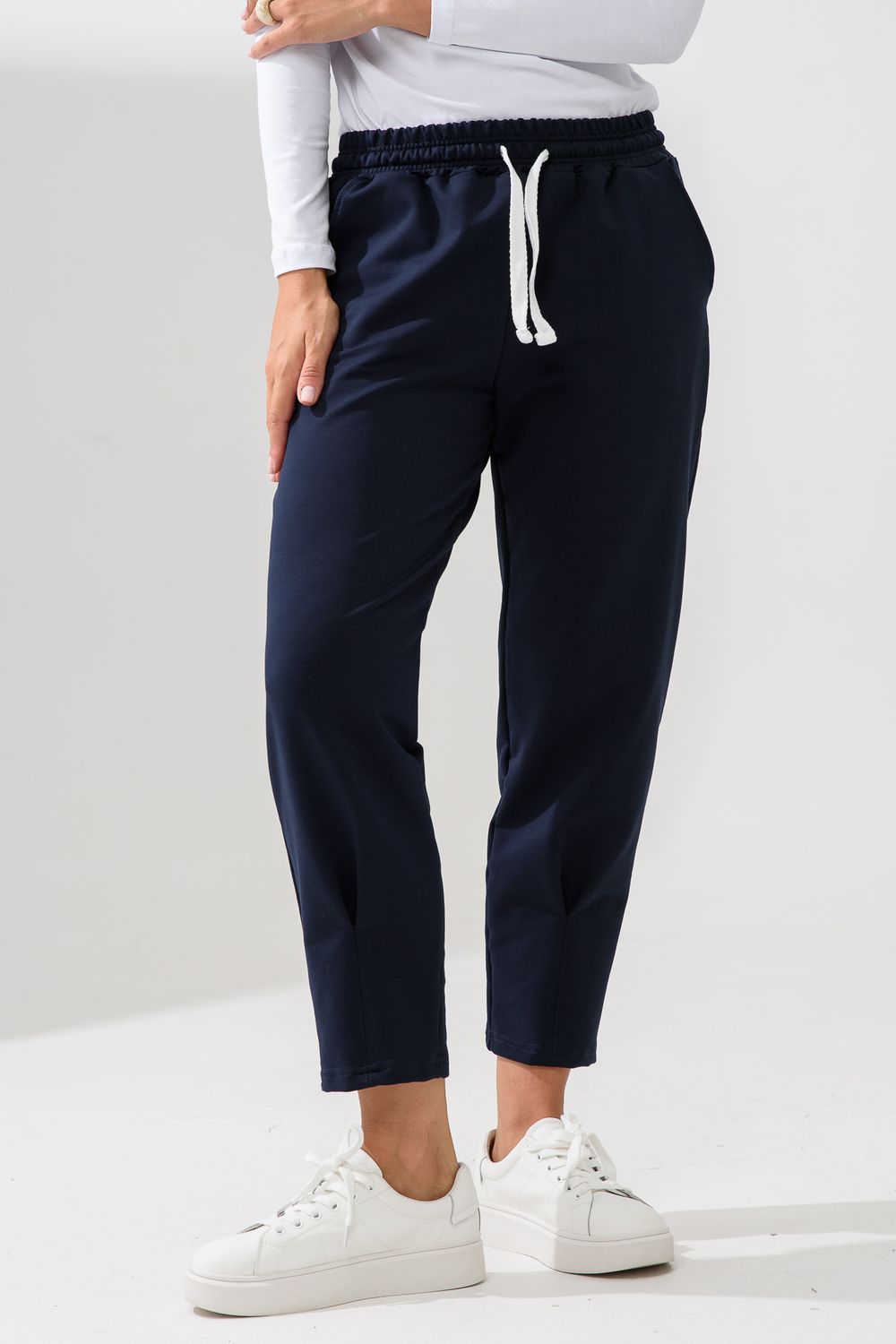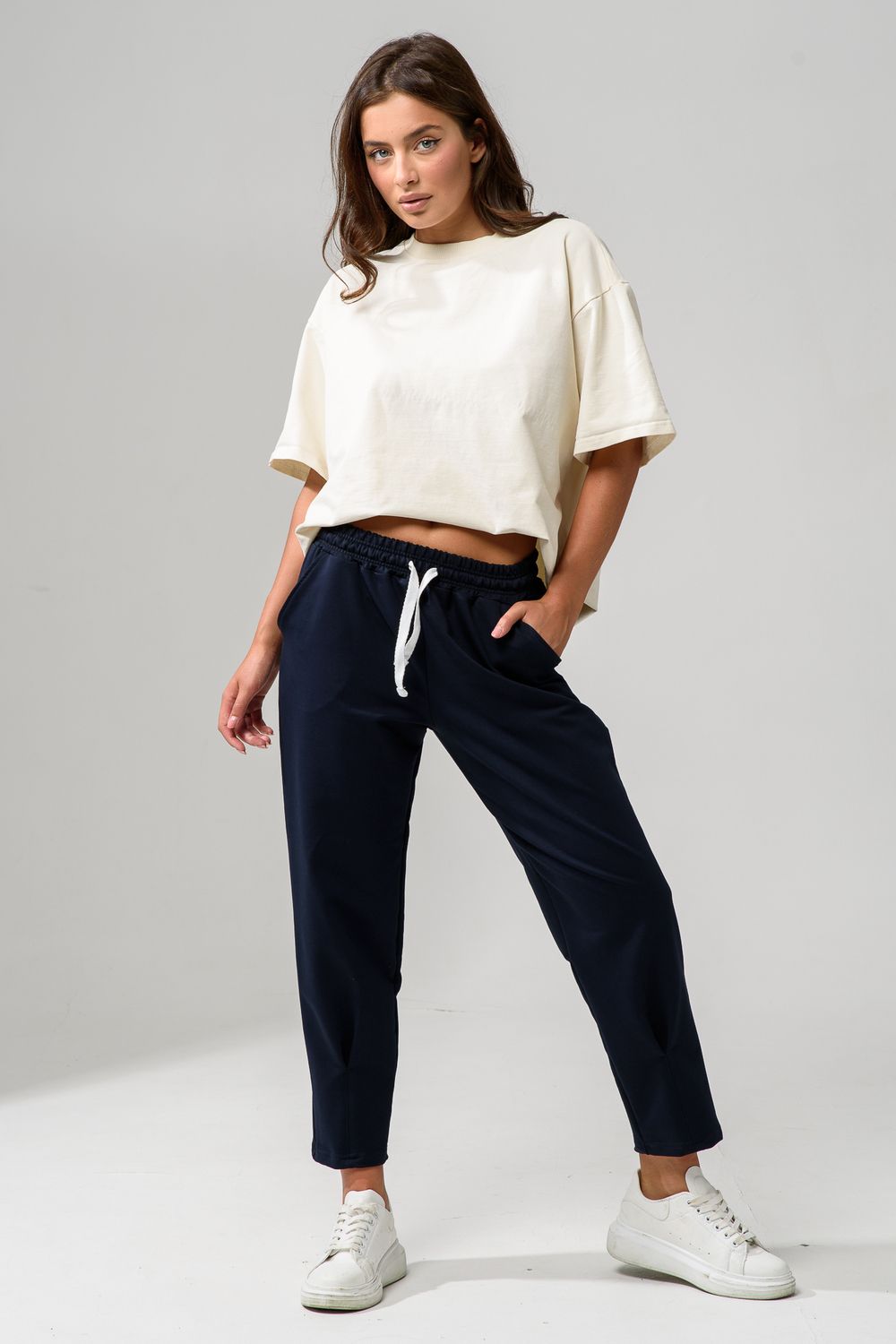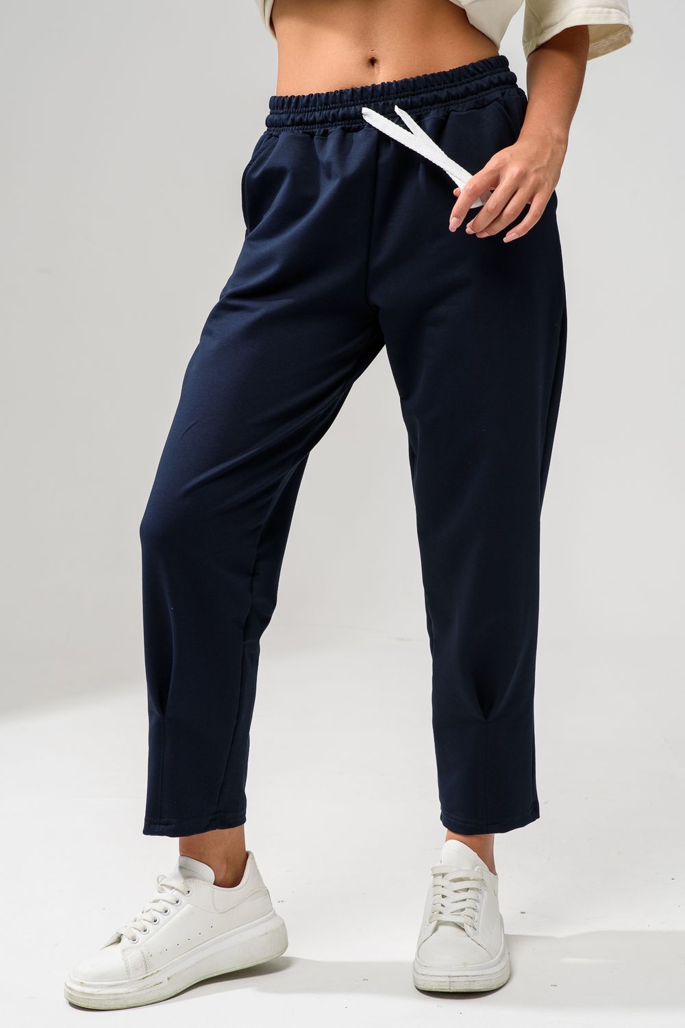 Базовые брюки-бананы это идеальный выбор для повседневного стиля. Укороченные 7/8 на подойдут как для прогулок, спорта и офиса. Брюки на резинке из высококачественного хлопкового материала имеют эластичный пояс завязками и карманы. На высокой посадке, визуально удлиняет ноги и подчеркивают женственный силуэт.
