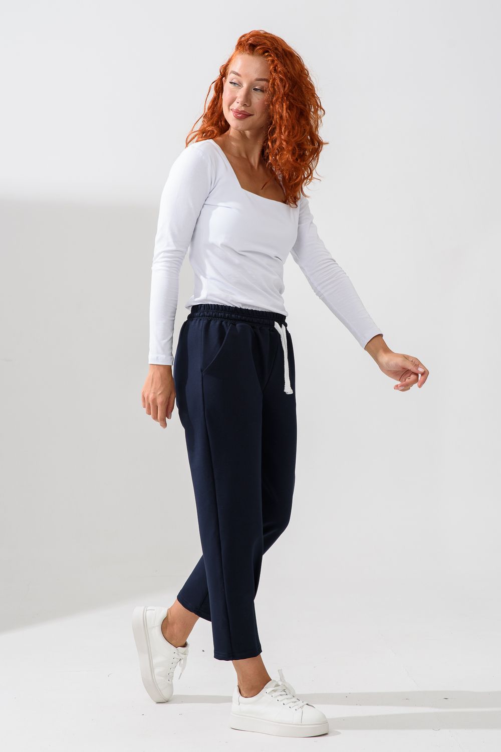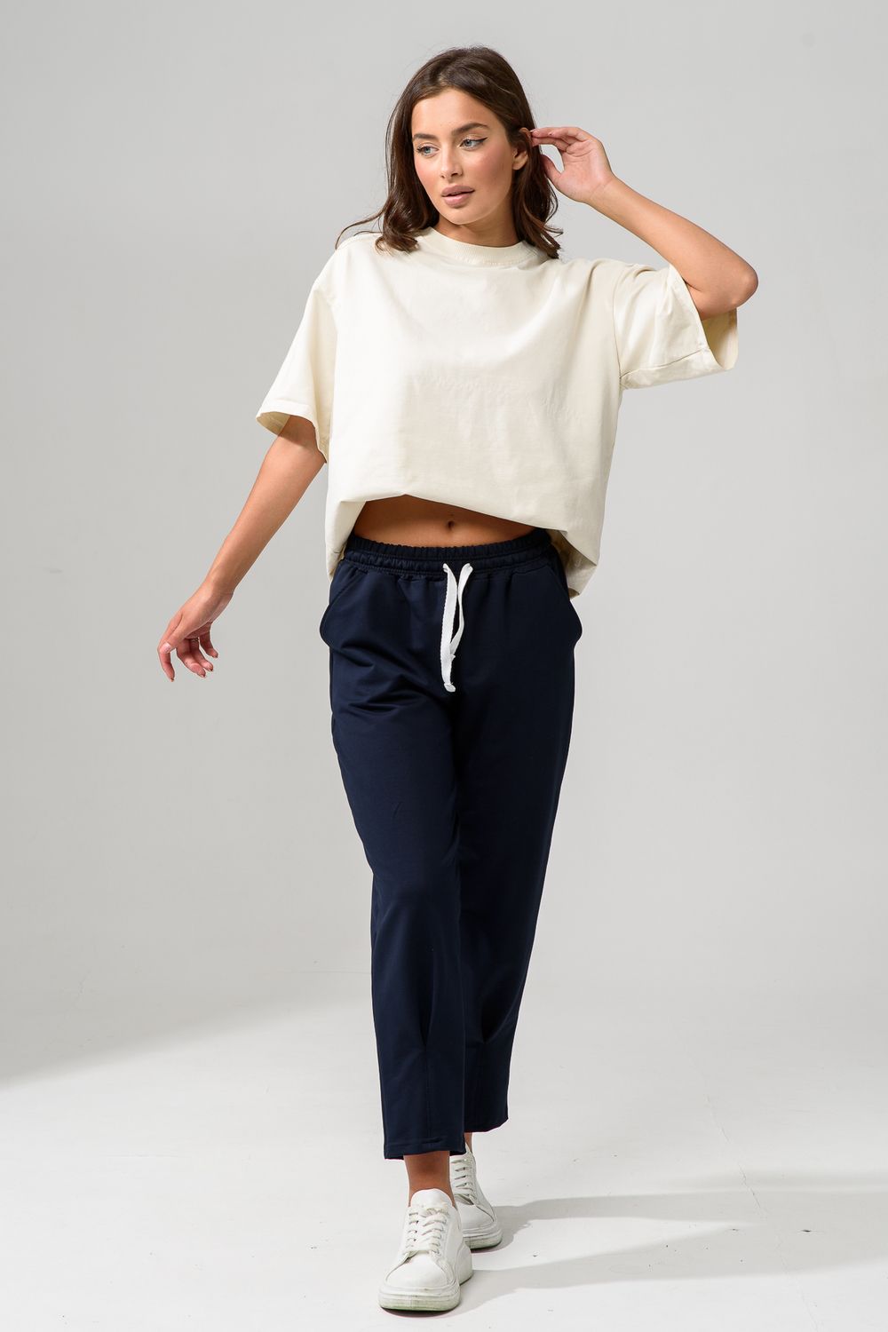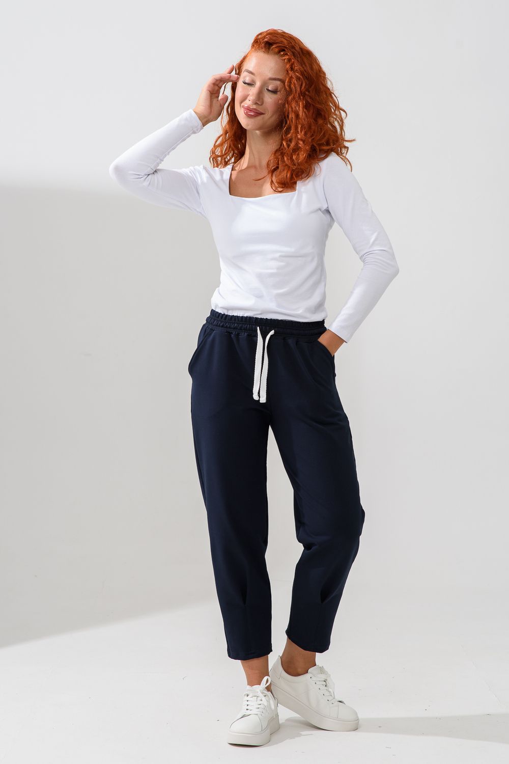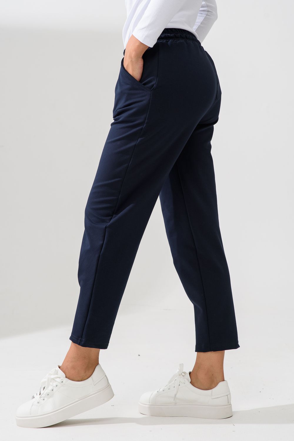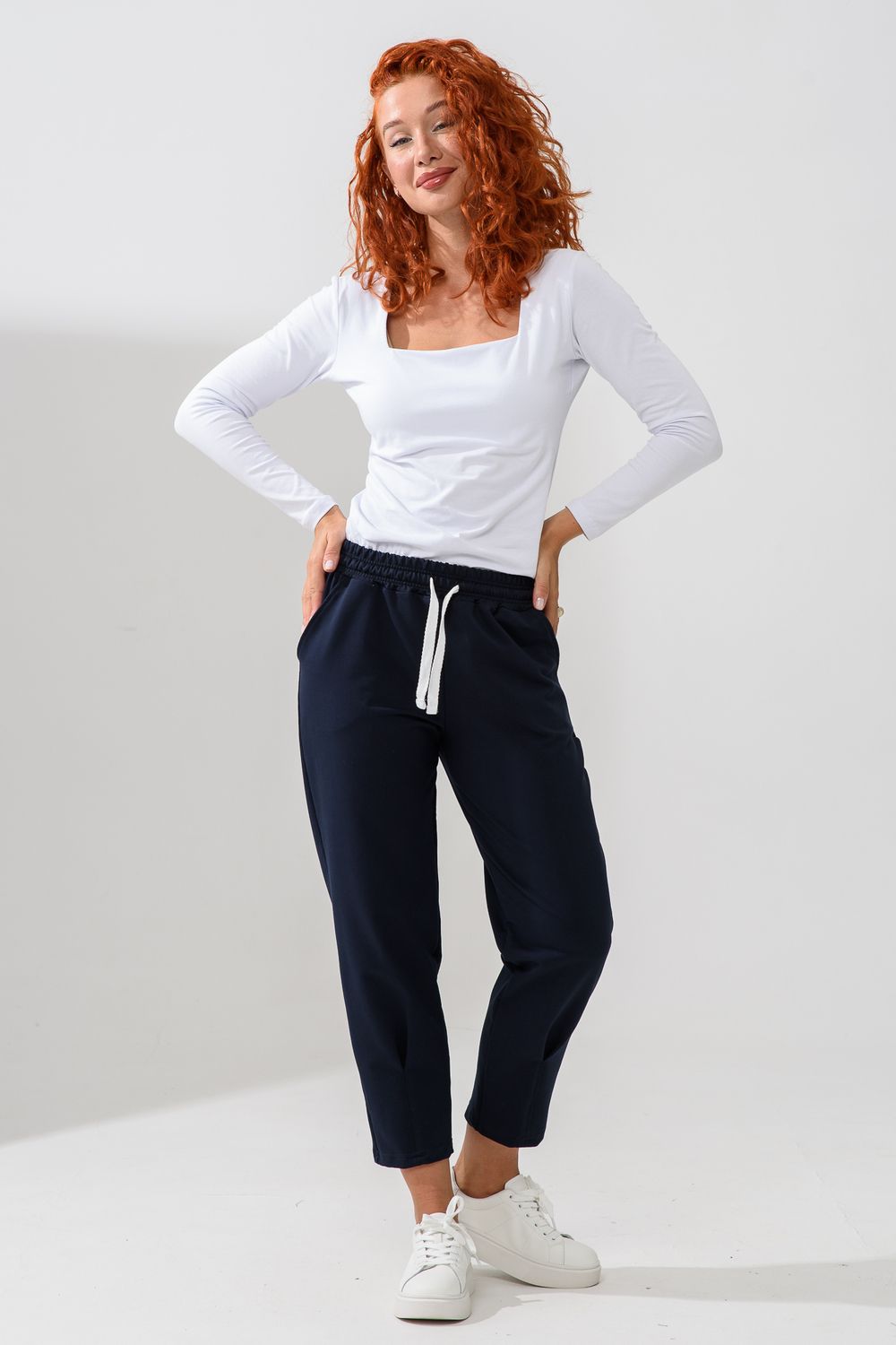 Базовые брюки-бананы это идеальный выбор для повседневного стиля. Укороченные 7/8 на подойдут как для прогулок, спорта и офиса. Брюки на резинке из высококачественного хлопкового материала имеют эластичный пояс завязками и карманы. На высокой посадке, визуально удлиняет ноги и подчеркивают женственный силуэт.