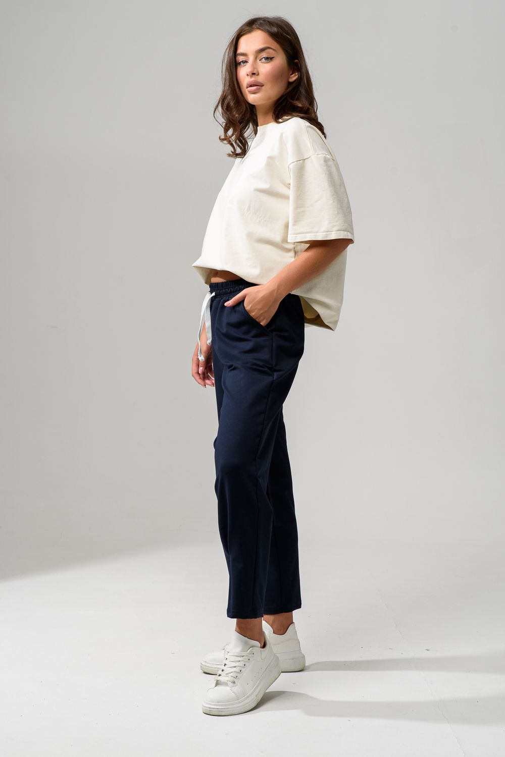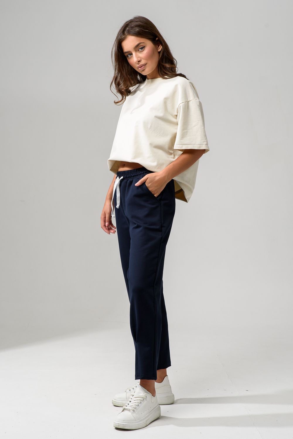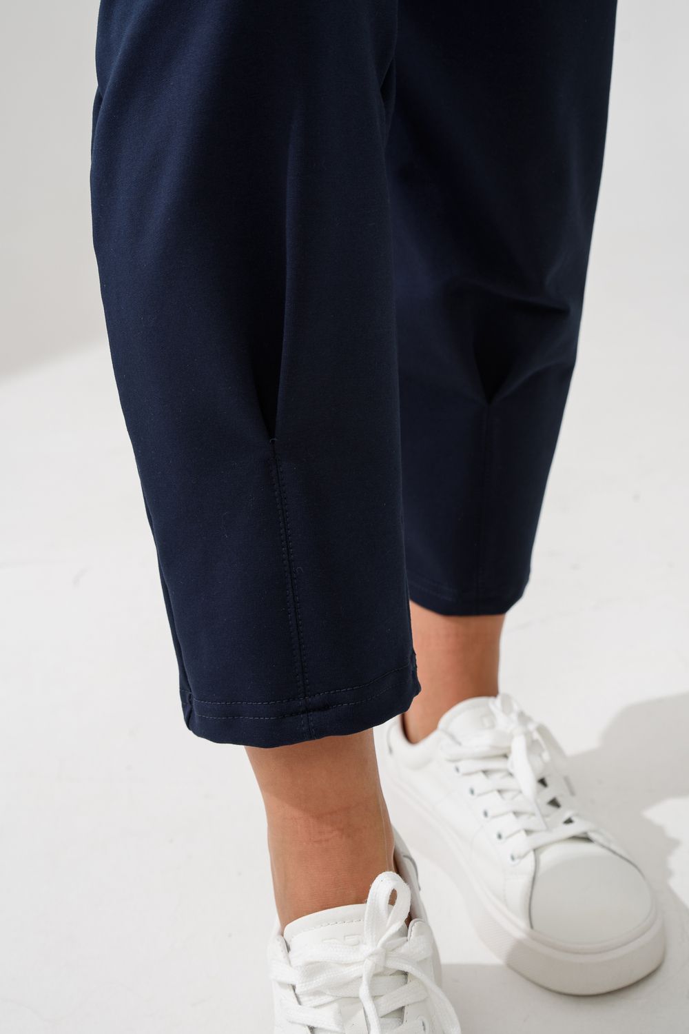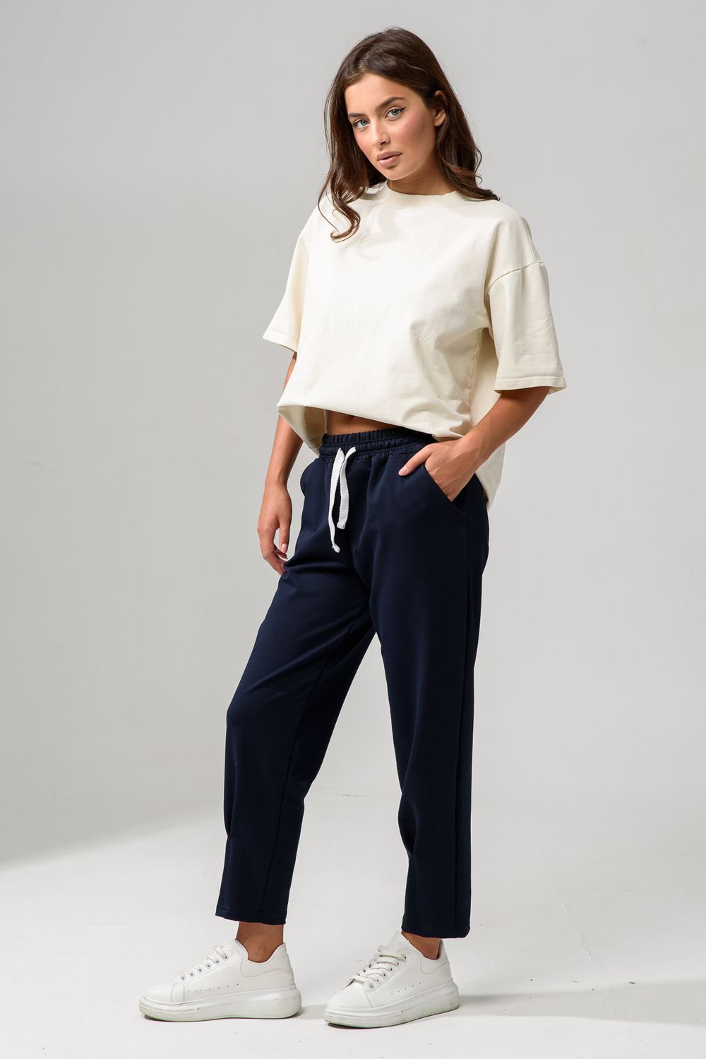 Базовые брюки-бананы это идеальный выбор для повседневного стиля. Укороченные 7/8 на подойдут как для прогулок, спорта и офиса. Брюки на резинке из высококачественного хлопкового материала имеют эластичный пояс завязками и карманы. На высокой посадке, визуально удлиняет ноги и подчеркивают женственный силуэт.