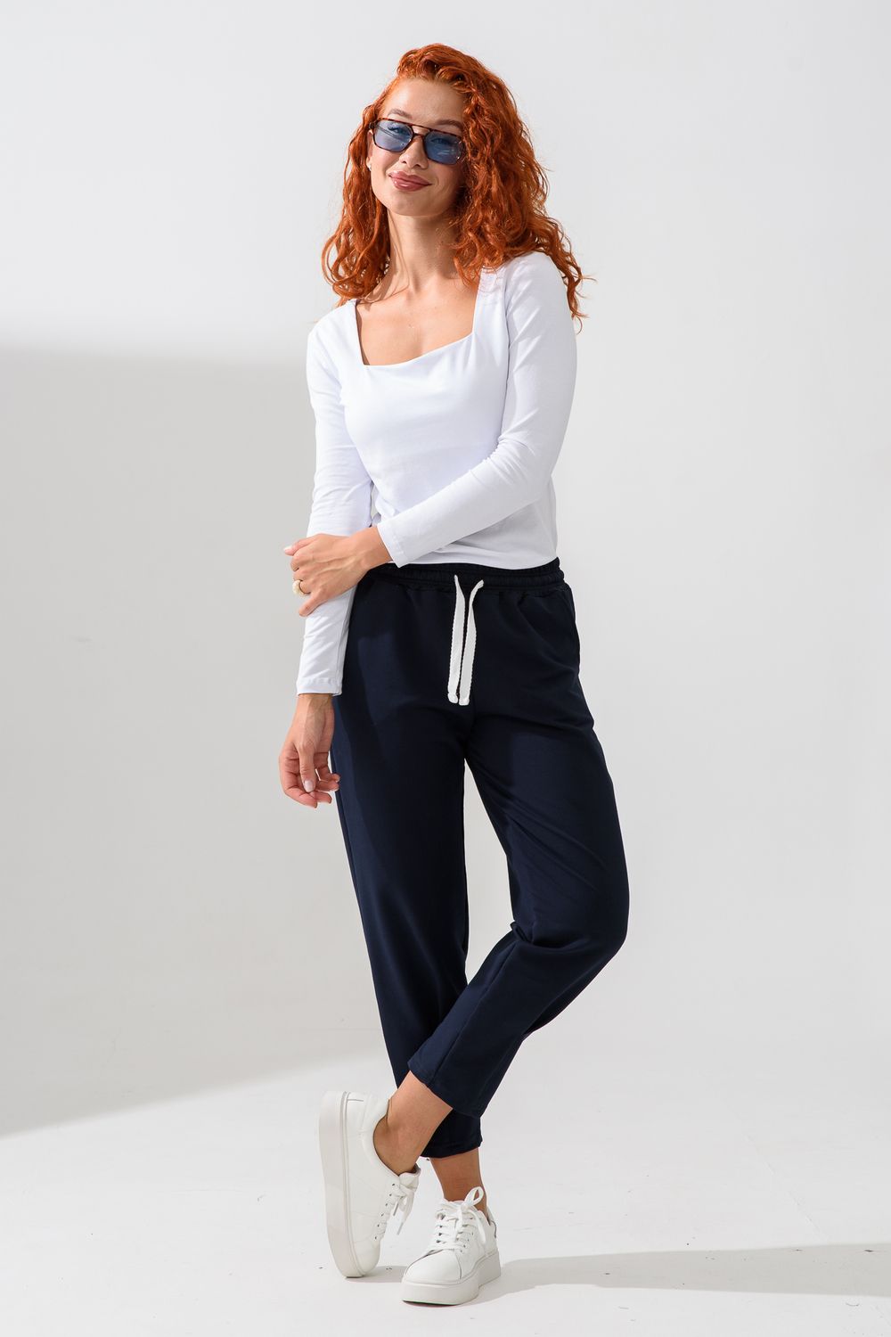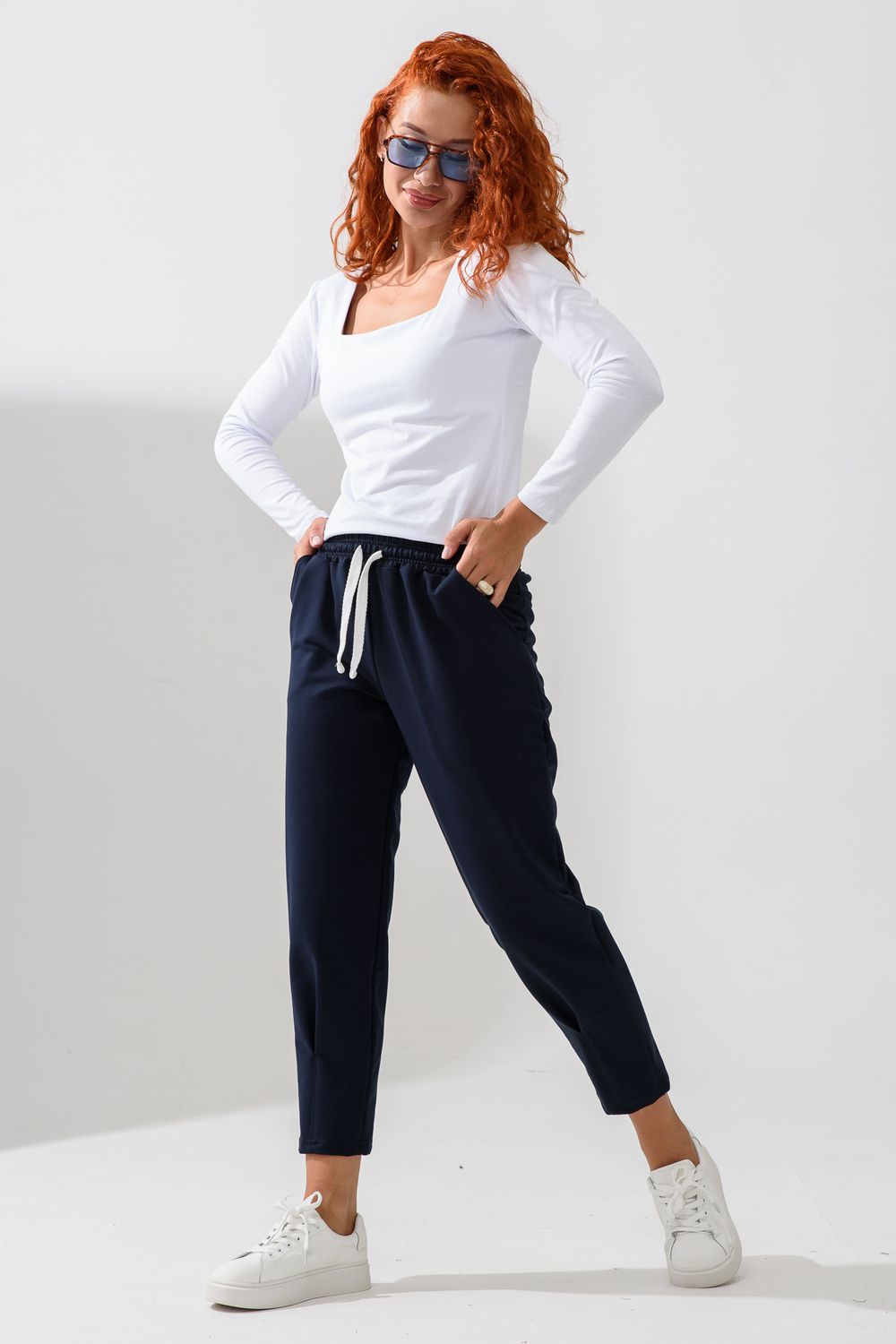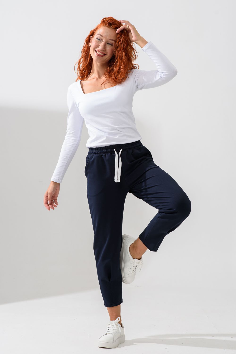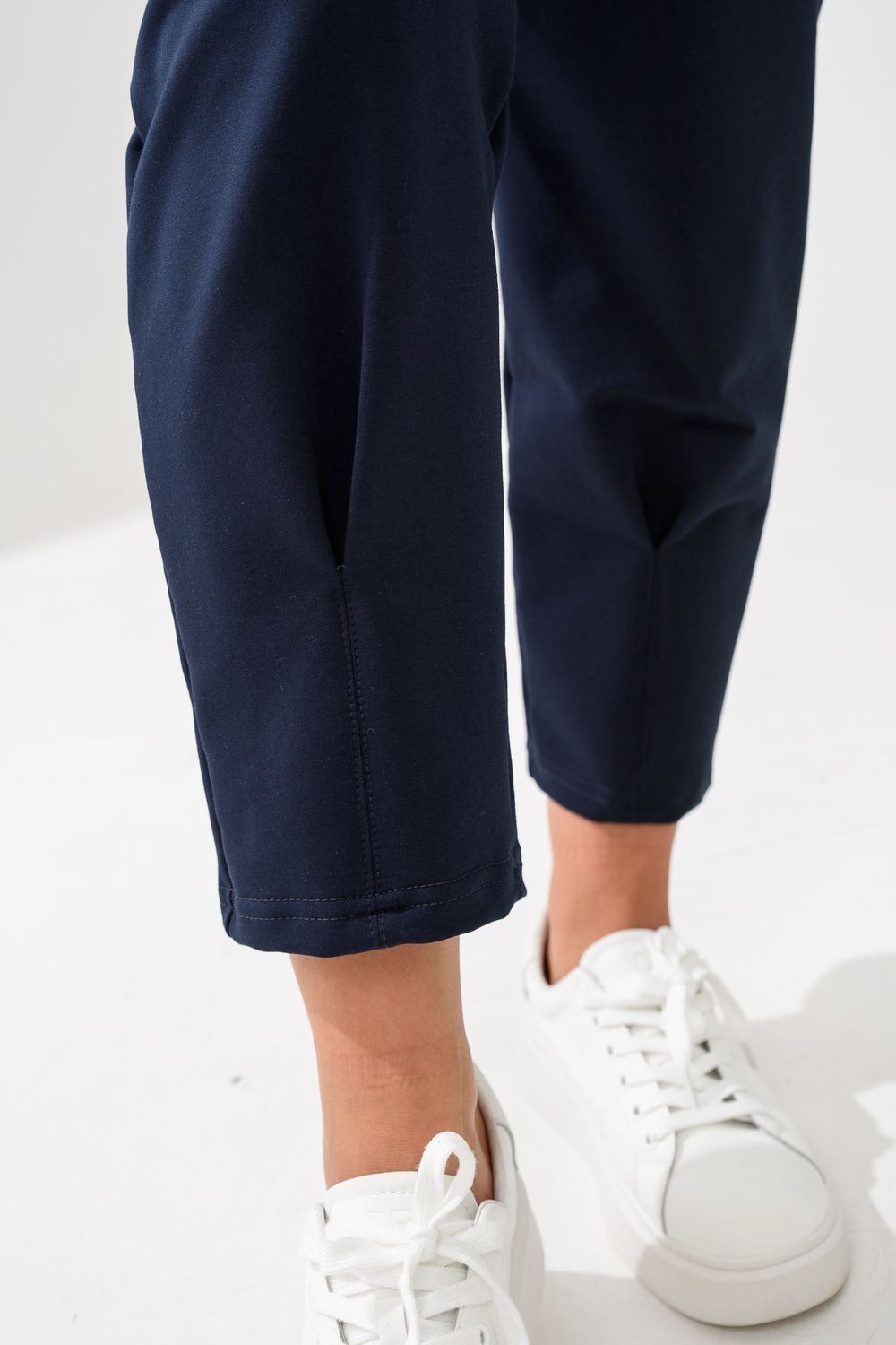 Базовые брюки-бананы это идеальный выбор для повседневного стиля. Укороченные 7/8 на подойдут как для прогулок, спорта и офиса. Брюки на резинке из высококачественного хлопкового материала имеют эластичный пояс завязками и карманы. На высокой посадке, визуально удлиняет ноги и подчеркивают женственный силуэт.