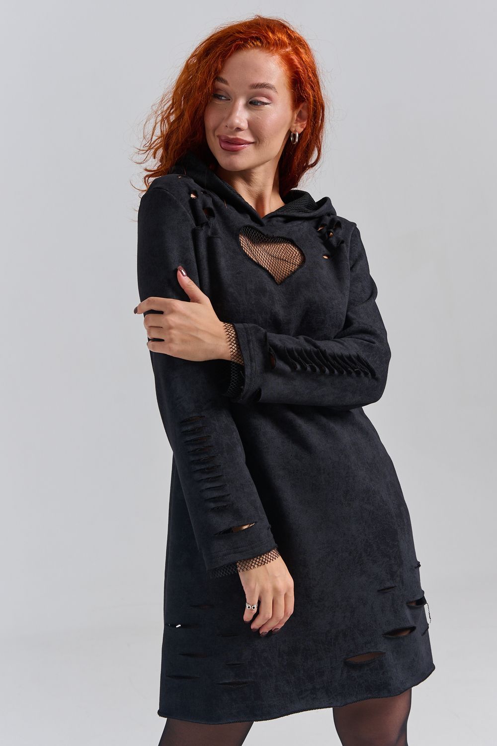 В спортивном платье со рваными краями вы будите в центре внимания. Дырявая одежда - новый тренд нашего времени. Модный в этом сезоне узор из спущенных петель и дырок на платье сделает образ более дерзким и хулиганистым, добавит непринужденности и легкой небрежности.