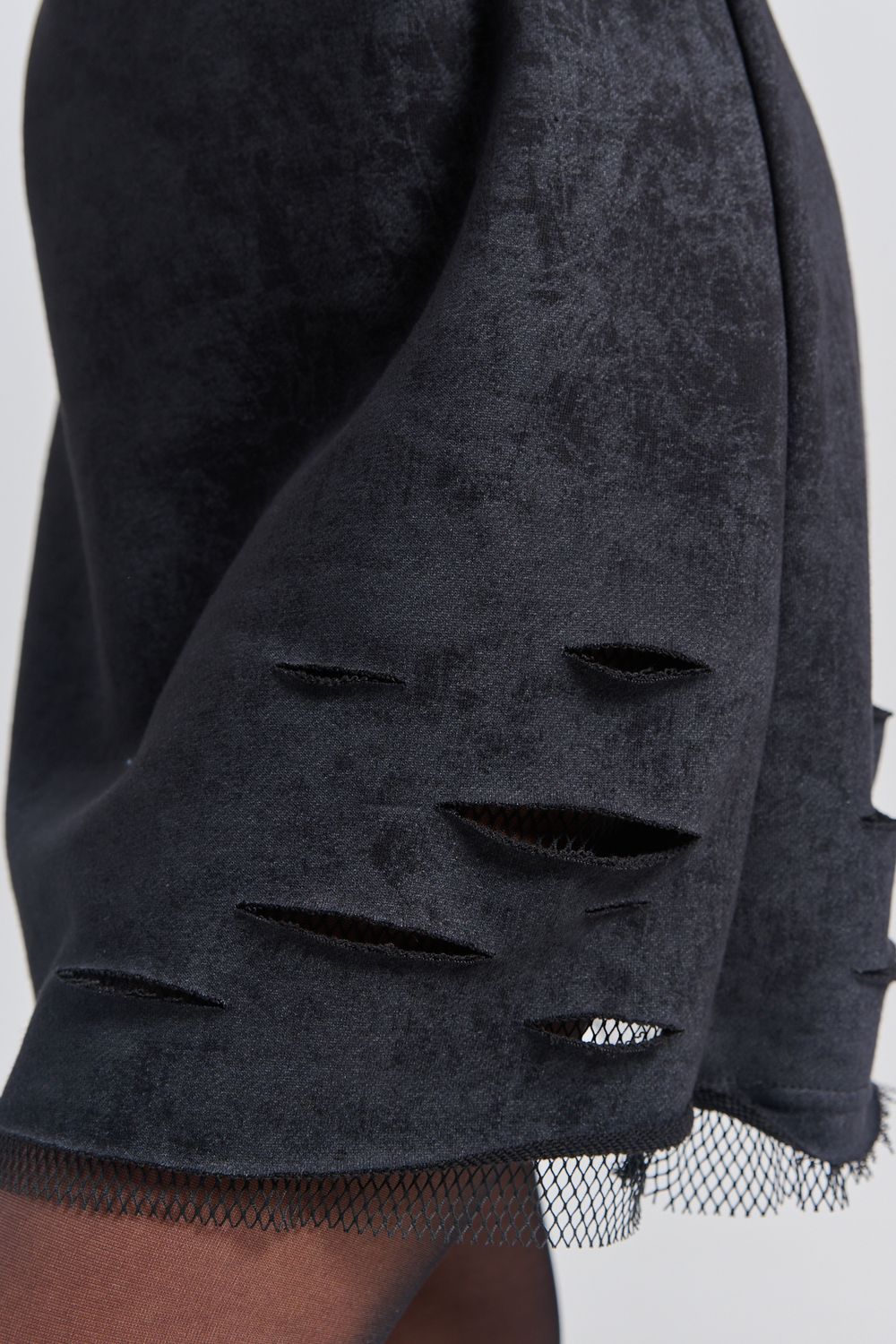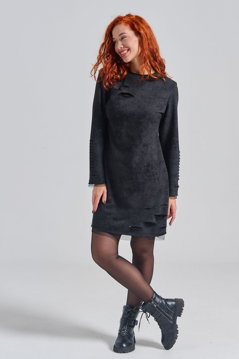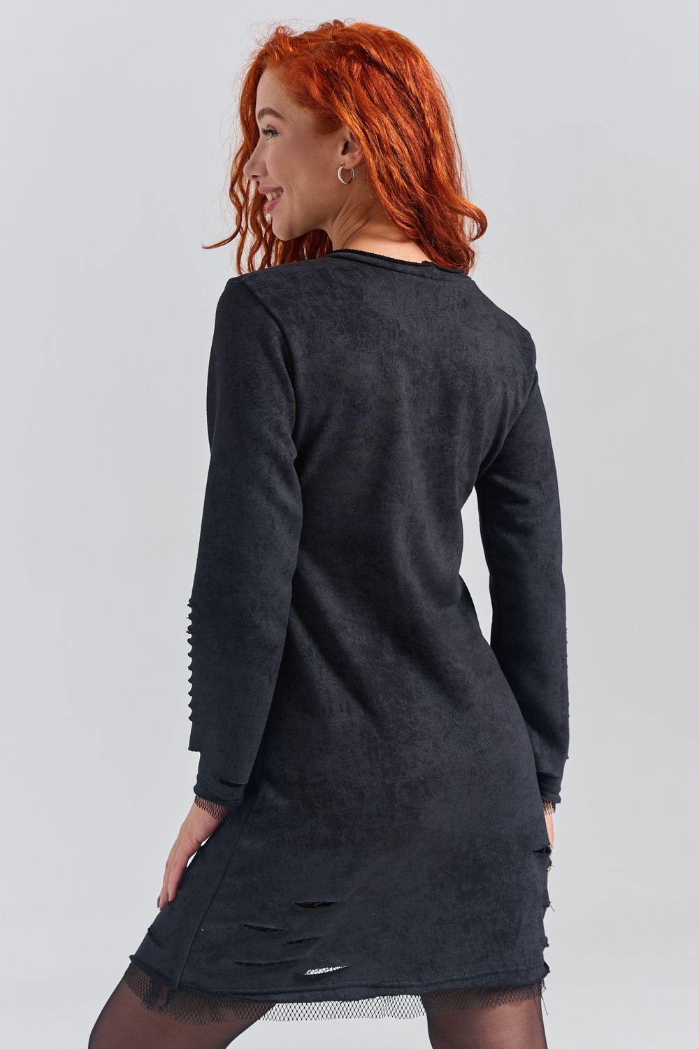 Рваное трикотажное платье с декоративными дырками пошито для создания гранж образов, концертов и вечеринок. Выбирайте это стильное платье для любых повседневных случаев: учебы, работы или отдыха с друзьями.