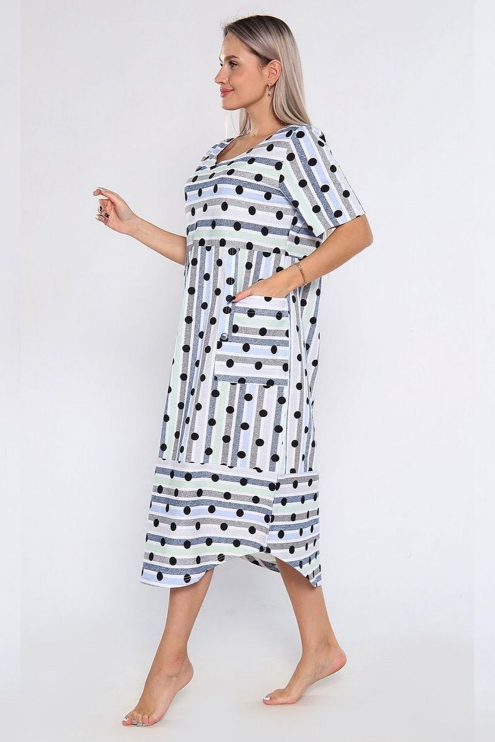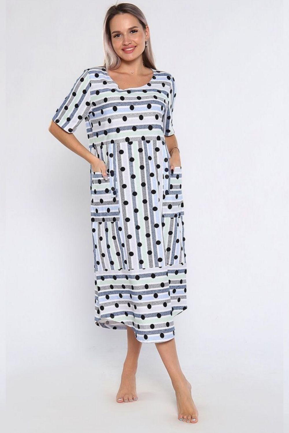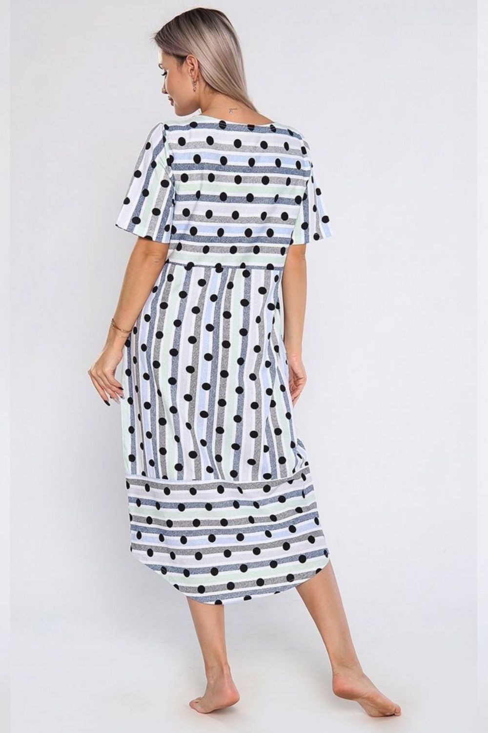 Геометрический принт с горошком действительно вечно актуален и может внести в outfit нотки игривости. Сочетание с различной обувью — сандалиями для неформального образа или с кроссовками для более спортивного стиля — позволяет создать разные образы в зависимости от настроения. Платье женскеое "Руся" действительно универсально и может стать основой для множества летних луков!