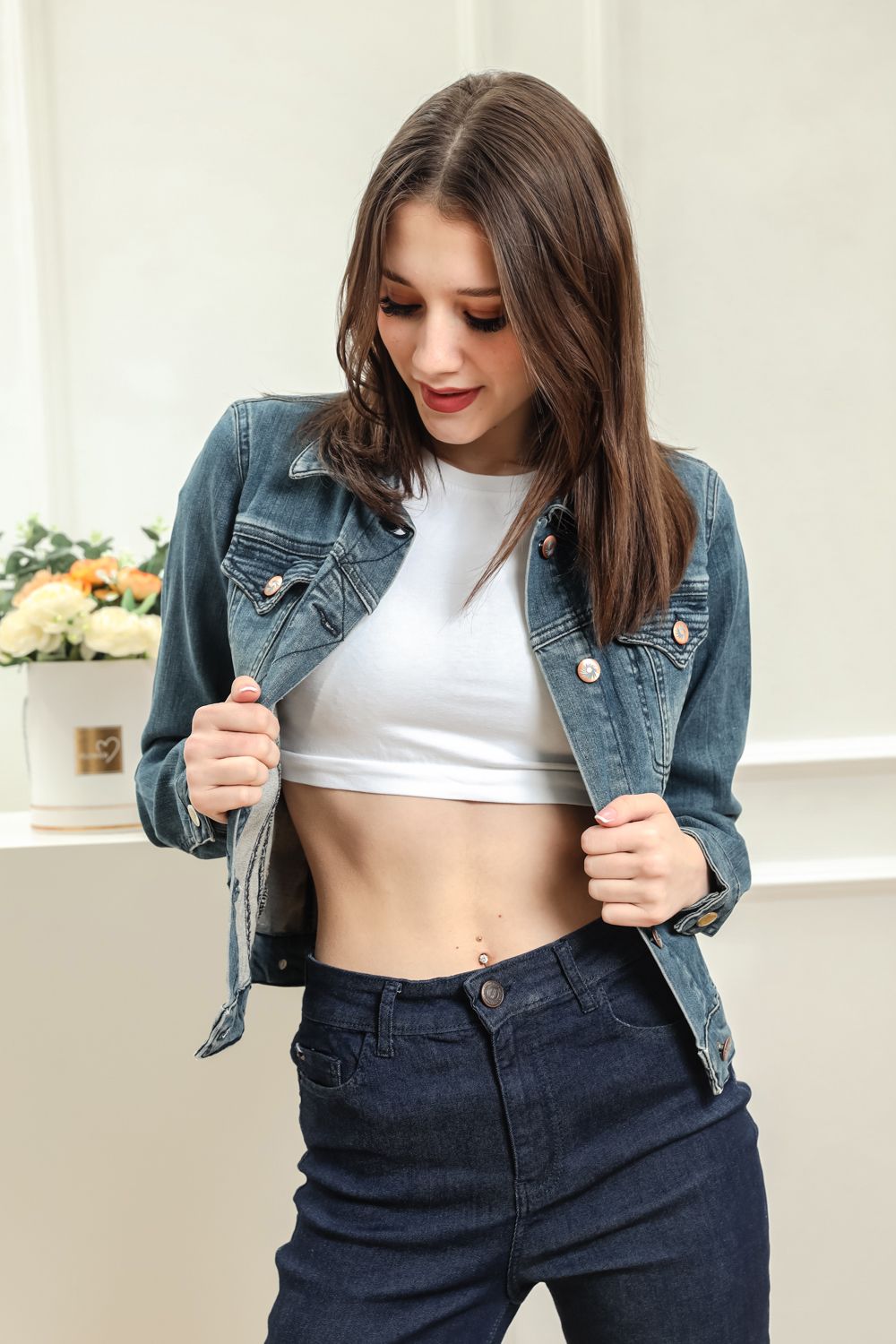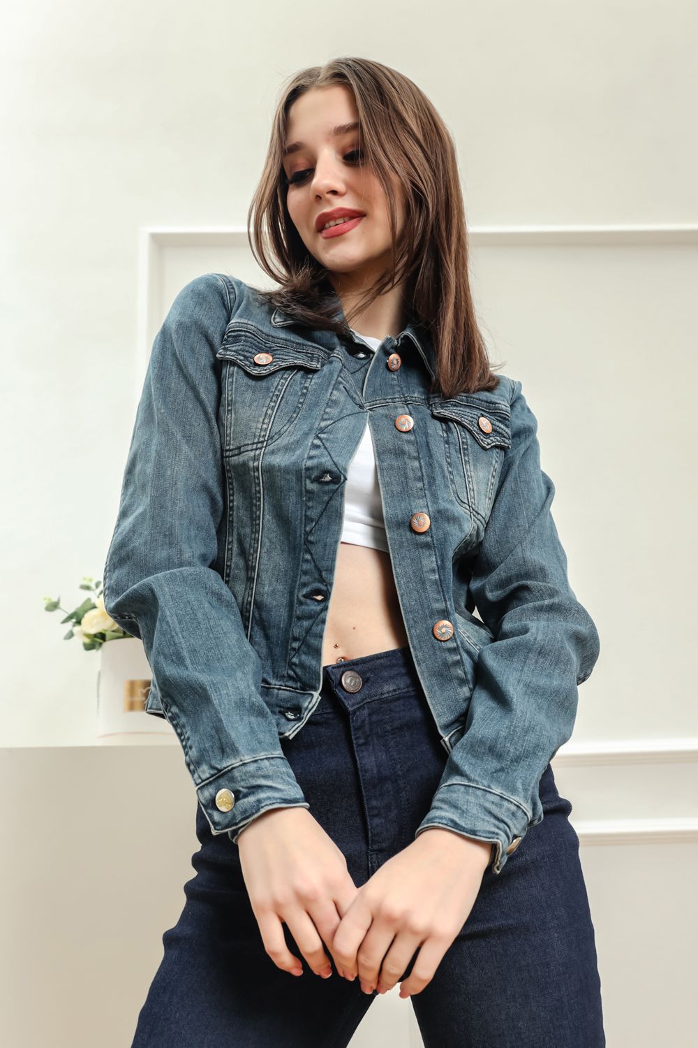 Женская джинсовка из плотной ткани. Стильная и не выходящая из моды модель.