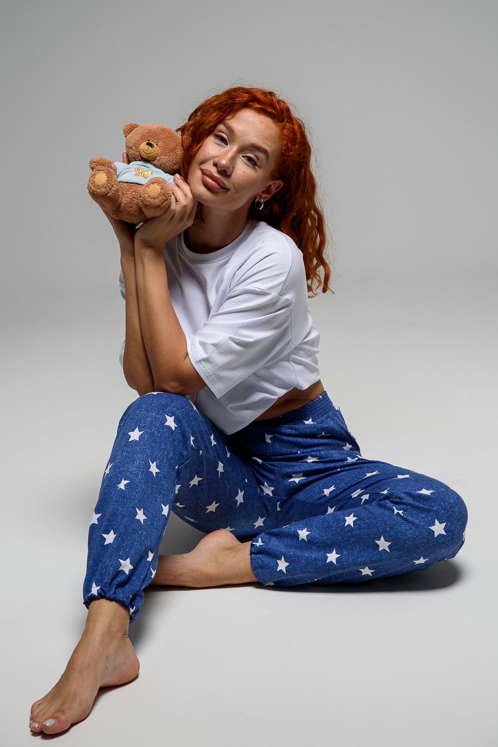 Женские яркие брючки из очень мягкого футера, с высокой посадкой, прямого, полуприлегающего кроя. Пояс на резинке со сборкой. Карманы в боковых швах. Низ на тонкой резиночке.