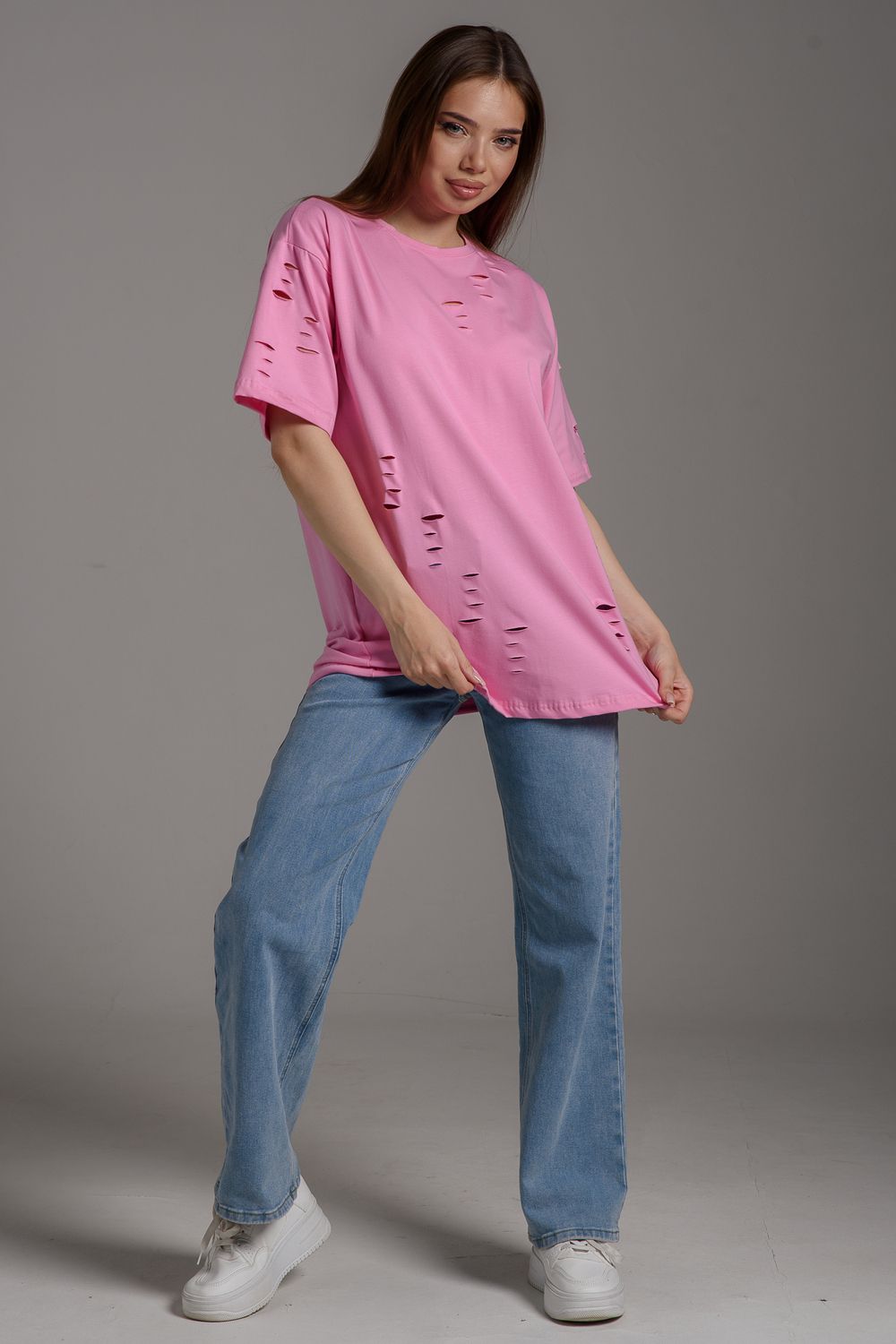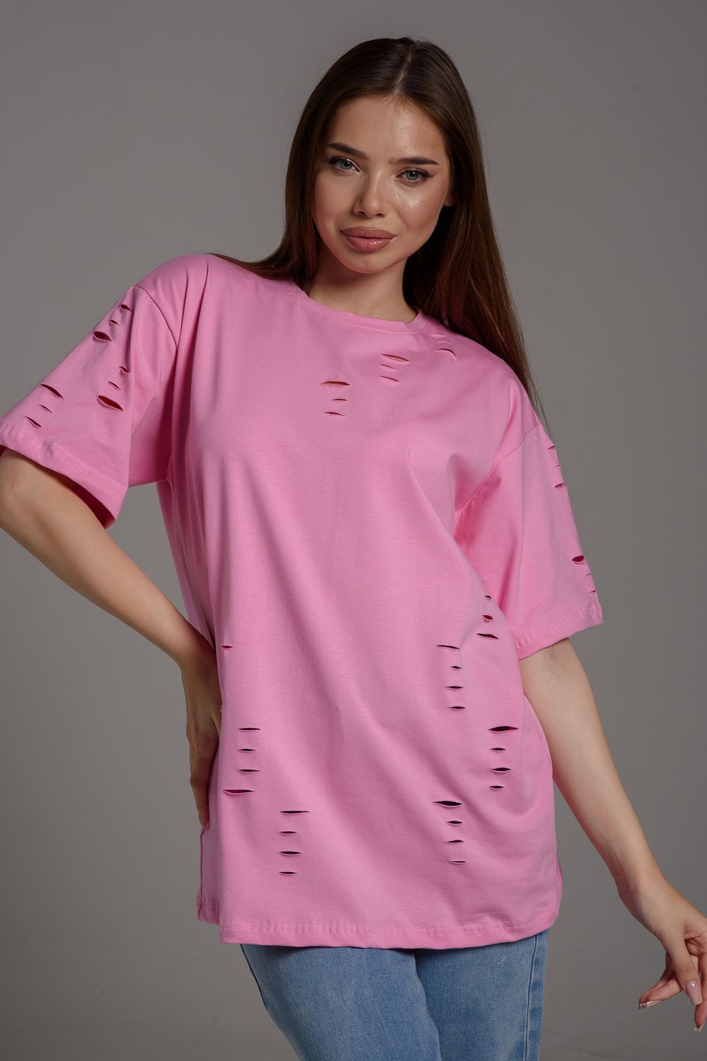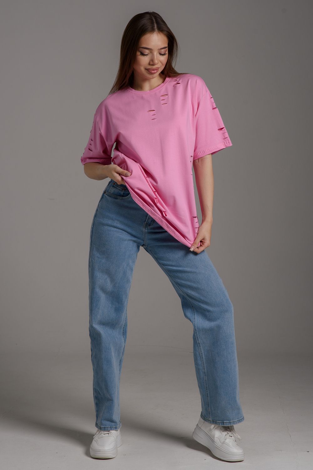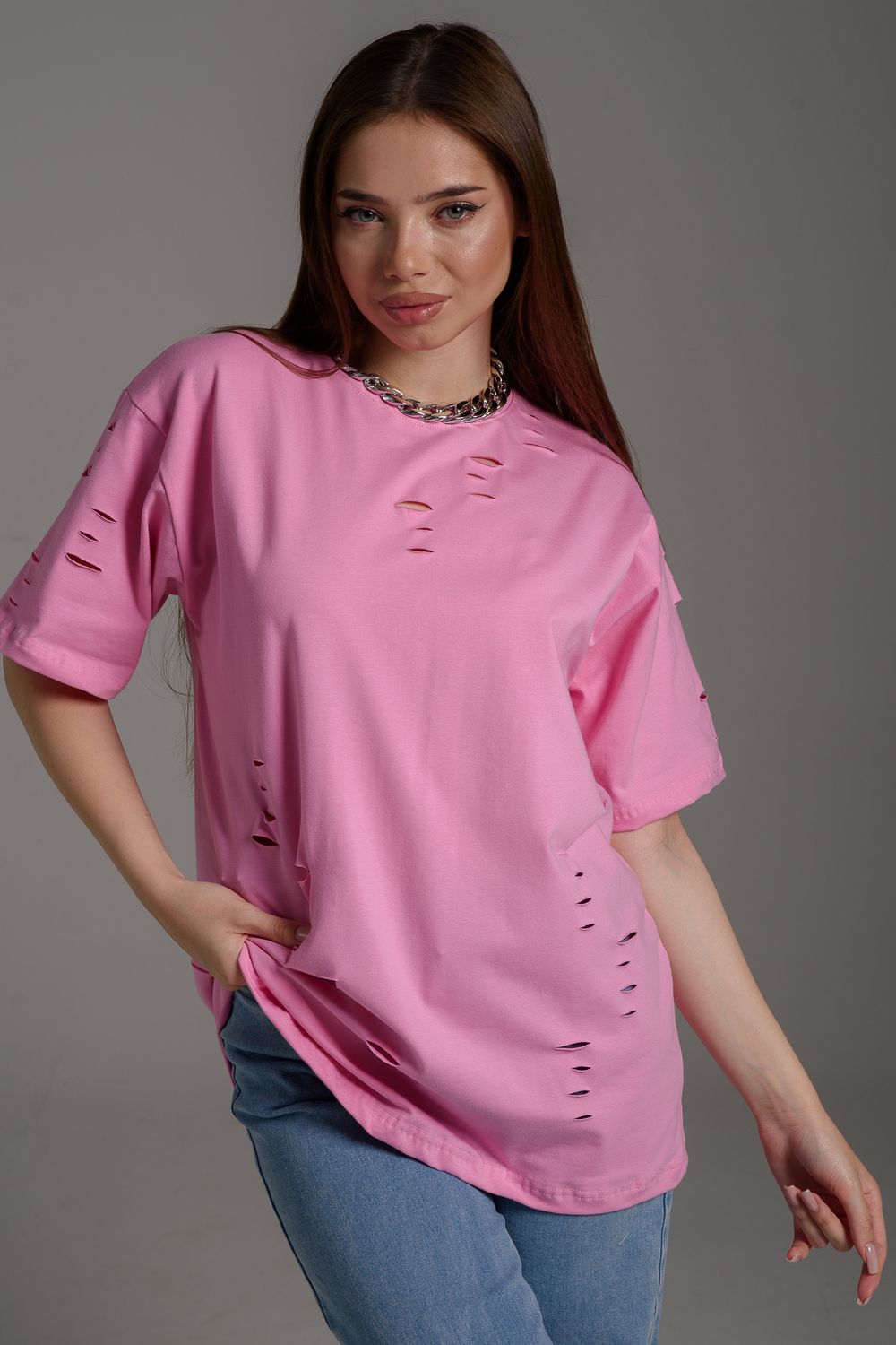 Красивая и необычная хлопковая футболка дополнена оригинальными разрезами. Натуральный состав трикотажа позволяет коже дышать и подарит ощущение комфорта. Идеальный выбор для создания модных и ярких образов!