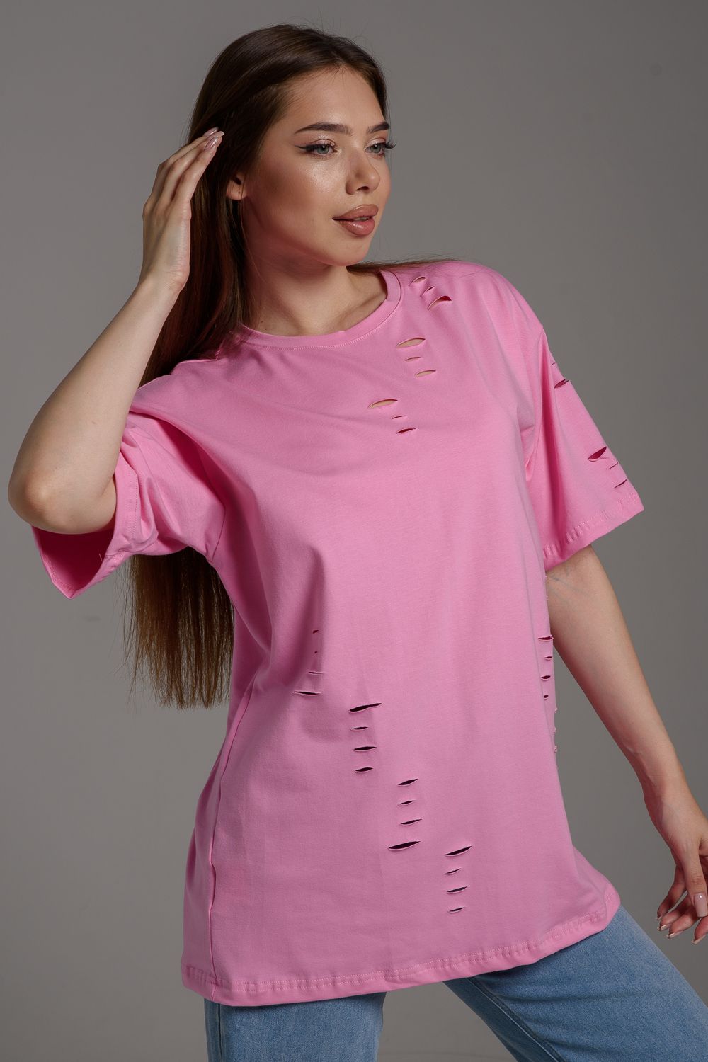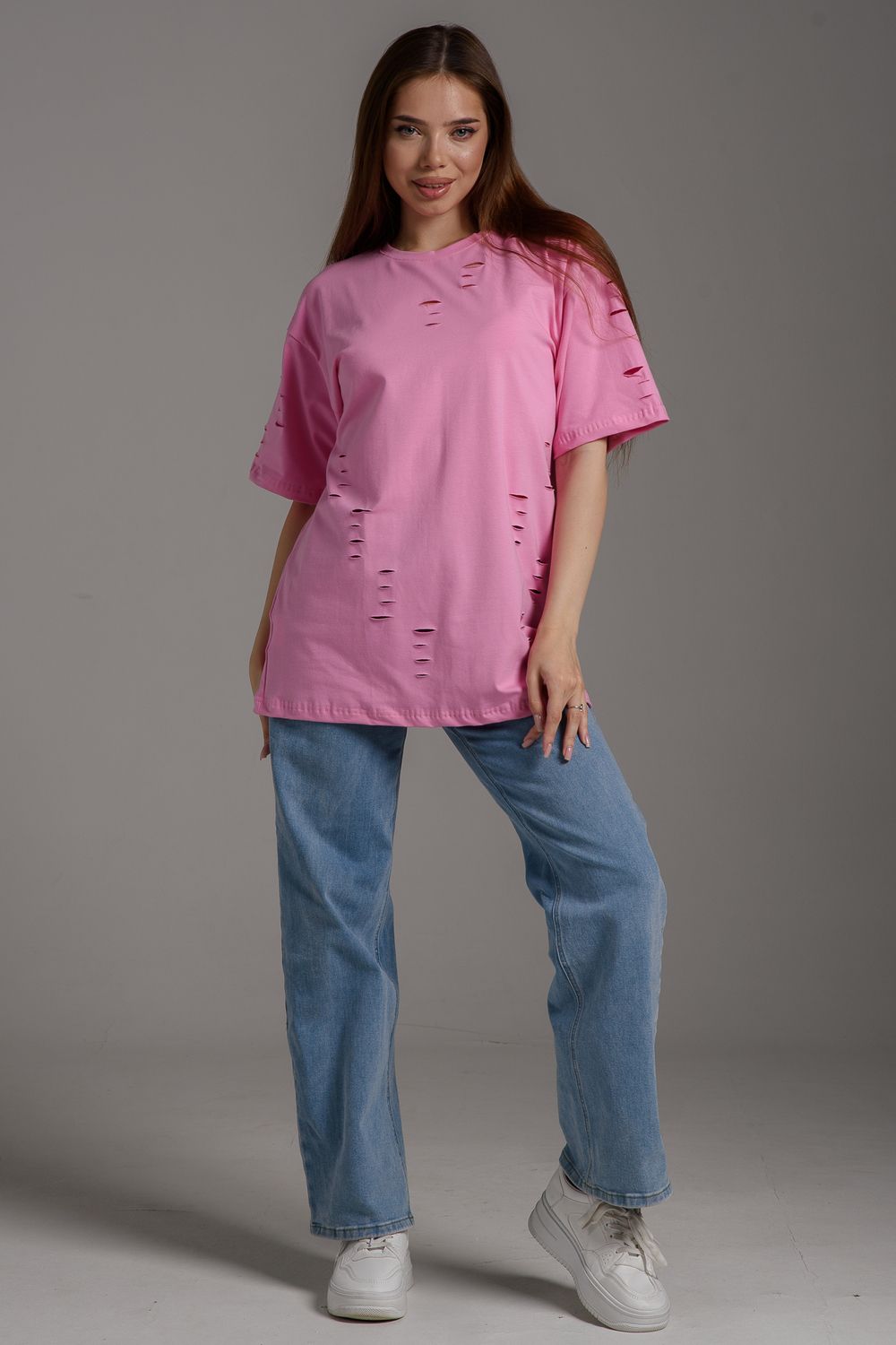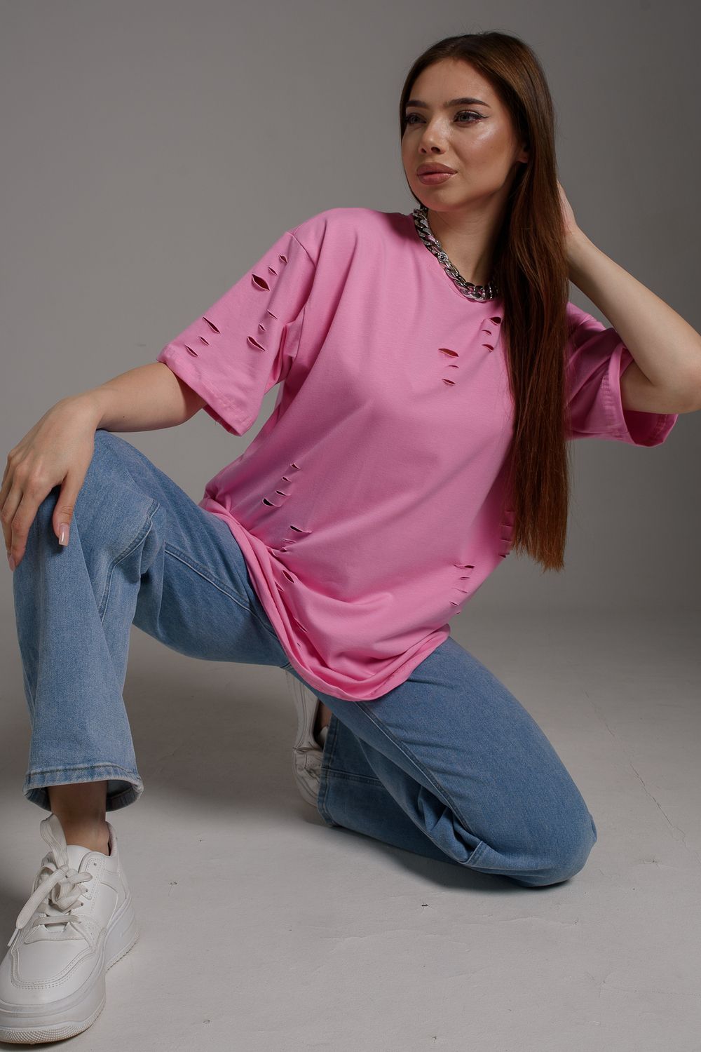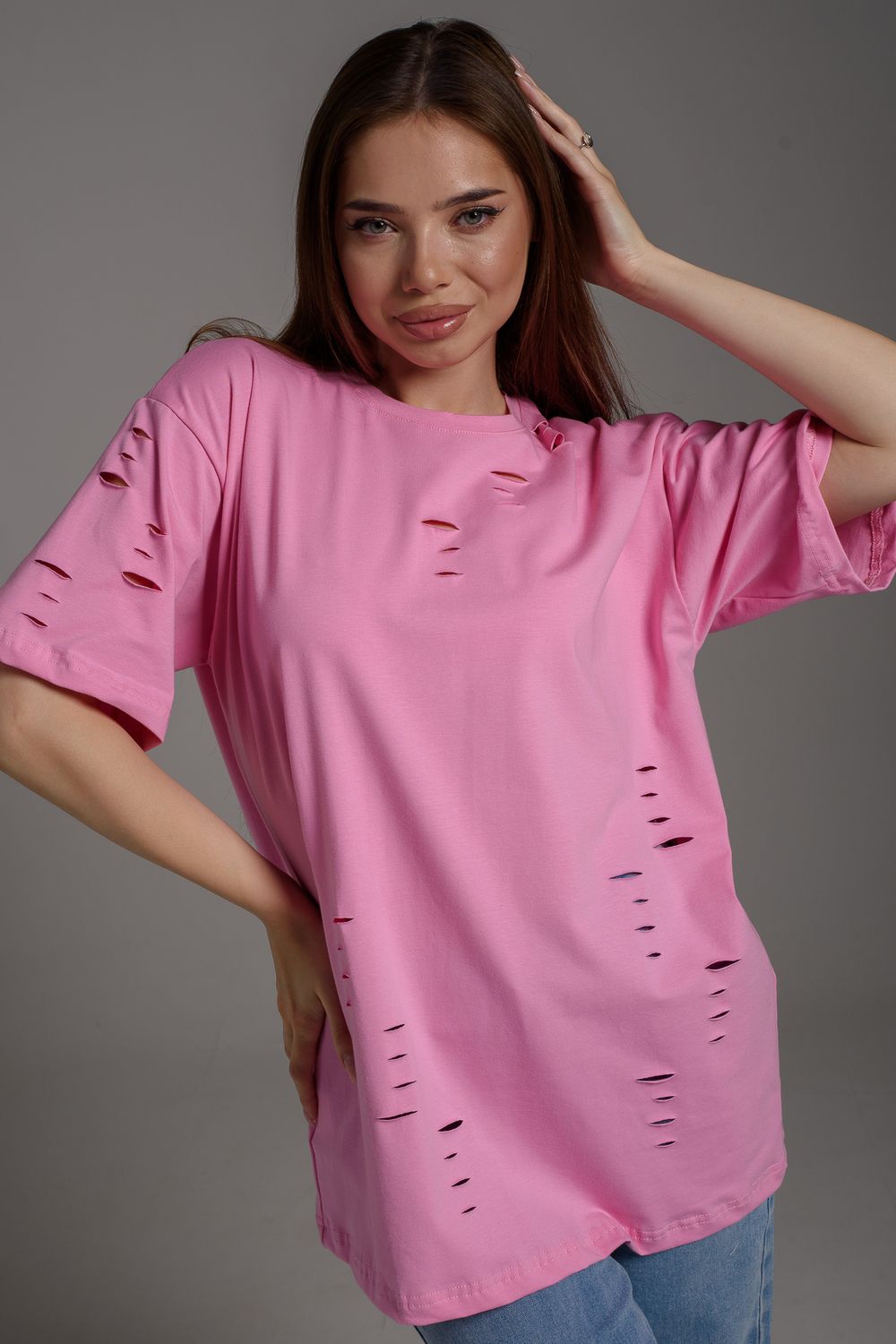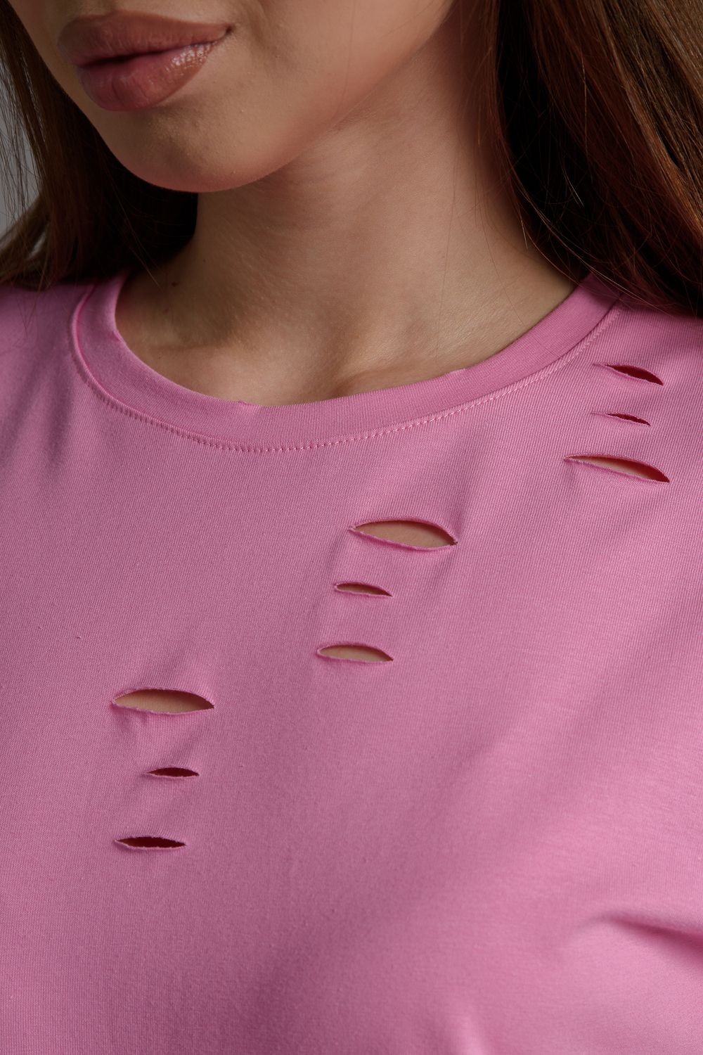 Красивая и необычная хлопковая футболка дополнена оригинальными разрезами. Натуральный состав трикотажа позволяет коже дышать и подарит ощущение комфорта. Идеальный выбор для создания модных и ярких образов!