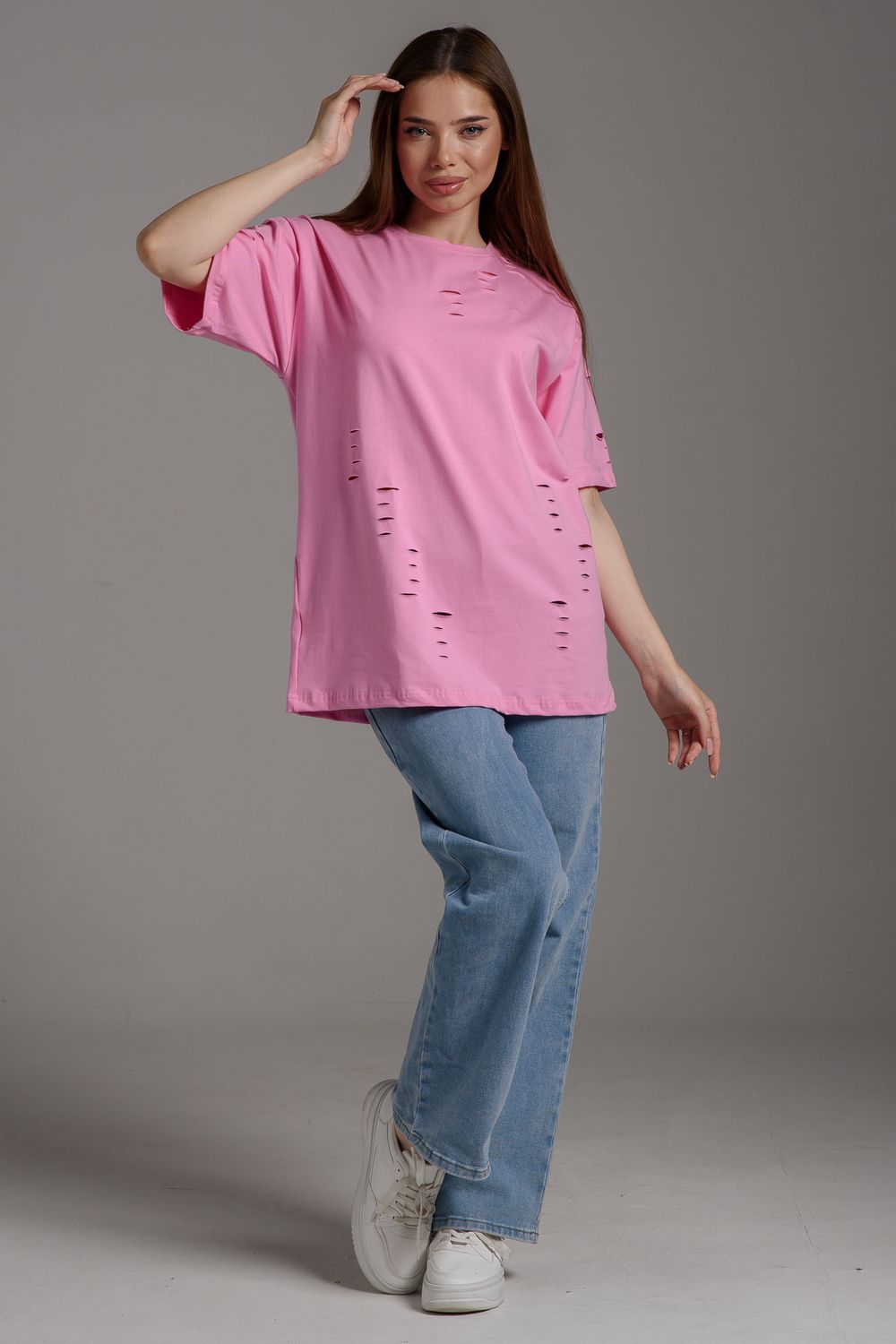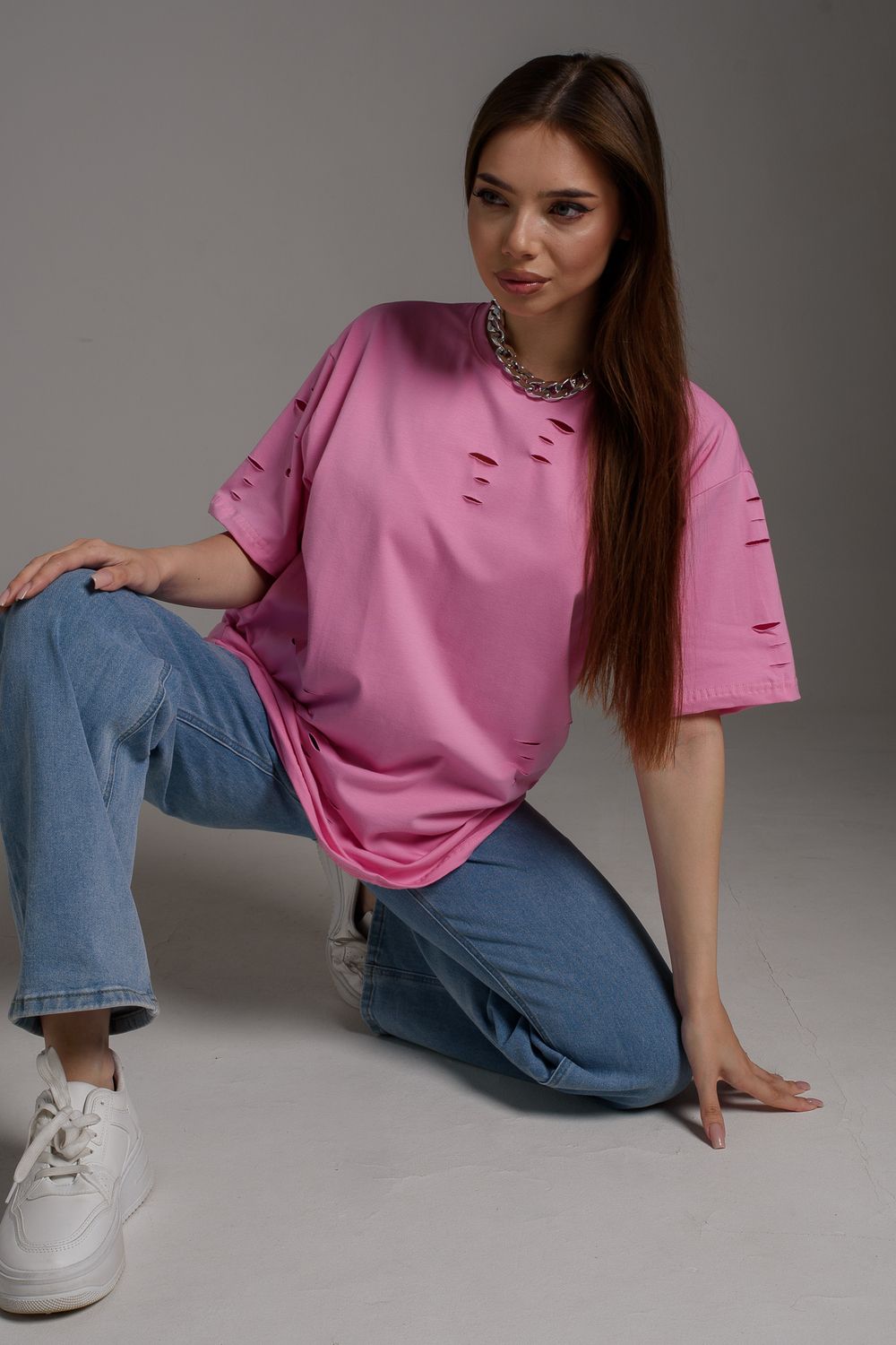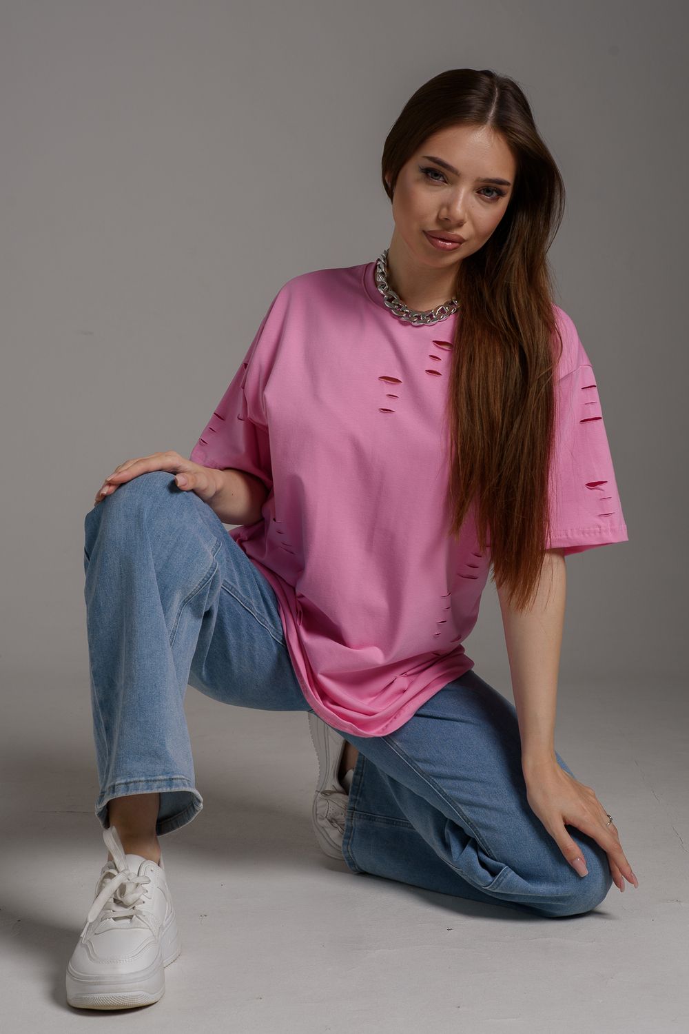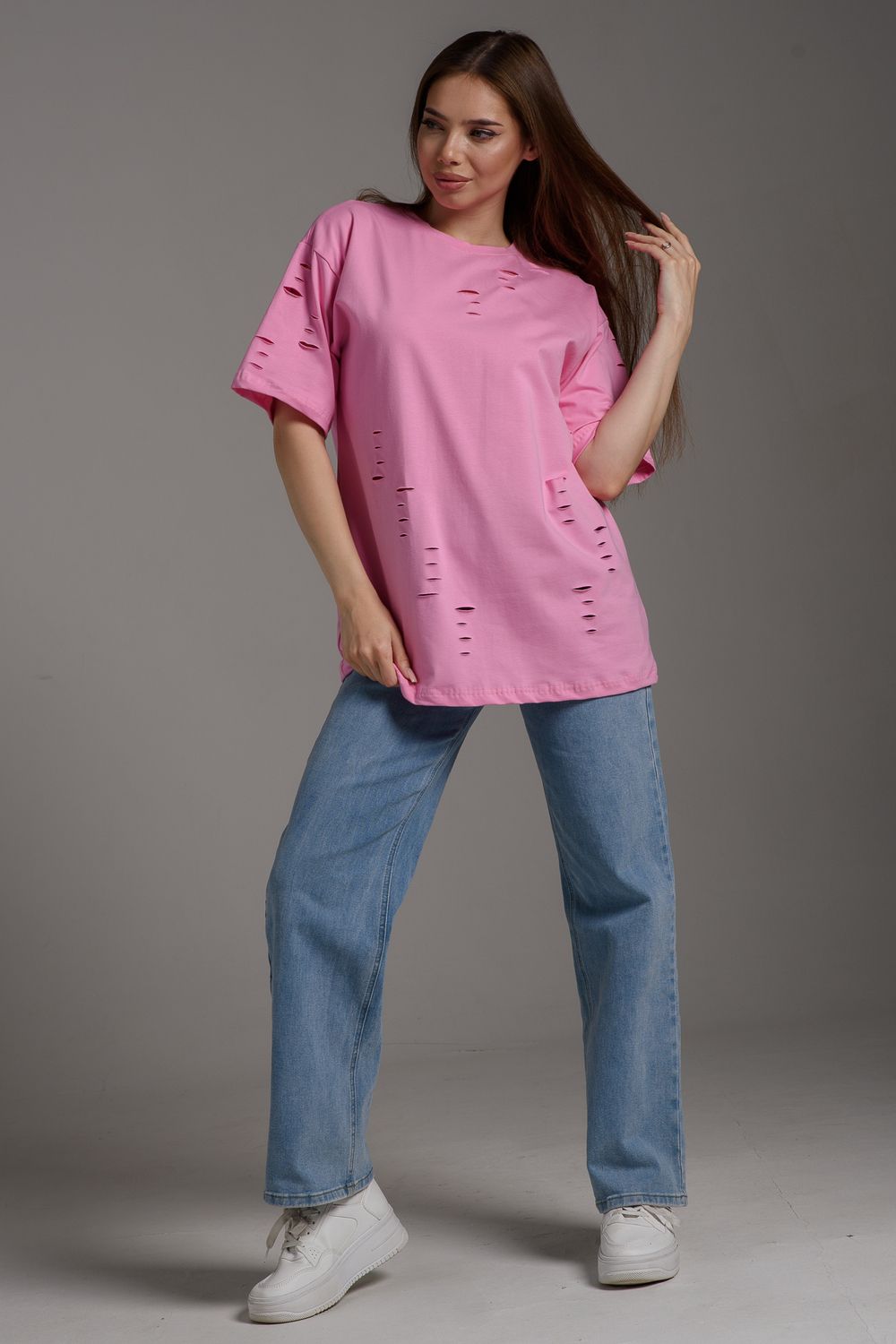 Красивая и необычная хлопковая футболка дополнена оригинальными разрезами. Натуральный состав трикотажа позволяет коже дышать и подарит ощущение комфорта. Идеальный выбор для создания модных и ярких образов!