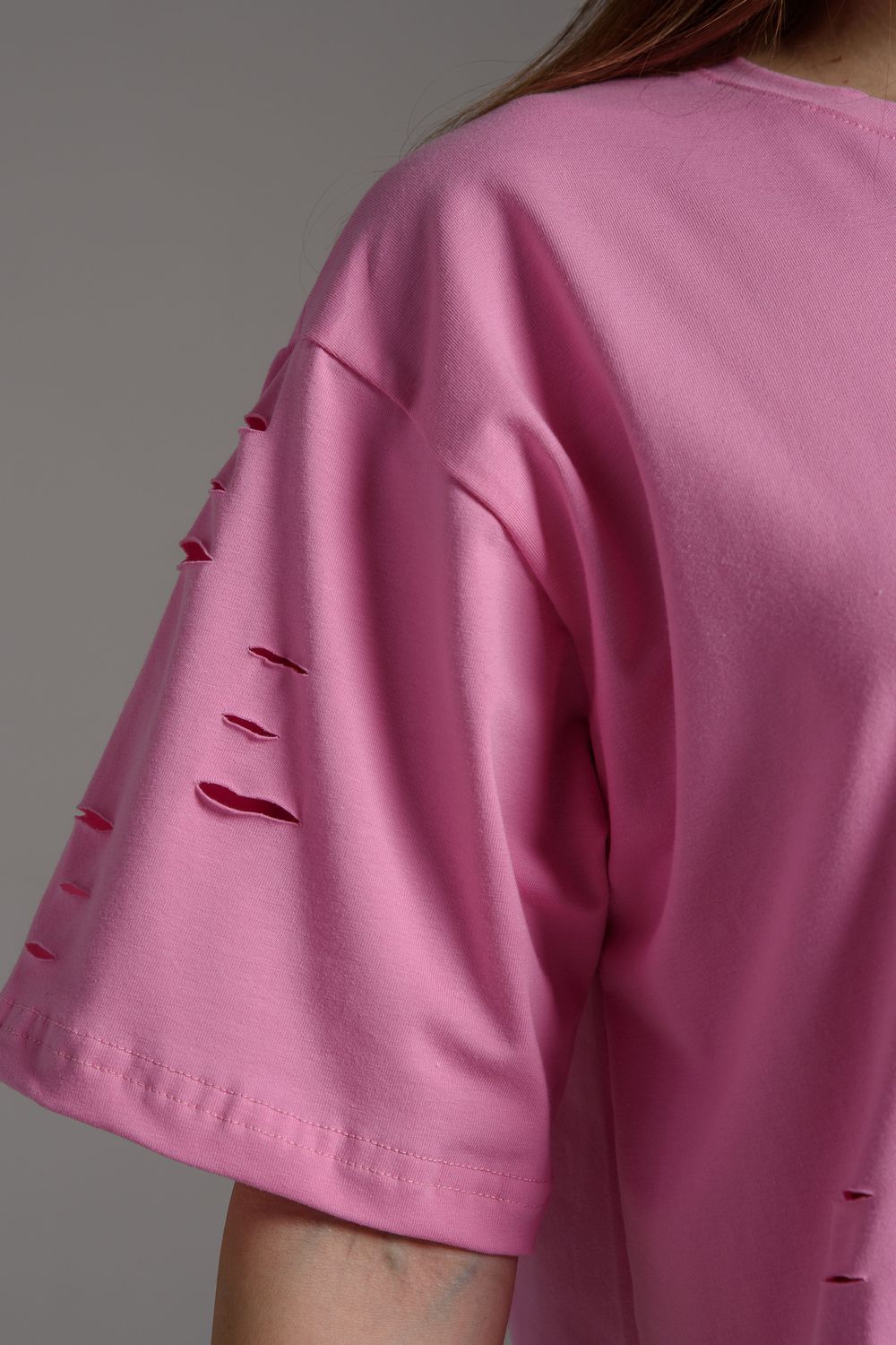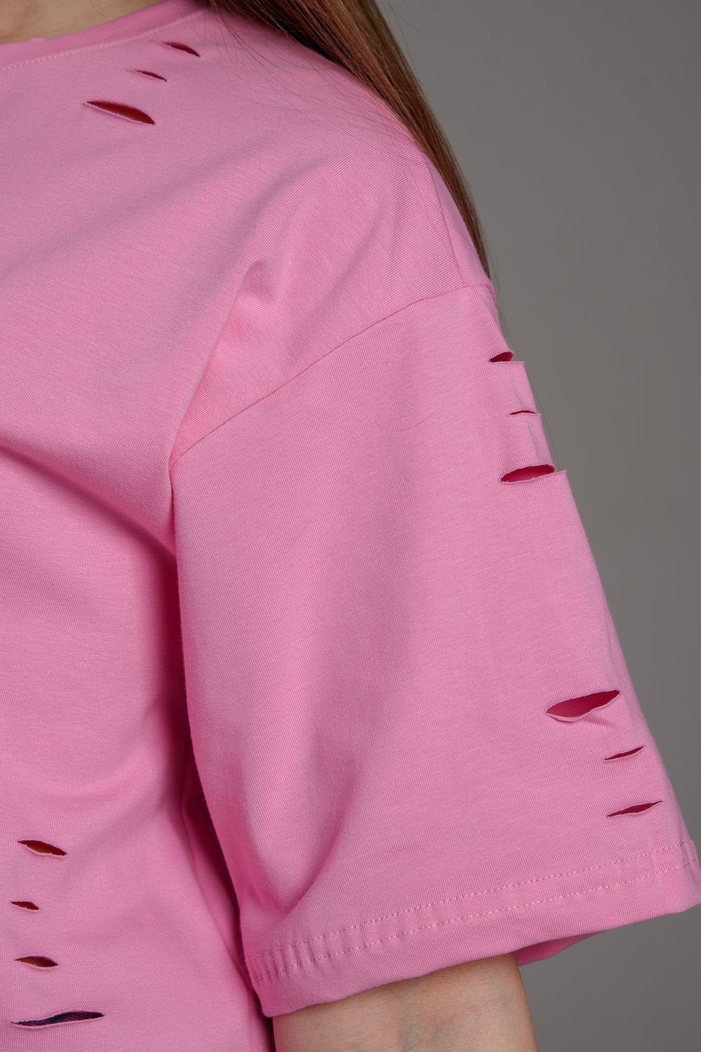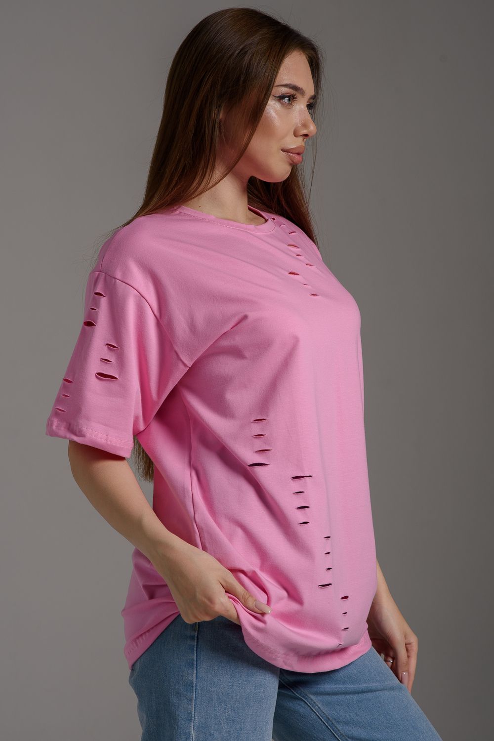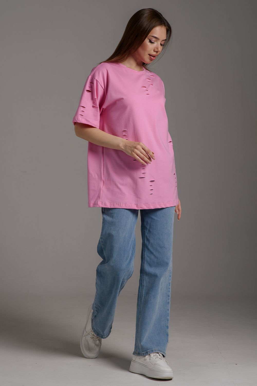 Красивая и необычная хлопковая футболка дополнена оригинальными разрезами. Натуральный состав трикотажа позволяет коже дышать и подарит ощущение комфорта. Идеальный выбор для создания модных и ярких образов!