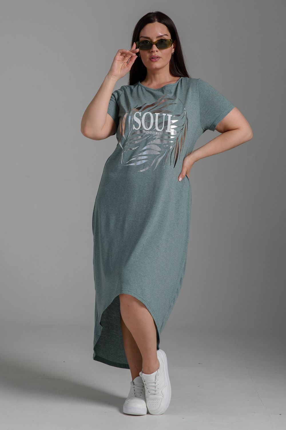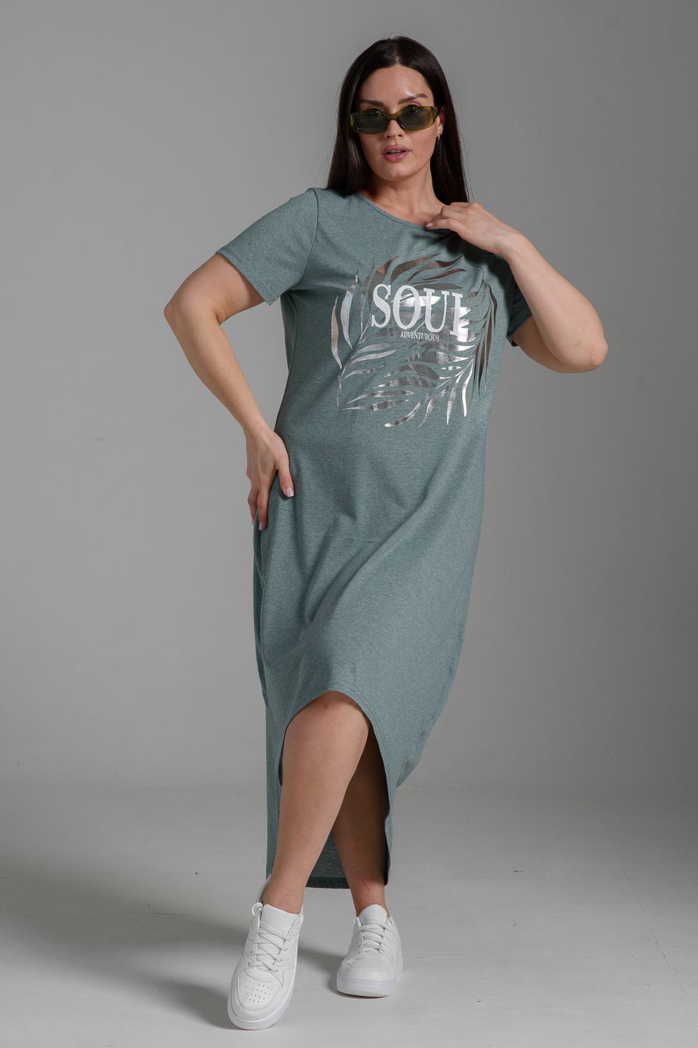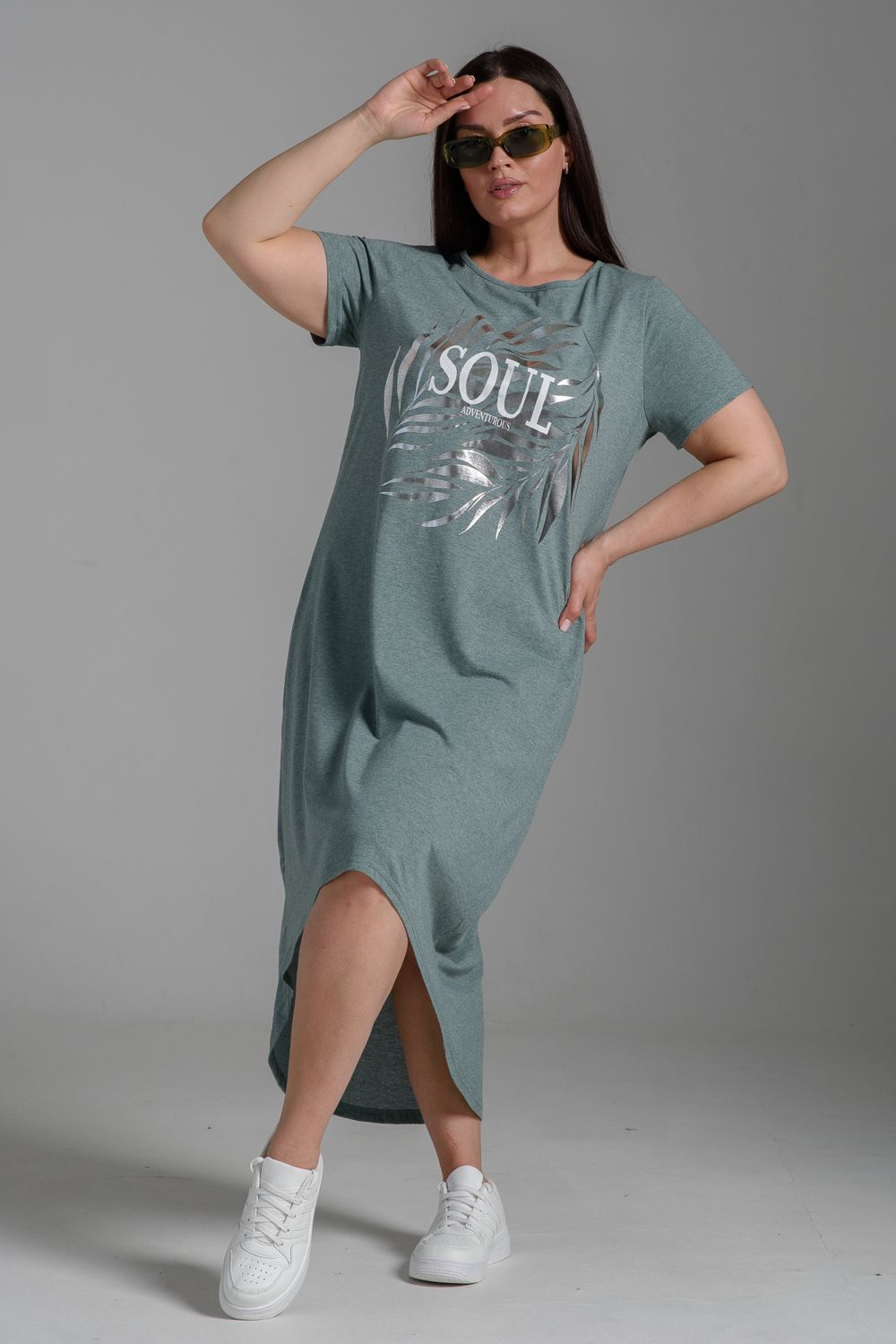 Женское универсальное платье-футболка для тех, кому захотелось свободных в талии и удобных полуприлегающих модных образов. Длинное платье-футболка с коротким рукавом - база на каждый день для стильной женщины. Тонкий и мягкий трикотажный материал подарит комфорт, а наличие в составе натурального хлопка с добавлением полиэстера обеспечивает износостойкость ткани. Широкая размерная сетка порадует обладательниц и стройных форм и форм plus size. Большие размеры - не препятствие для создания красивого силуэта!