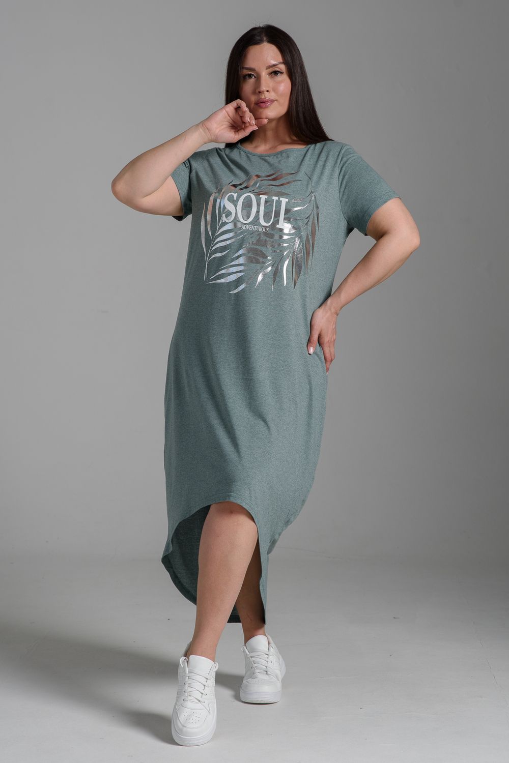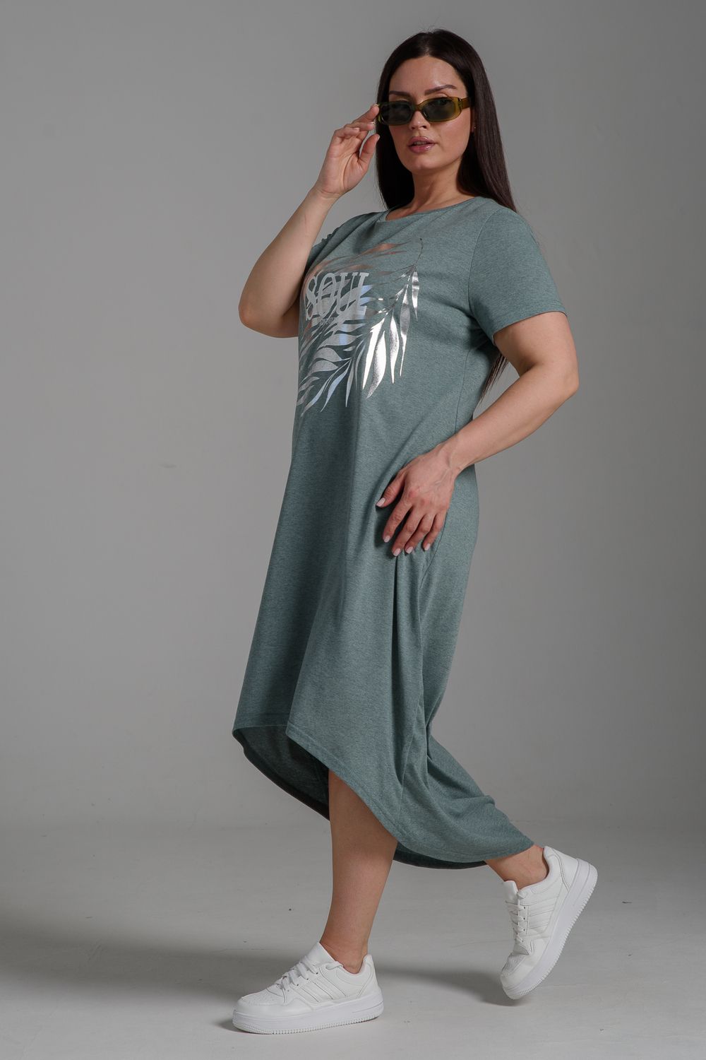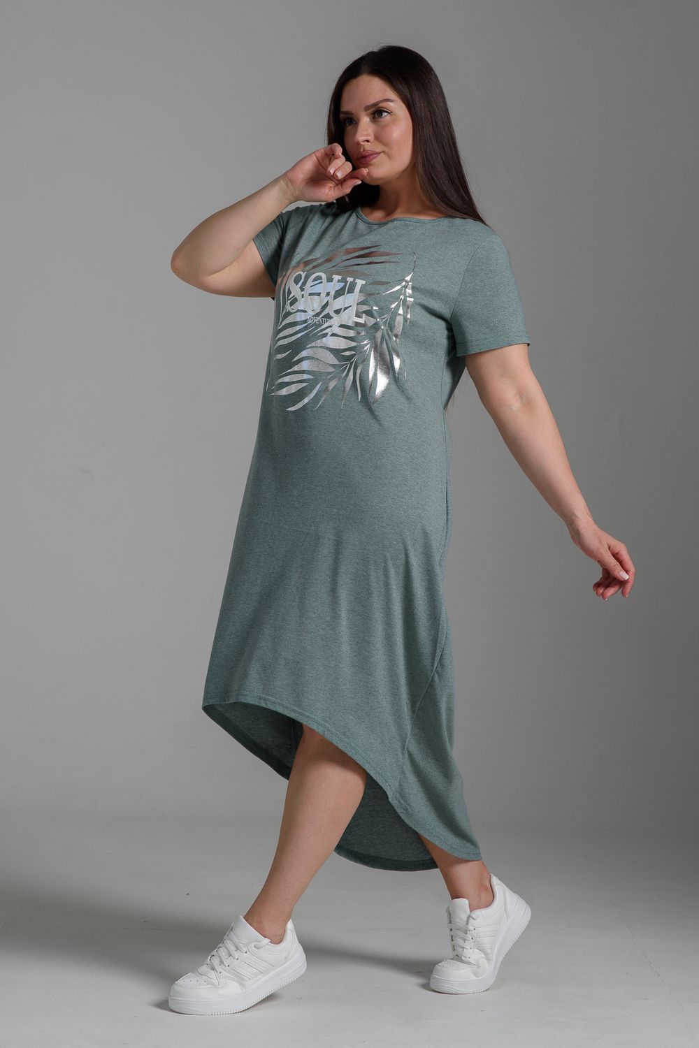 Женское универсальное платье-футболка для тех, кому захотелось свободных в талии и удобных полуприлегающих модных образов. Длинное платье-футболка с коротким рукавом - база на каждый день для стильной женщины. Тонкий и мягкий трикотажный материал подарит комфорт, а наличие в составе натурального хлопка с добавлением полиэстера обеспечивает износостойкость ткани. Широкая размерная сетка порадует обладательниц и стройных форм и форм plus size. Большие размеры - не препятствие для создания красивого силуэта!
