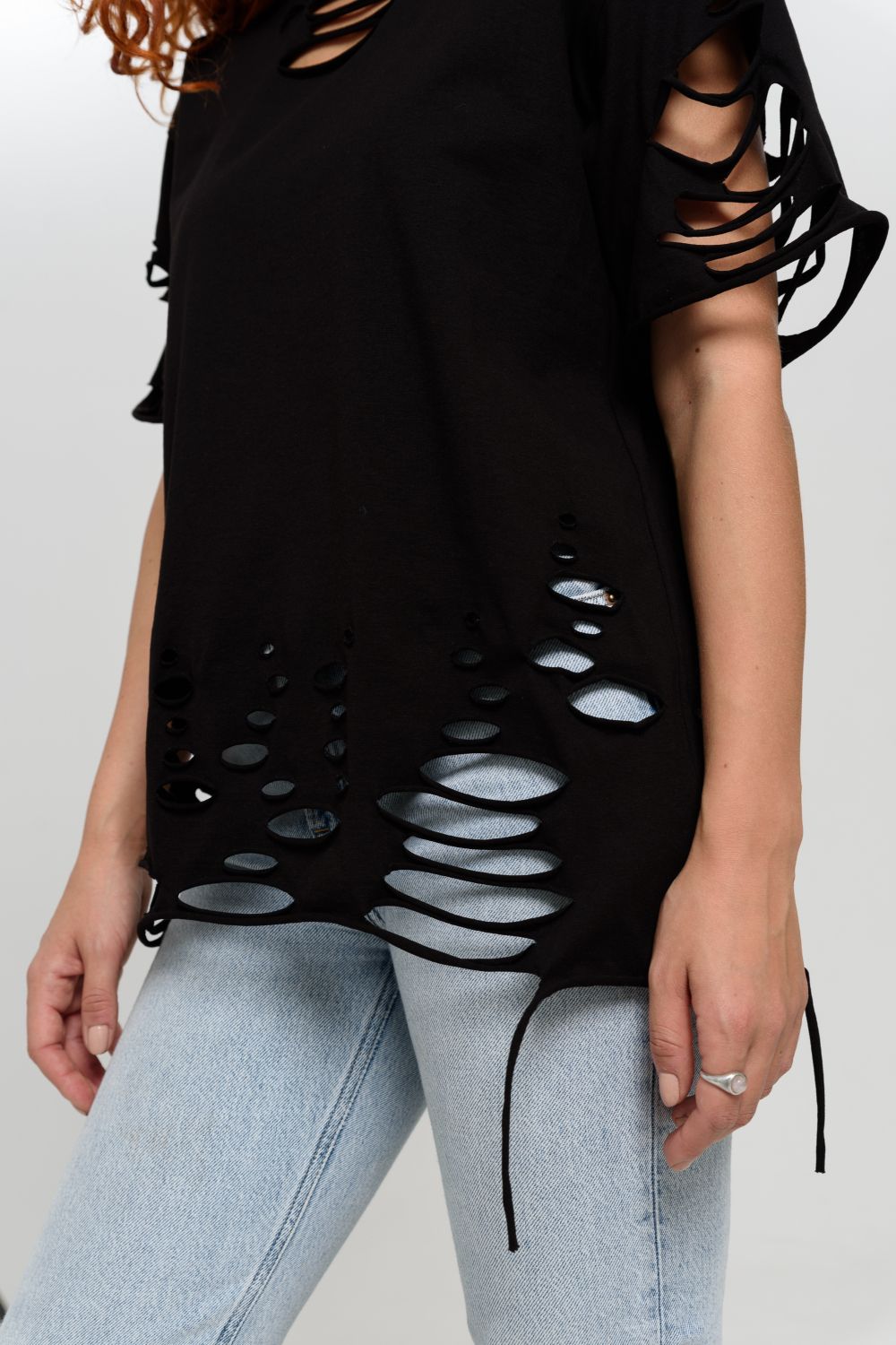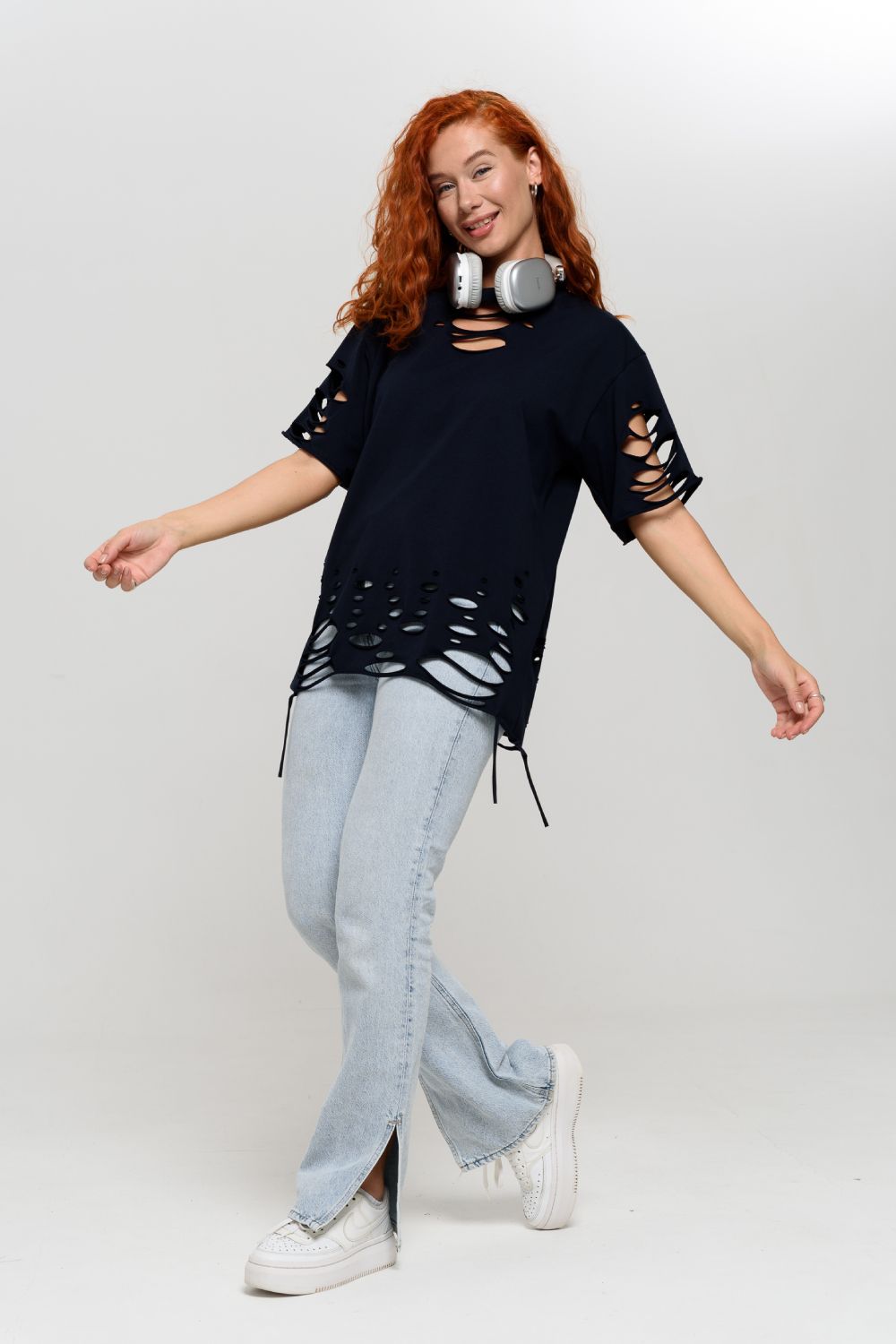 Эта женская футболка оверсайз прекрасно подойдет как для повседневной носки, так и для создания стильного образа. Модель выполнена из мягкого хлопка, обеспечивая комфорт в носке. Оригинальный дизайн с рваными элементами добавит вашему образу дерзости и индивидуальности. Стильная модель нирвана подойдёт для высоких и невысоких, для полных и худых, и даже plus size.