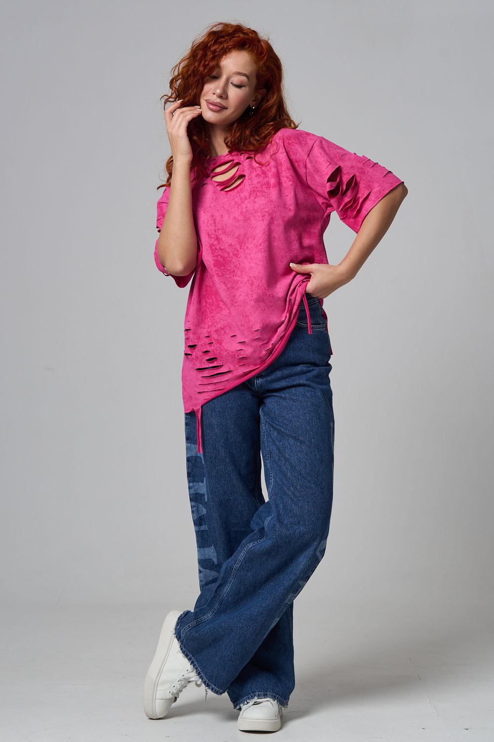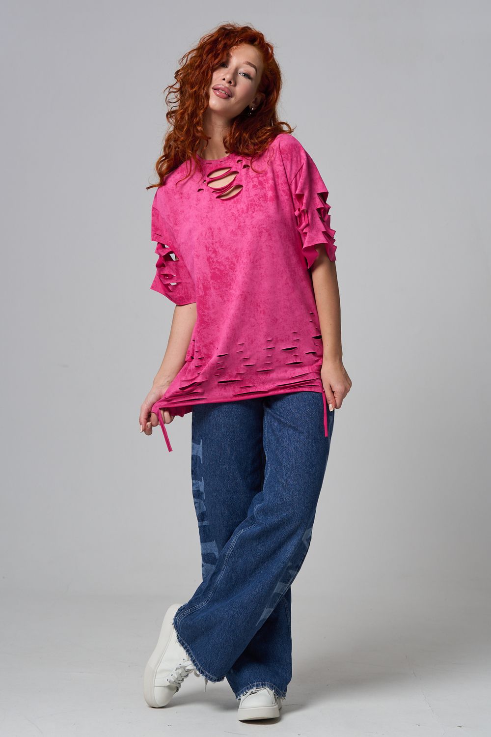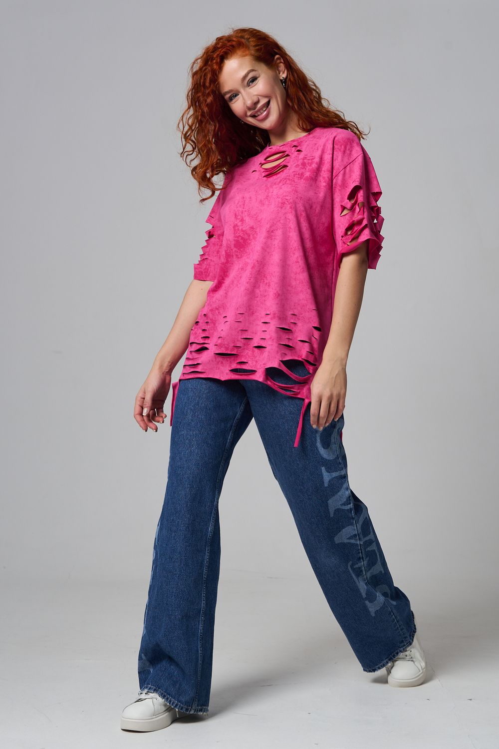 Эта женская футболка оверсайз прекрасно подойдет как для повседневной носки, так и для создания стильного образа. Модель выполнена из мягкого хлопка, обеспечивая комфорт в носке. Оригинальный дизайн с рваными элементами добавит вашему образу дерзости и индивидуальности. Стильная модель нирвана подойдёт для высоких и невысоких, для полных и худых, и даже plus size.