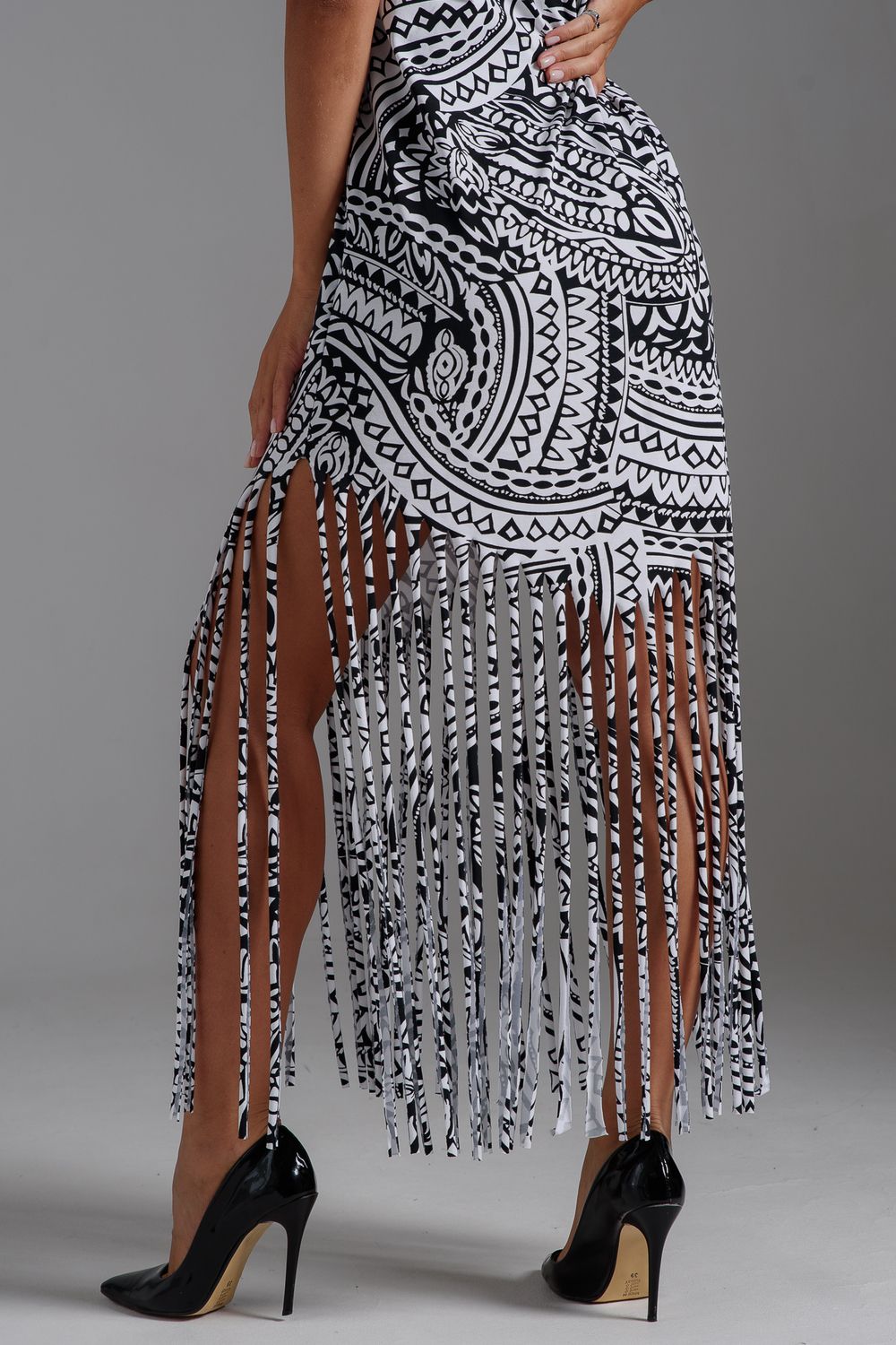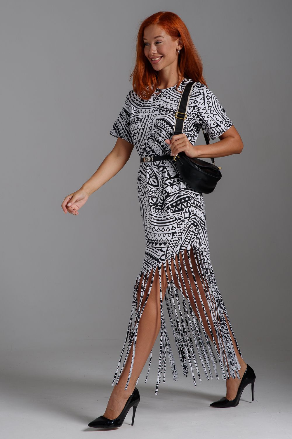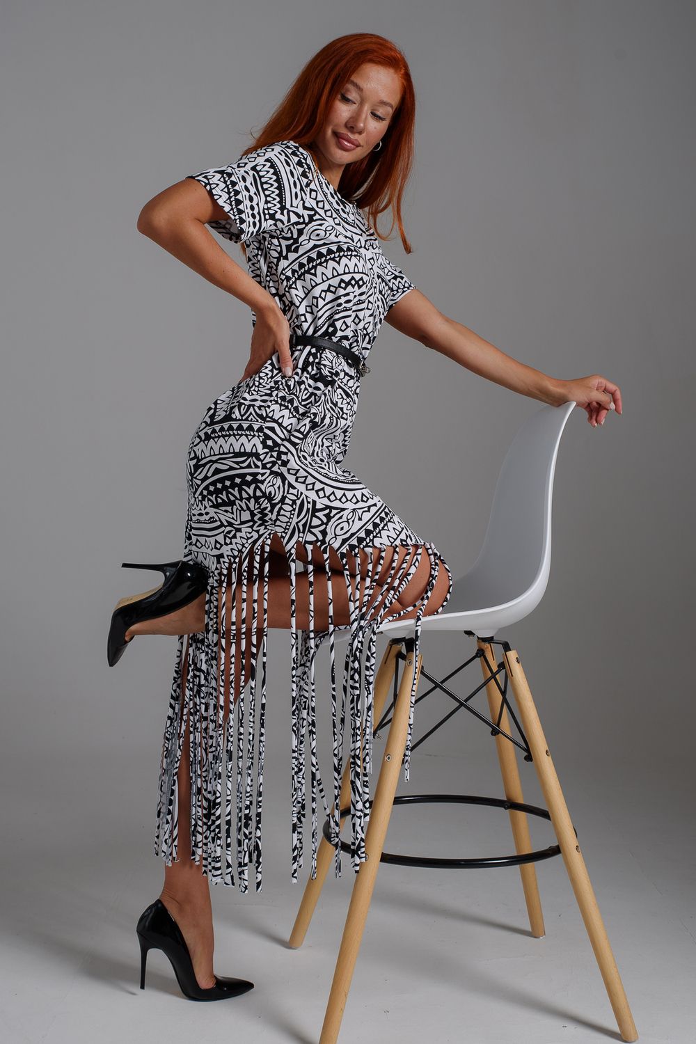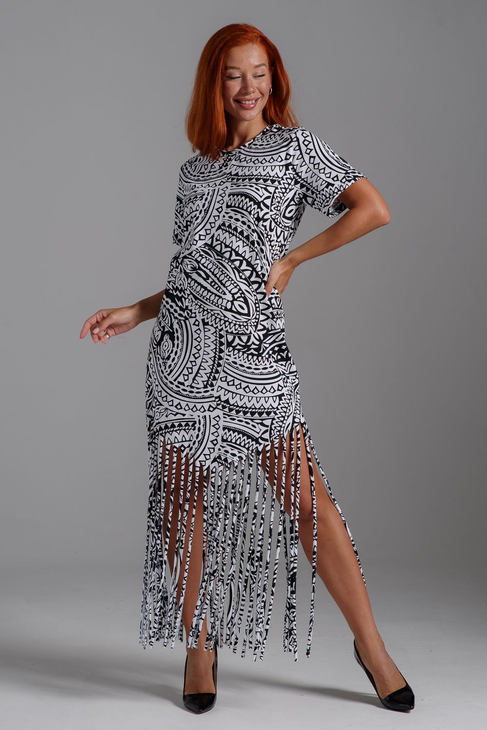 7480 платье женское - орнамент черный на белом