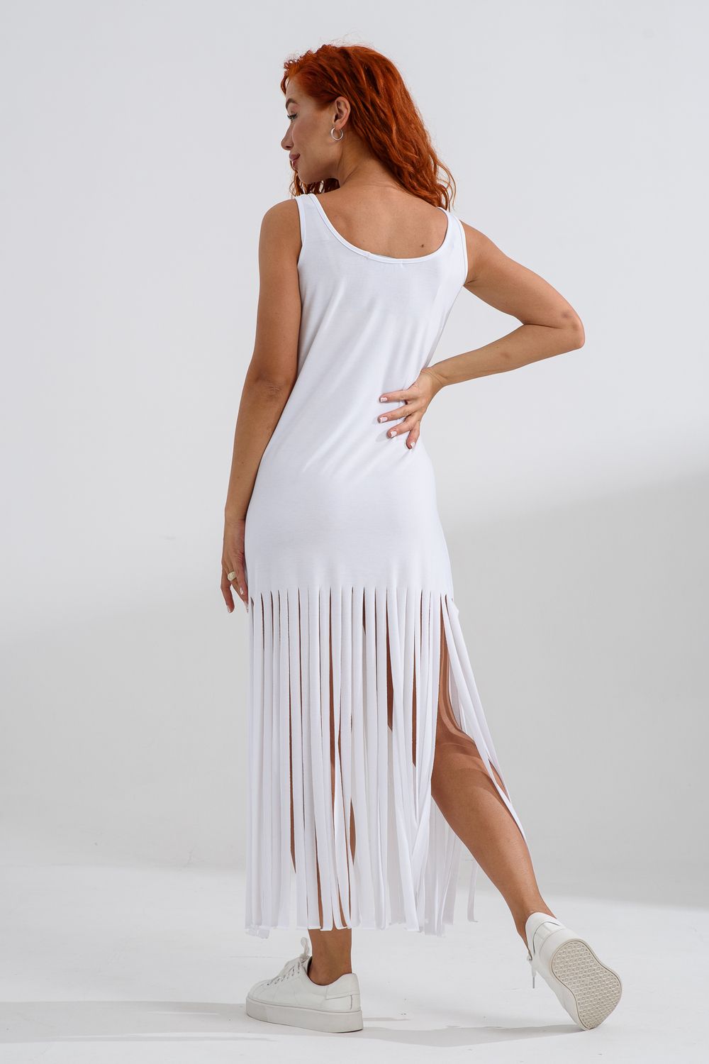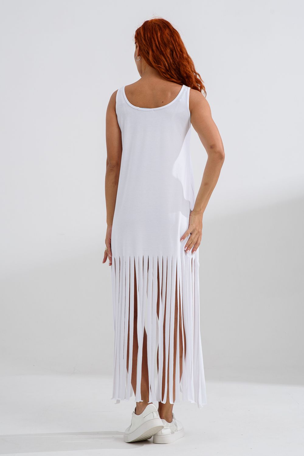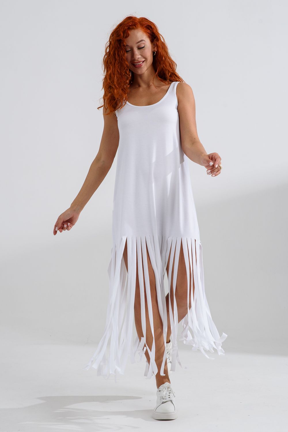 Платье с бахромой из струящейся вискозы. Лёгкое, летящее, манящее. Дарит невероятное ощущение женственности! Собираетесь на курорт? Благодаря легкости материала - отлично подойдёт как сарафан, летнее платье в отпуск. Платье с бахромой очень комфортно в жару. Это платье надо брать! Отлично впишется в Ваш гардероб! Прекрасно садится на фигуру!
