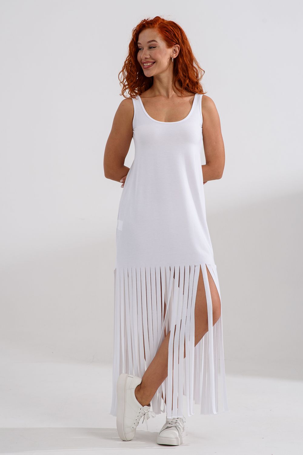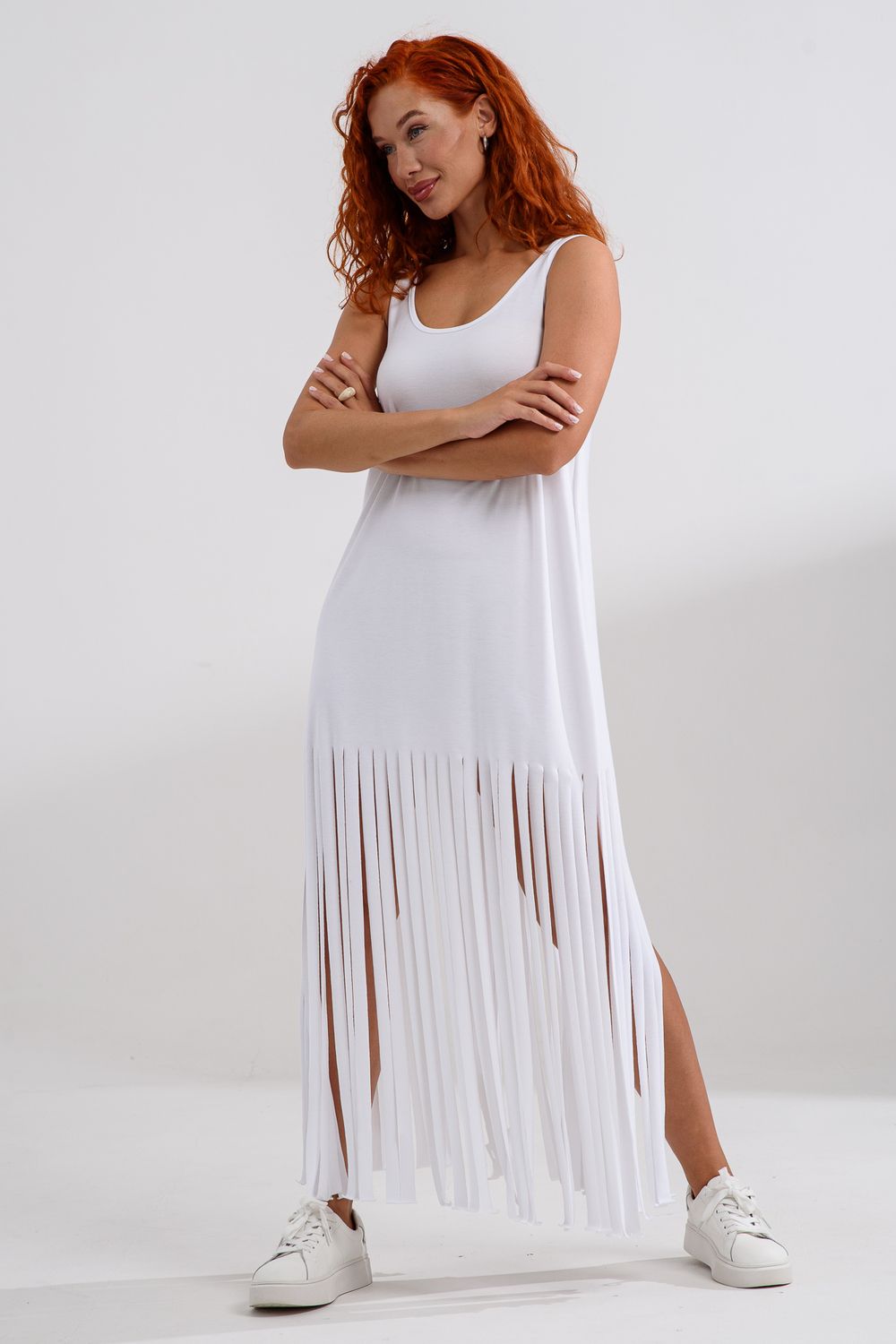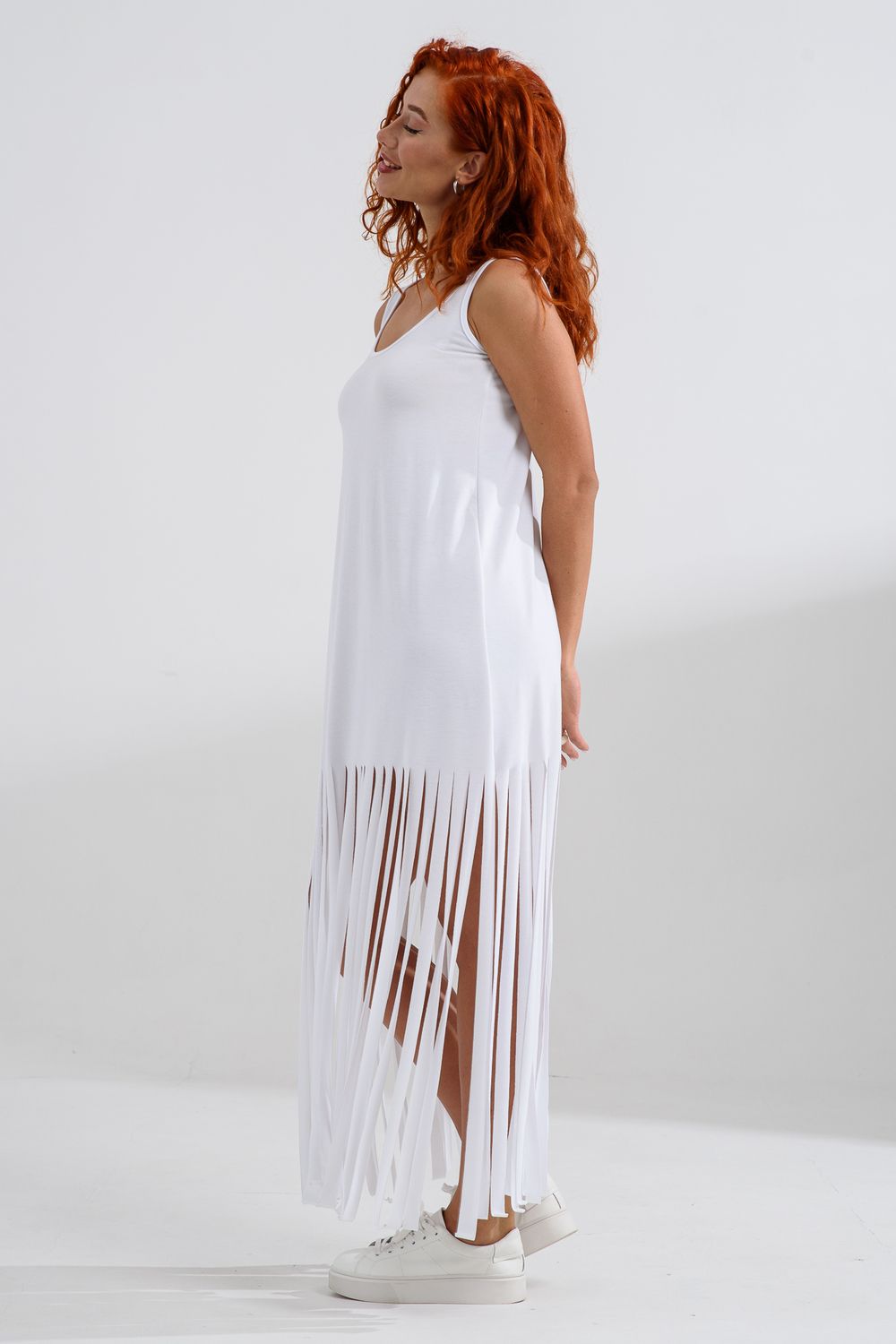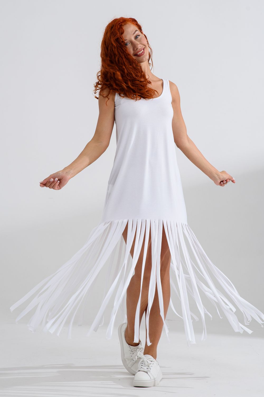 Платье с бахромой из струящейся вискозы. Лёгкое, летящее, манящее. Дарит невероятное ощущение женственности! Собираетесь на курорт? Благодаря легкости материала - отлично подойдёт как сарафан, летнее платье в отпуск. Платье с бахромой очень комфортно в жару. Это платье надо брать! Отлично впишется в Ваш гардероб! Прекрасно садится на фигуру!