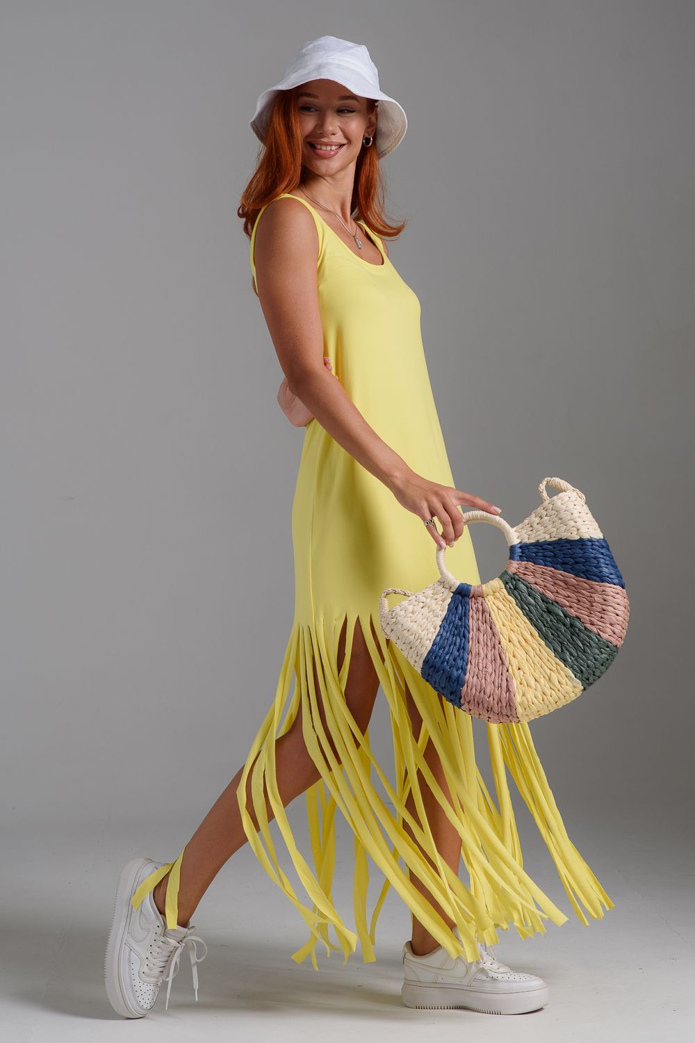 Платье с бахромой из струящейся вискозы. Лёгкое, летящее, манящее. Дарит невероятное ощущение женственности! Собираетесь на курорт? Благодаря легкости материала - отлично подойдёт как сарафан, летнее платье в отпуск. Платье с бахромой очень комфортно в жару. Это платье надо брать! Отлично впишется в Ваш гардероб! Прекрасно садится на фигуру!