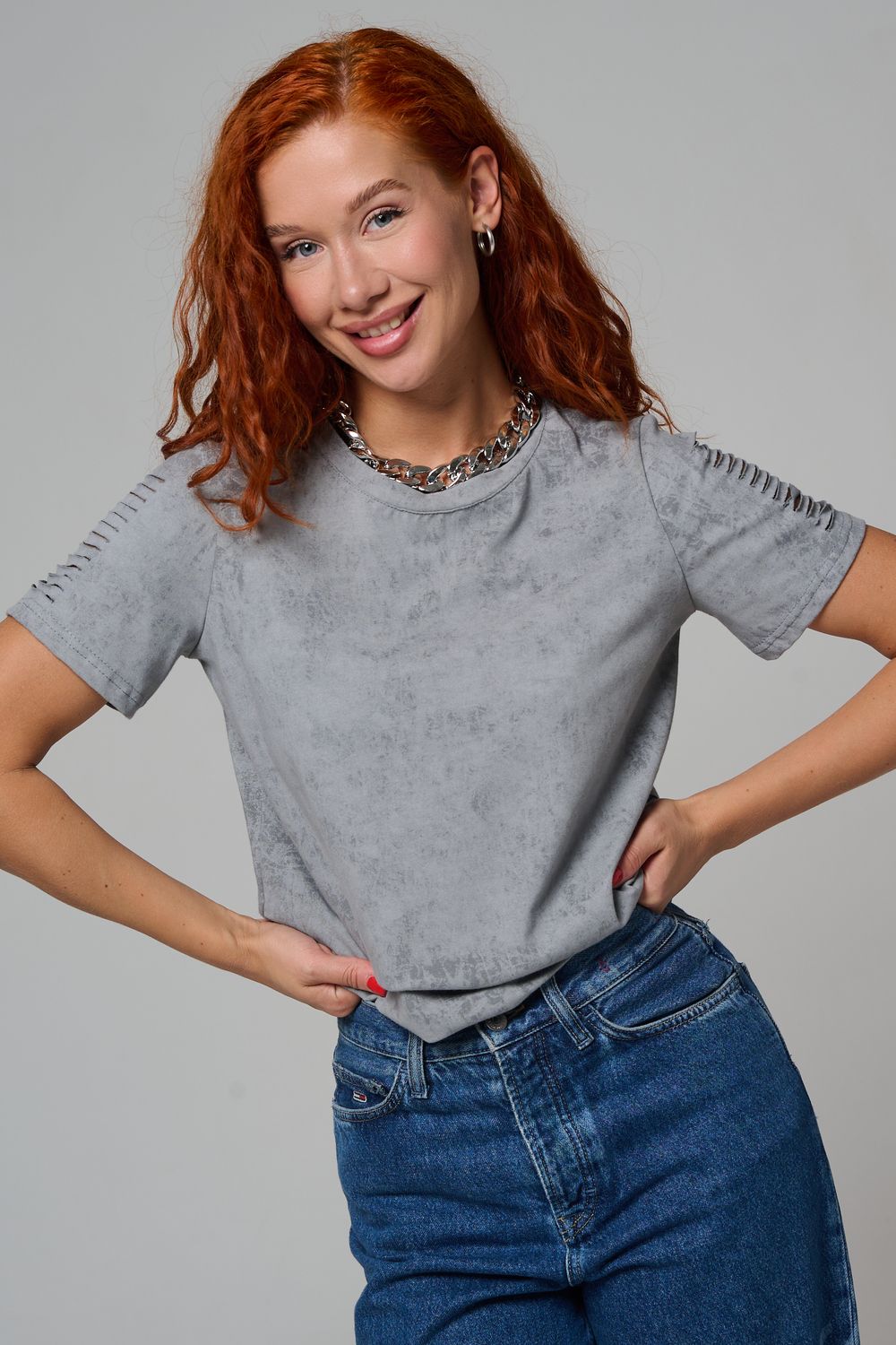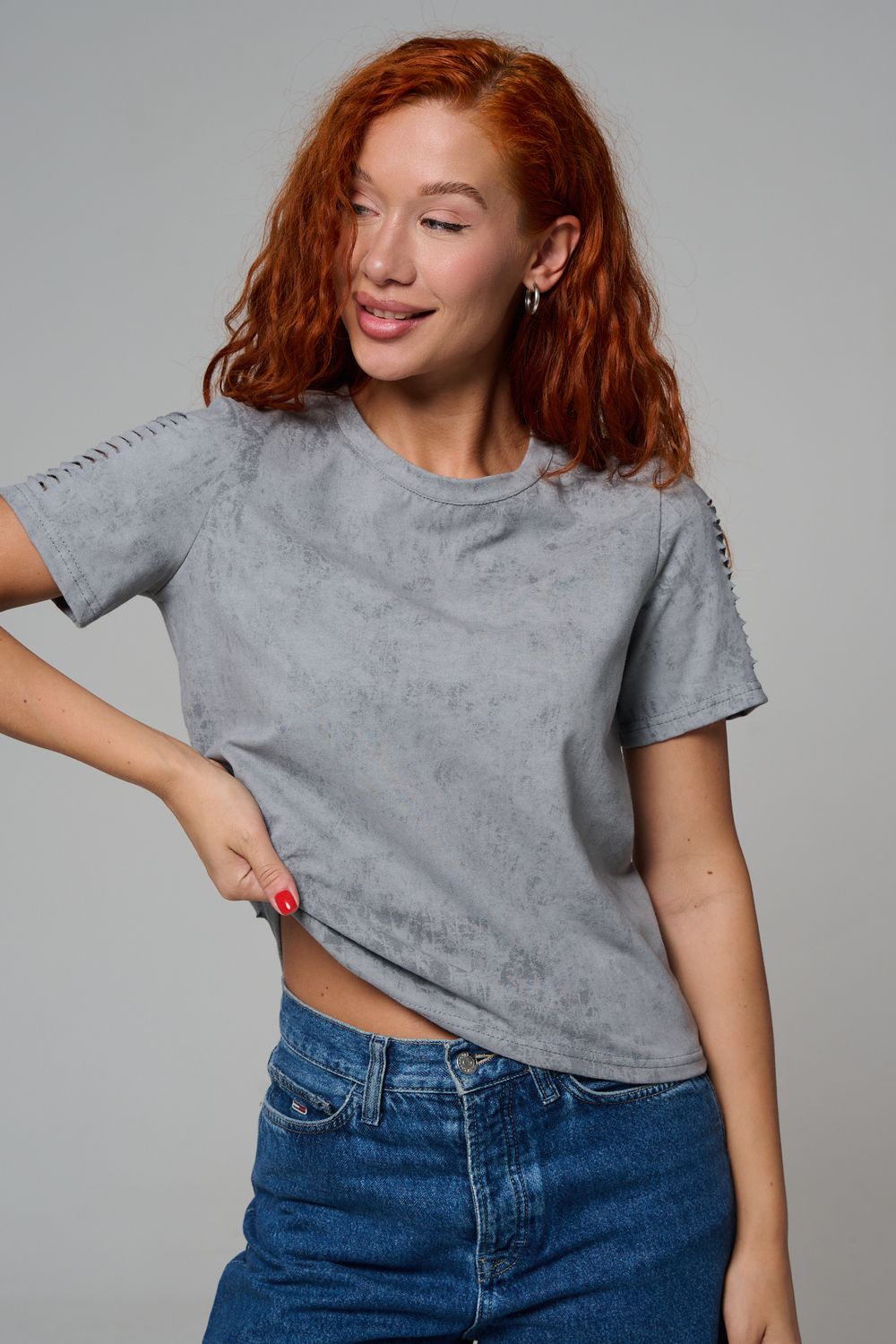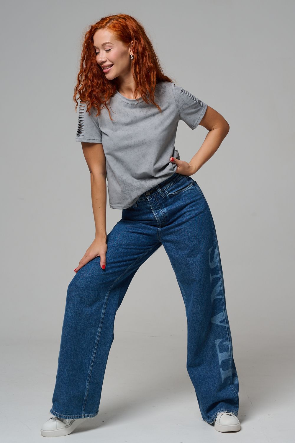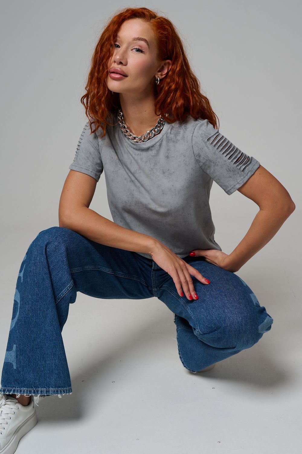 Трендовая футболка-оверсайз из качественного материала. Необычный оттенок и эффектная рваная обработка создают уникальный стиль.