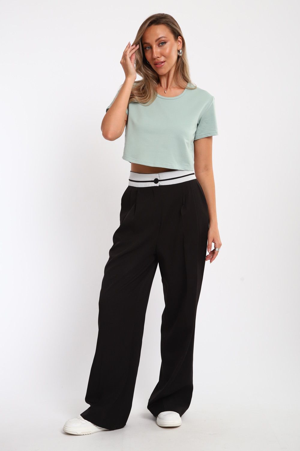 83908 укороченная футболка женская - ментол