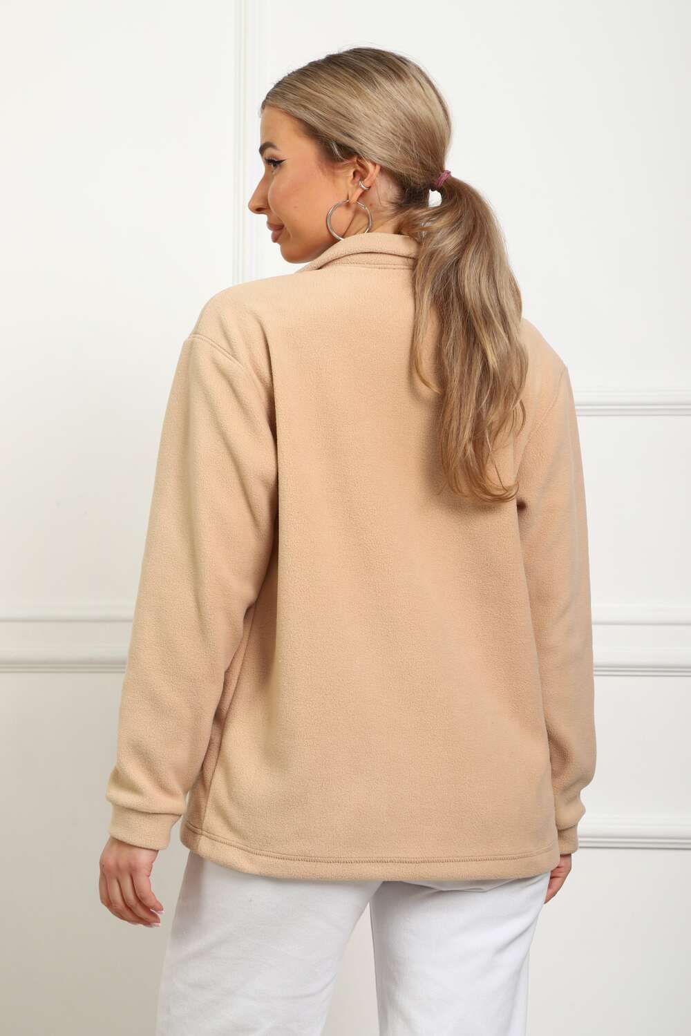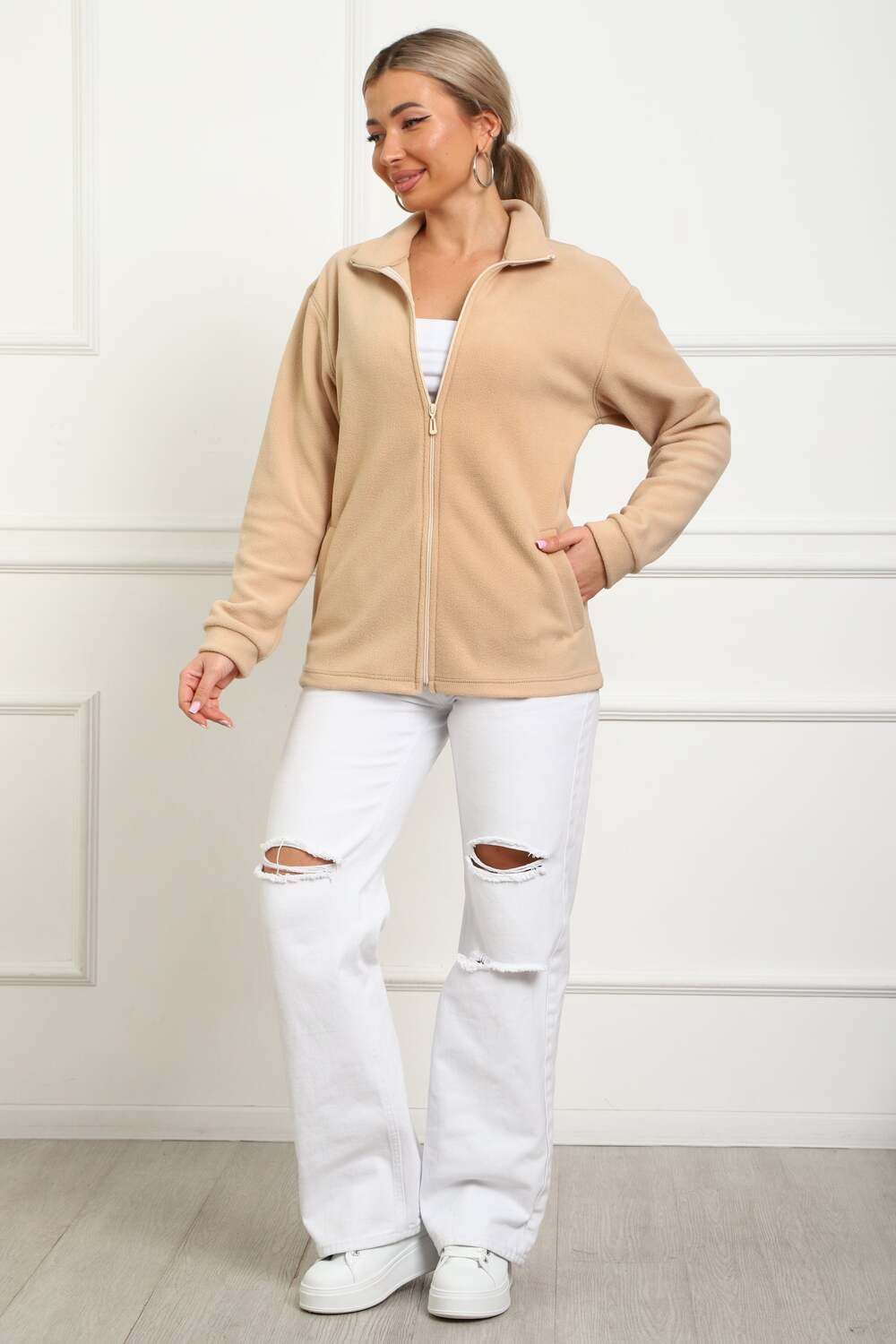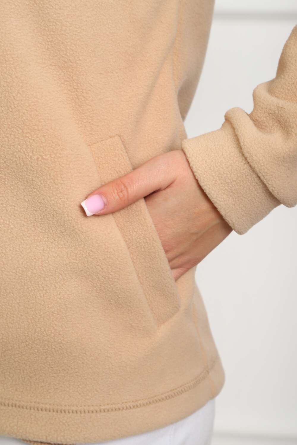 Куртка женская из флиса. Силуэт прямой. Длинна до середины бедра. Воротник стойка. Карман листочка. Рукав втачной, на манжете. Линия плеч чуть спущена. Застежка на тесьму молнию. Отделкой служат отделочные строчки с застилом.