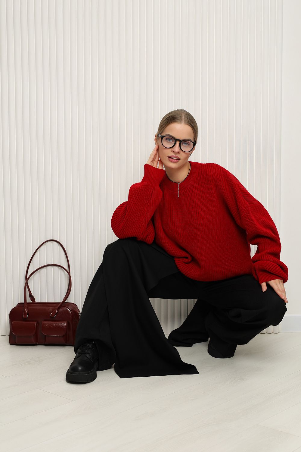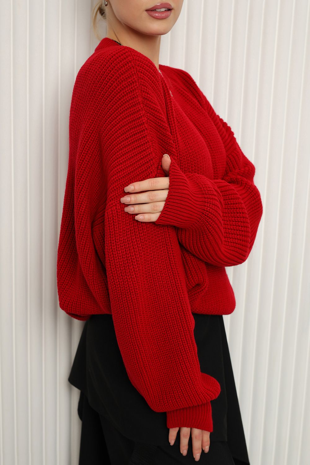 - Детали: Элегантный вырез и длинные рукава создают стильный силуэт, а рифленая текстура добавляет изюминку.